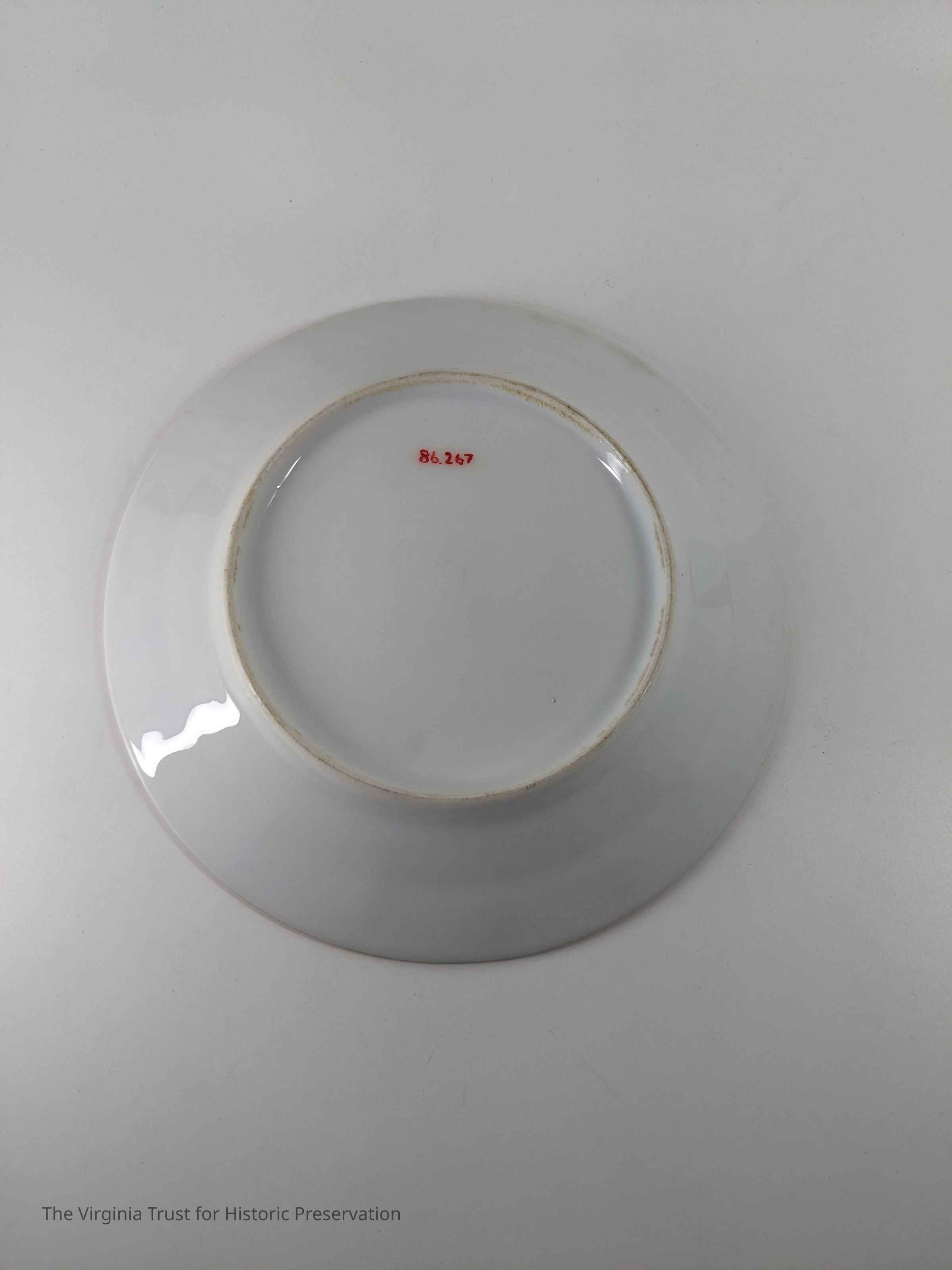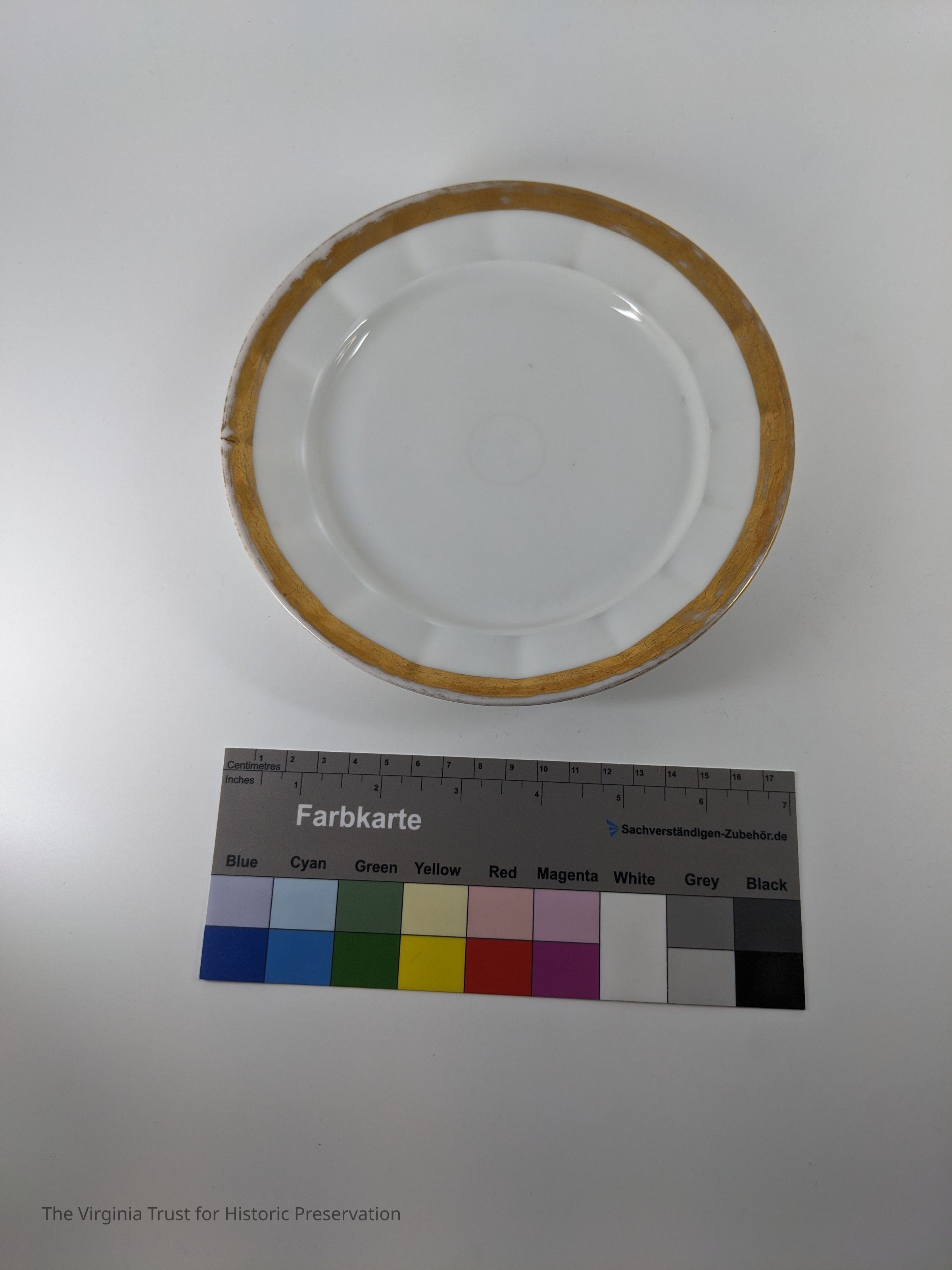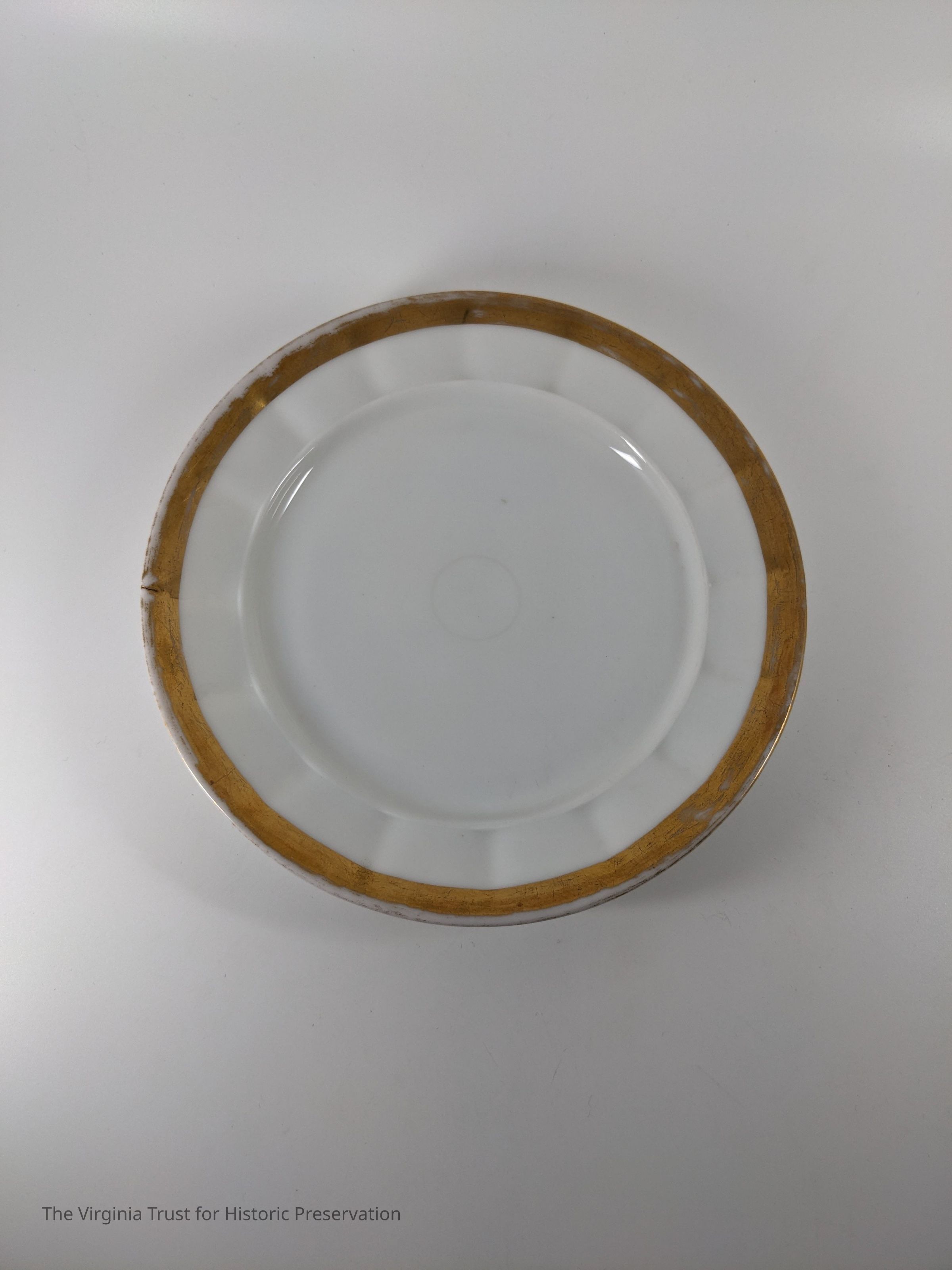 Set of six old paris plates. White with gold rim. Wedding ring pattern, no markings.