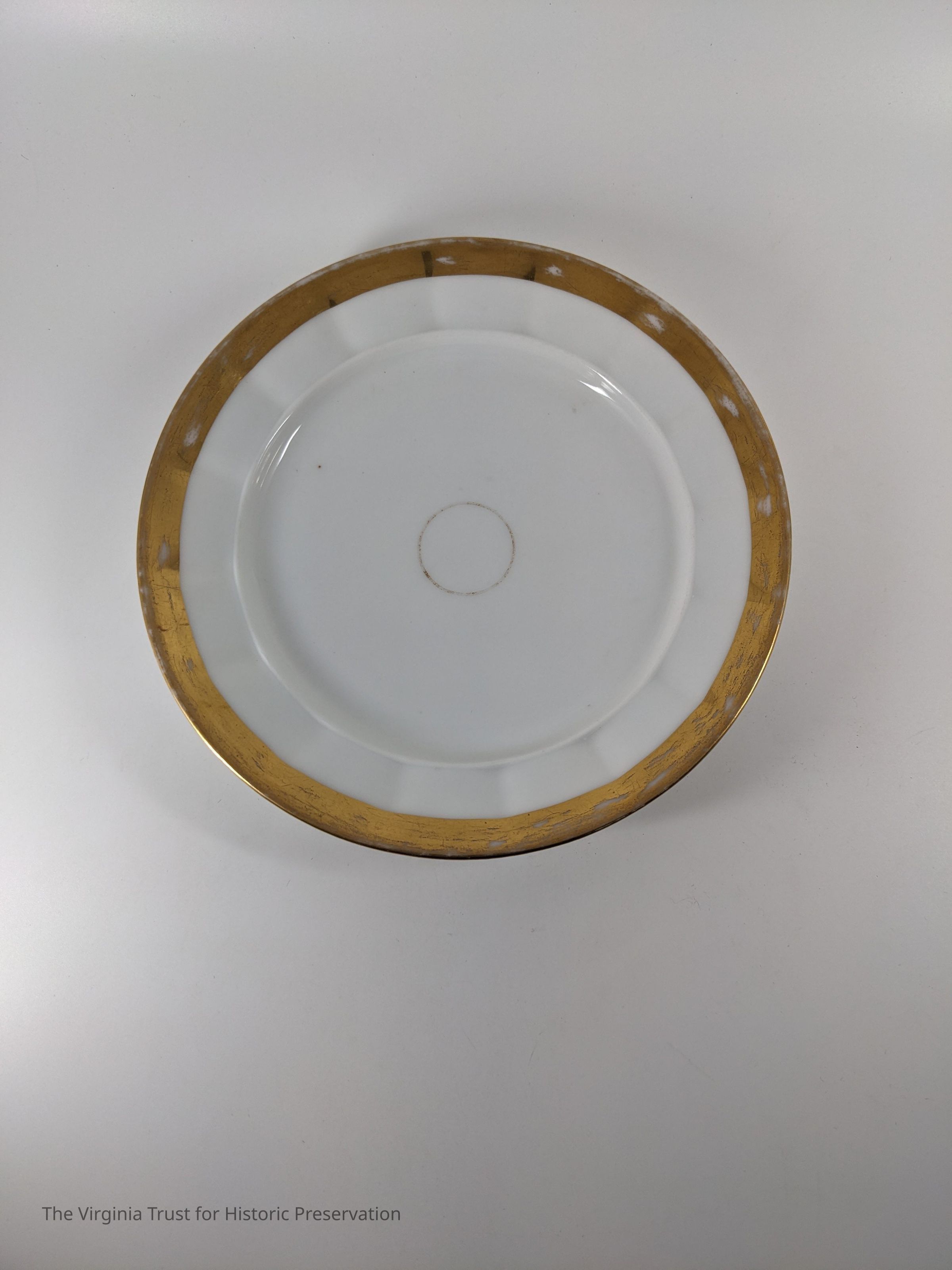 Set of six old paris plates. White with gold rim. Wedding ring pattern, no markings.