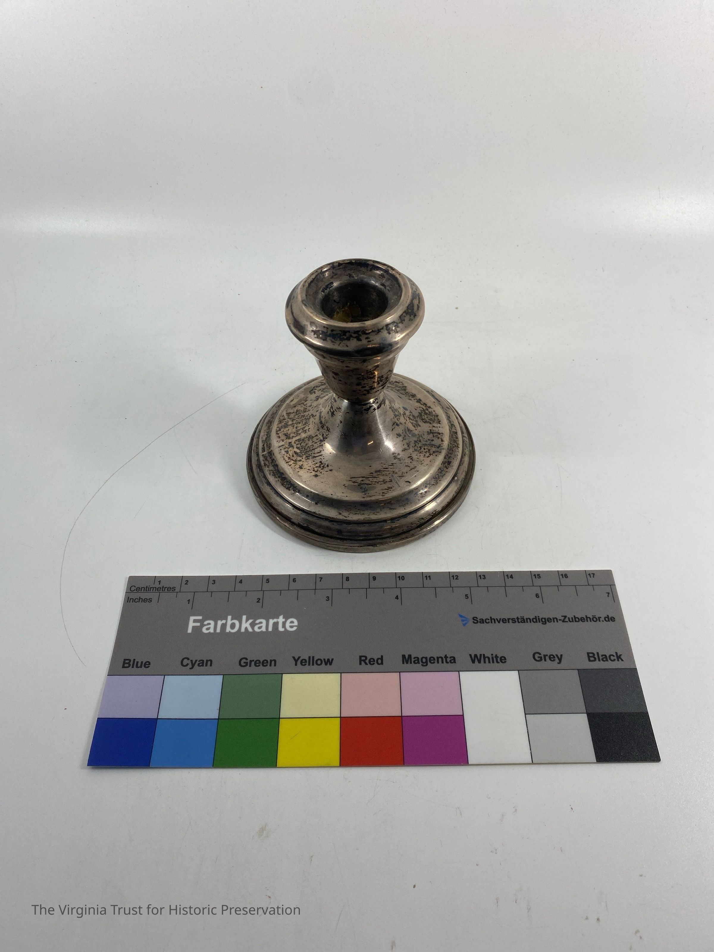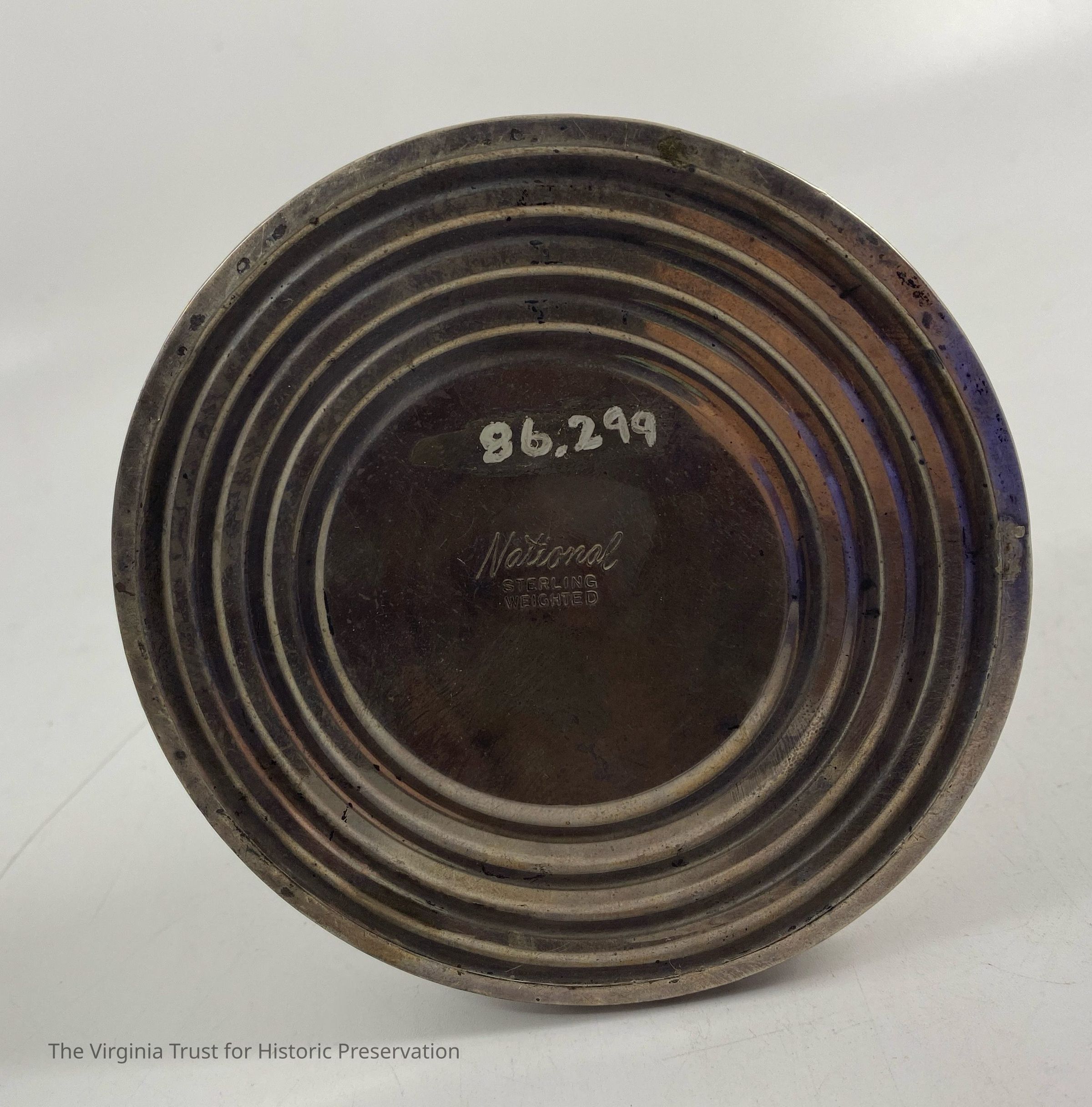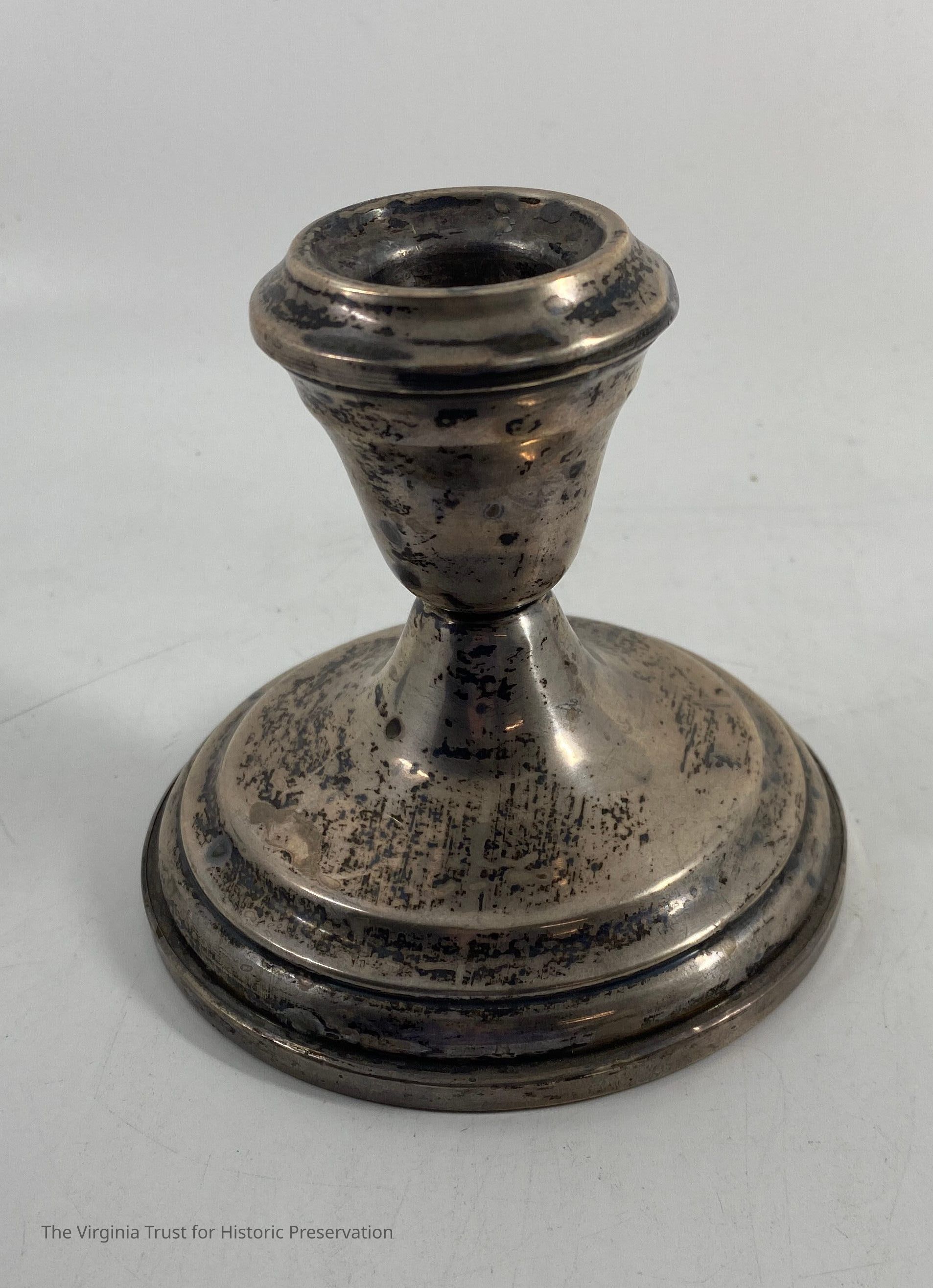 One of a pair of silver candlesticks. Marked "National Sterling Weighted."