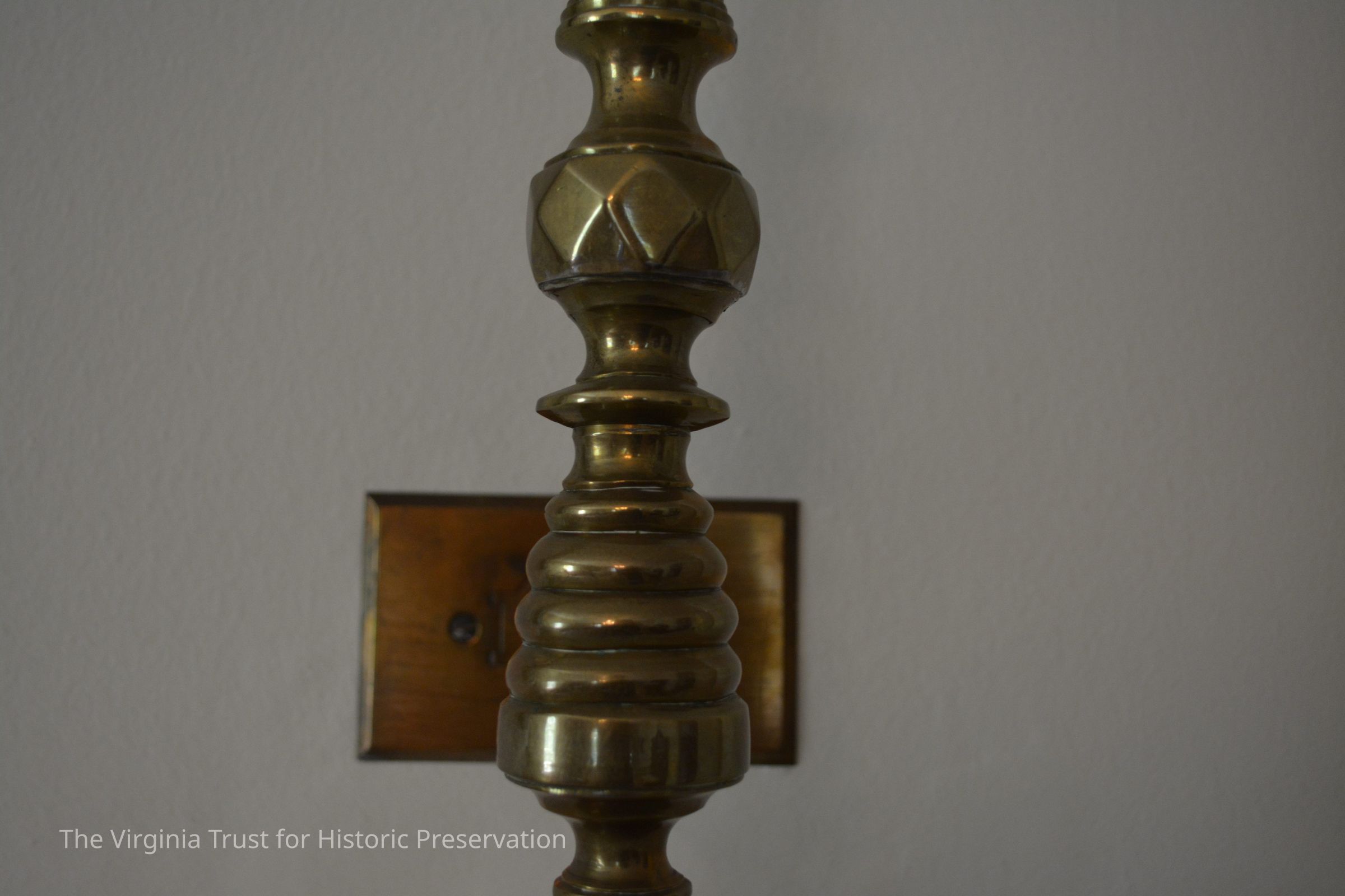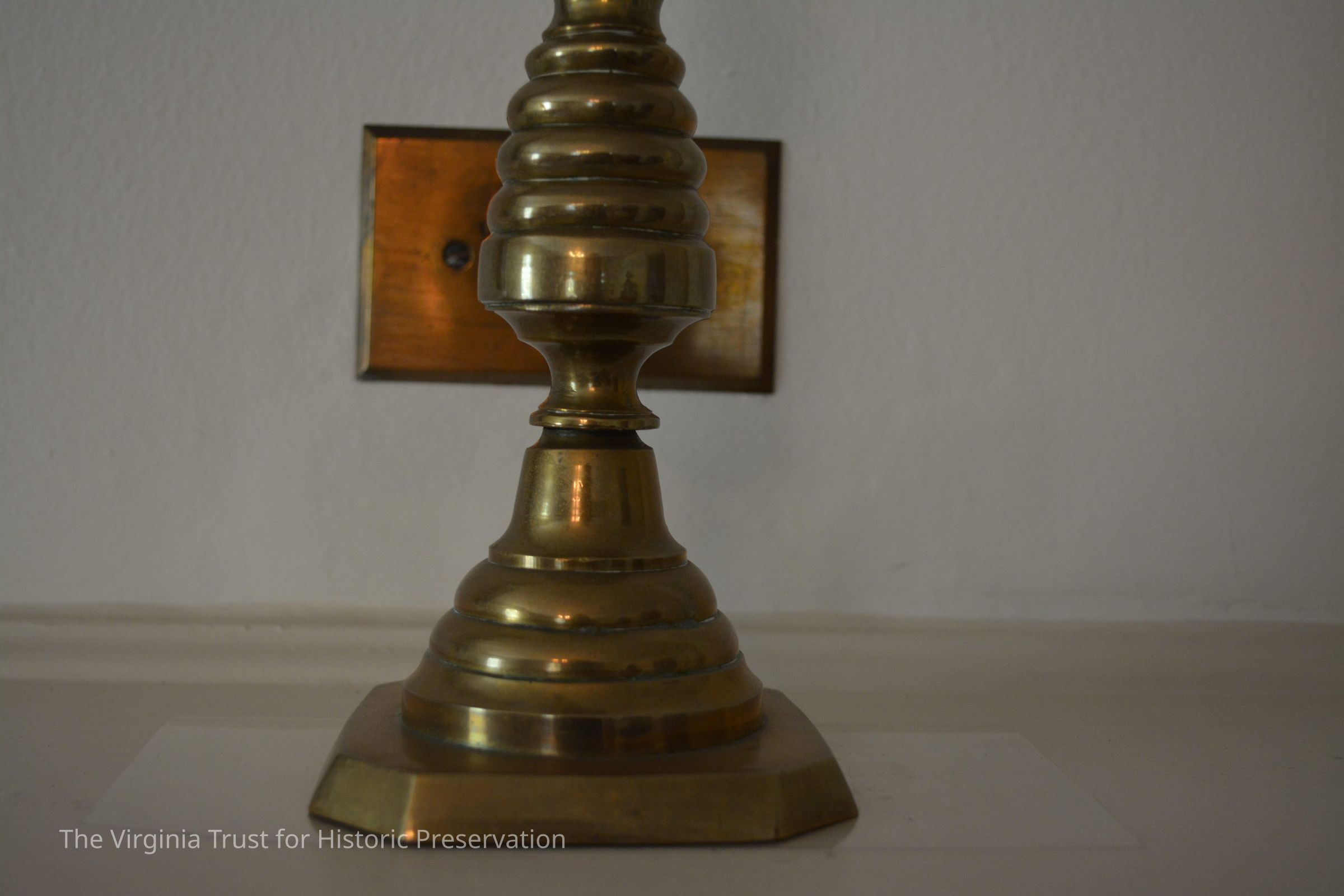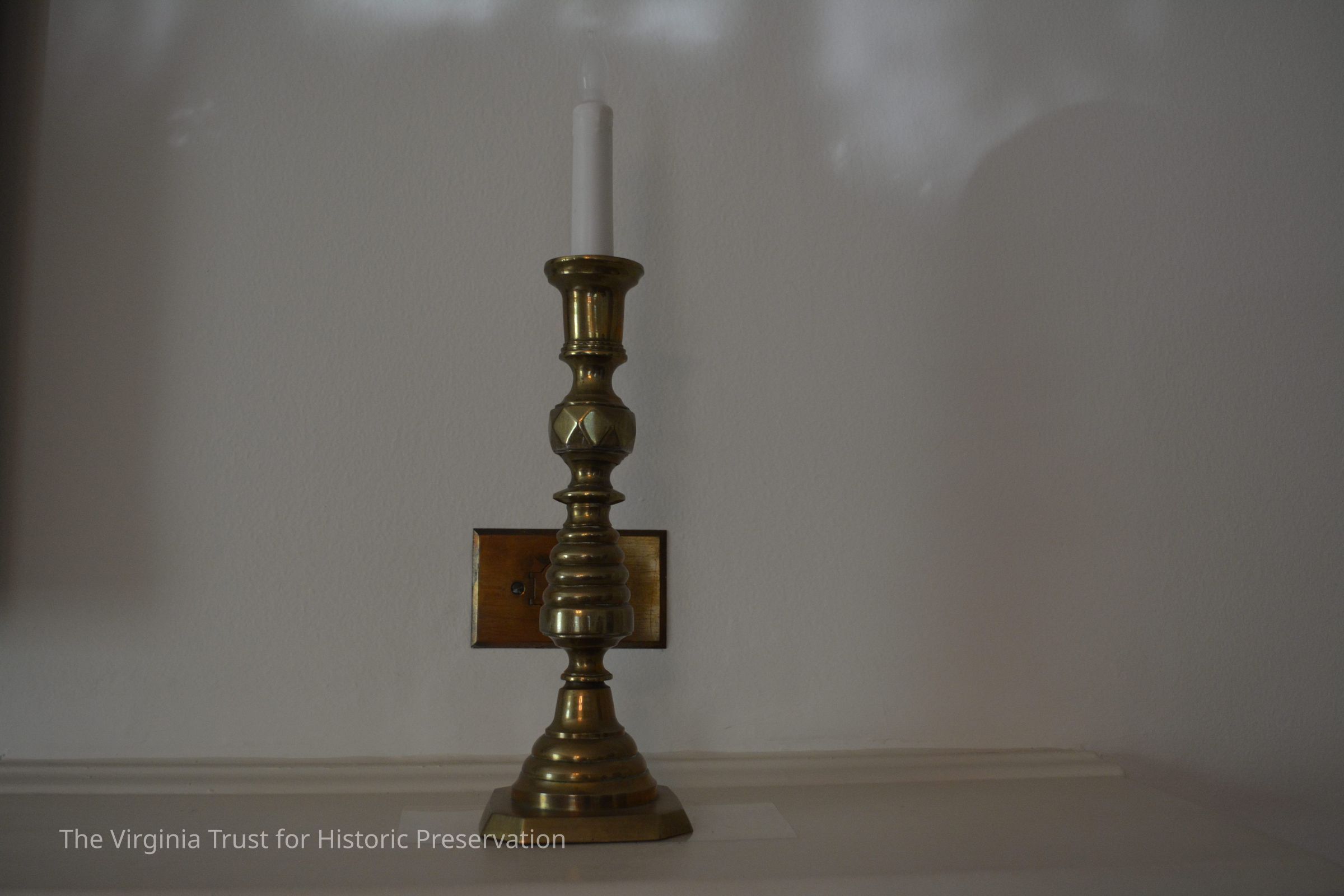 One of a pair of tall, heavy candlesticks. Stamped "Made in China." Beehive type, 6 sided base.