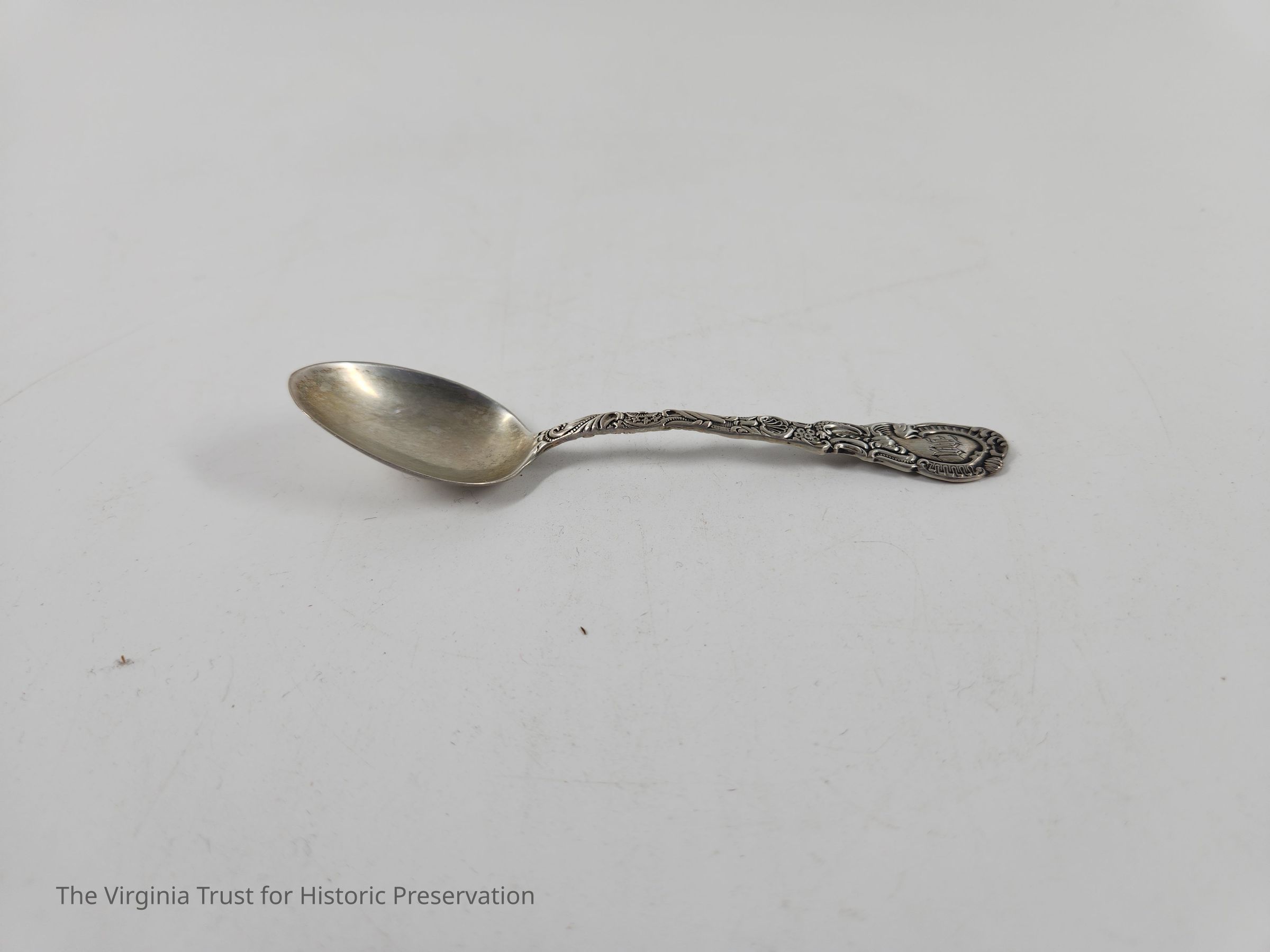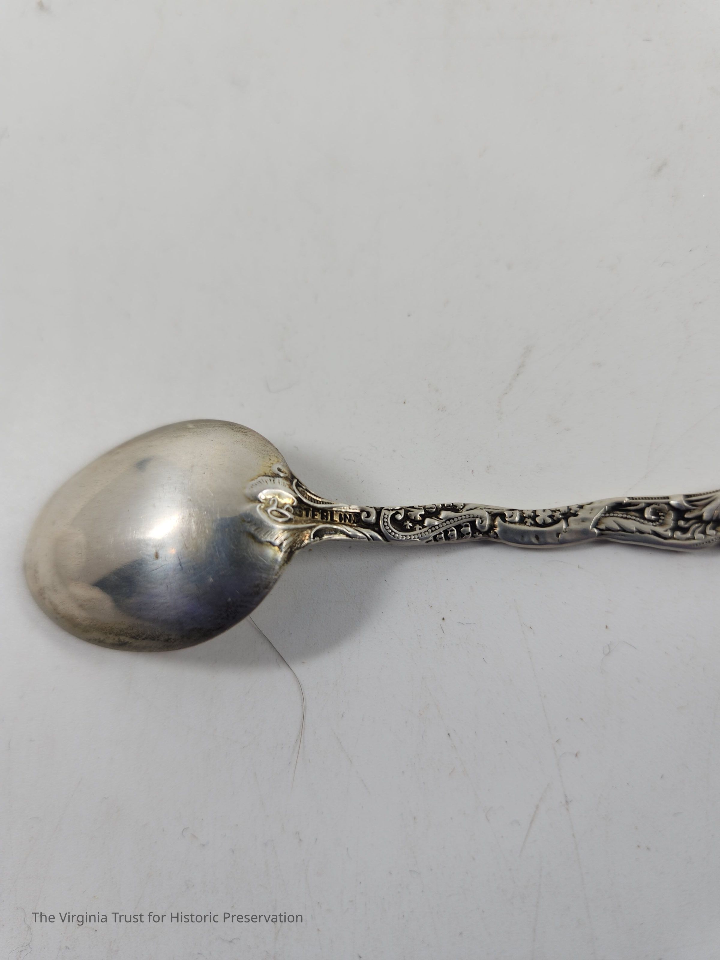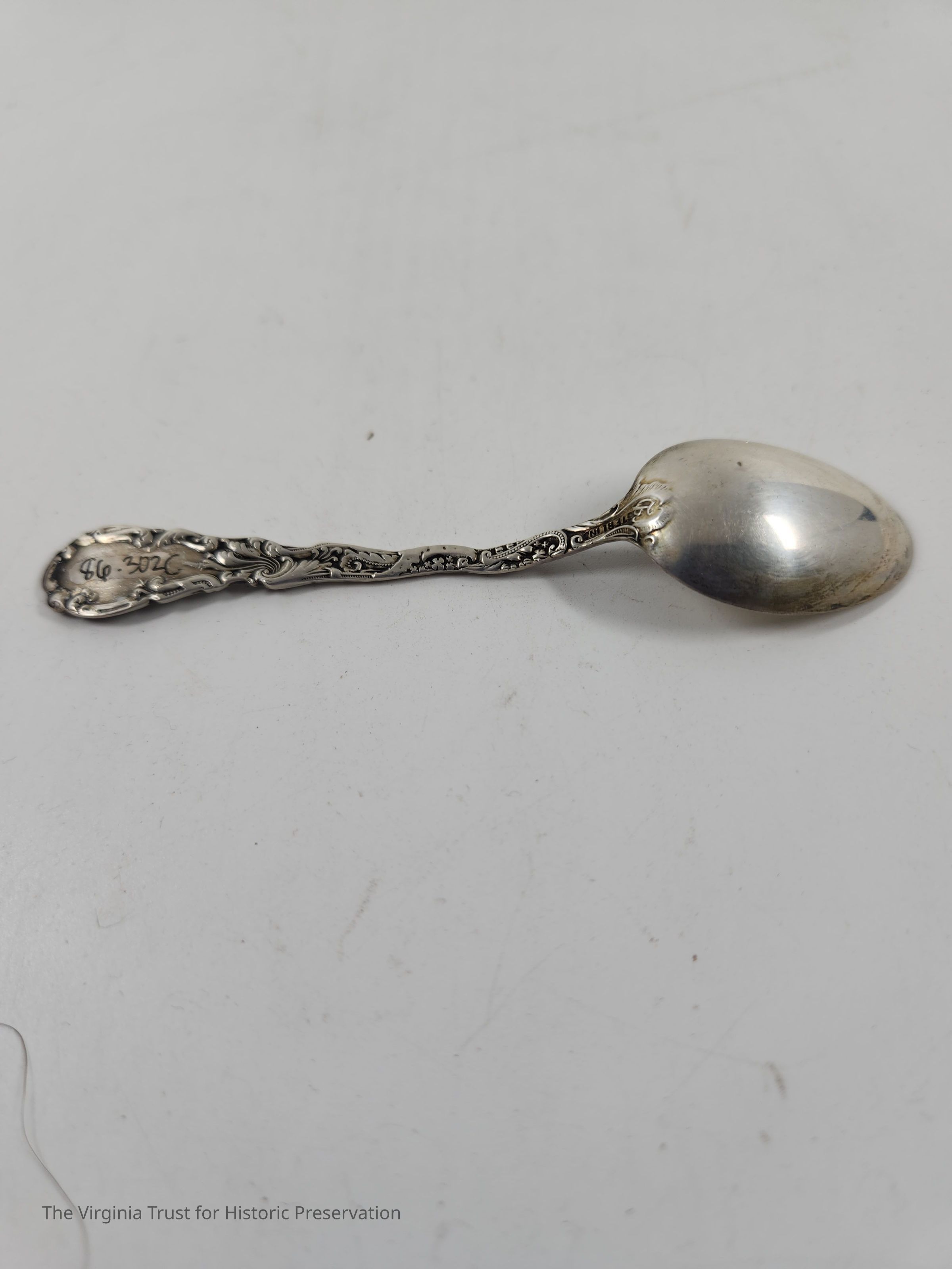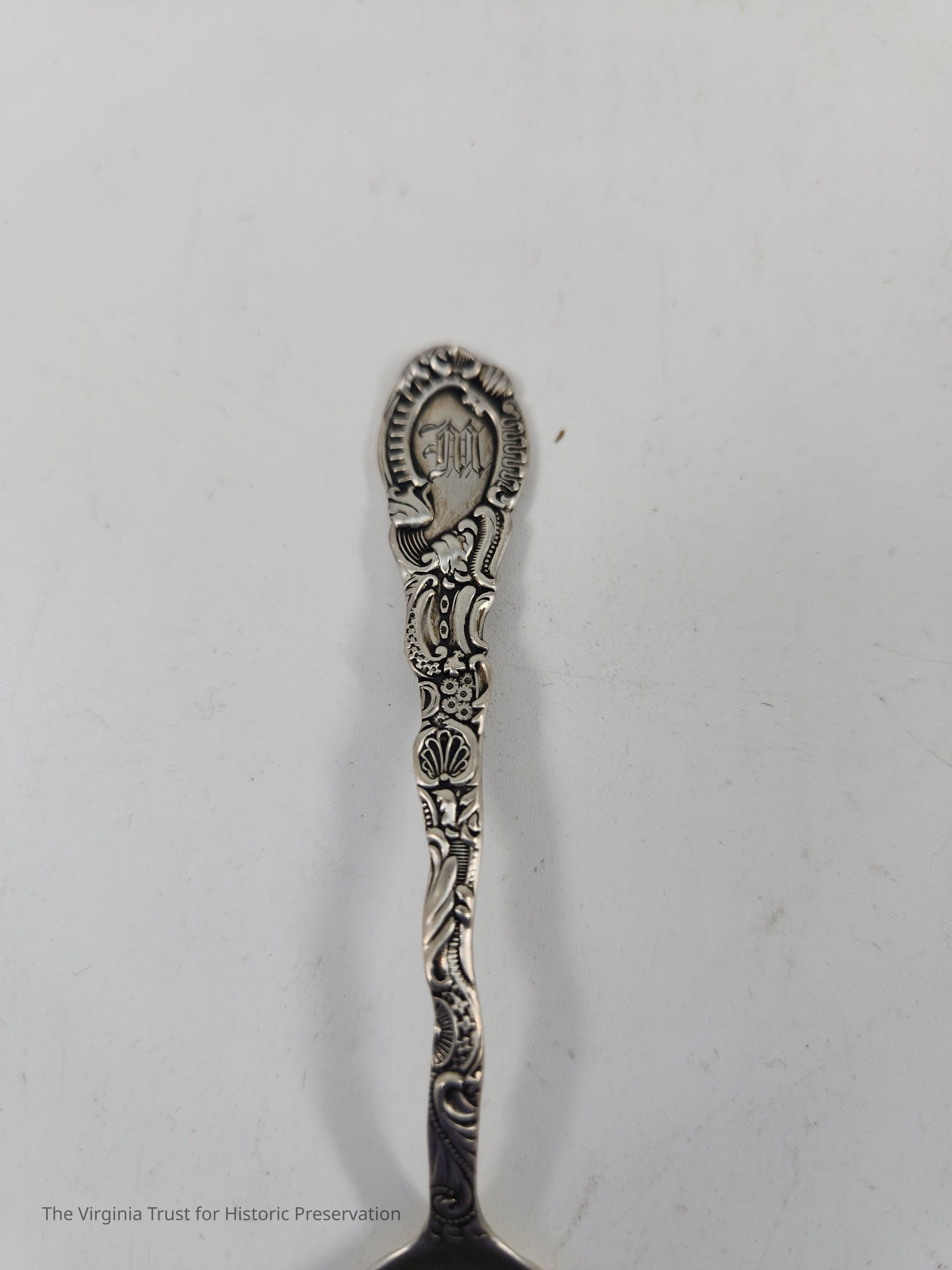 Part of set of six sterling silver demitasse spoons. Floral design on handle in Louis XV style (first introduced 1891). Monogrammed "M" on the handle. The "M" on these spoons likely stands for Dr. Edwin Cecil Morgan (1828-1867) and wife Evelina Prosser Lee Morgan (1832-1905).