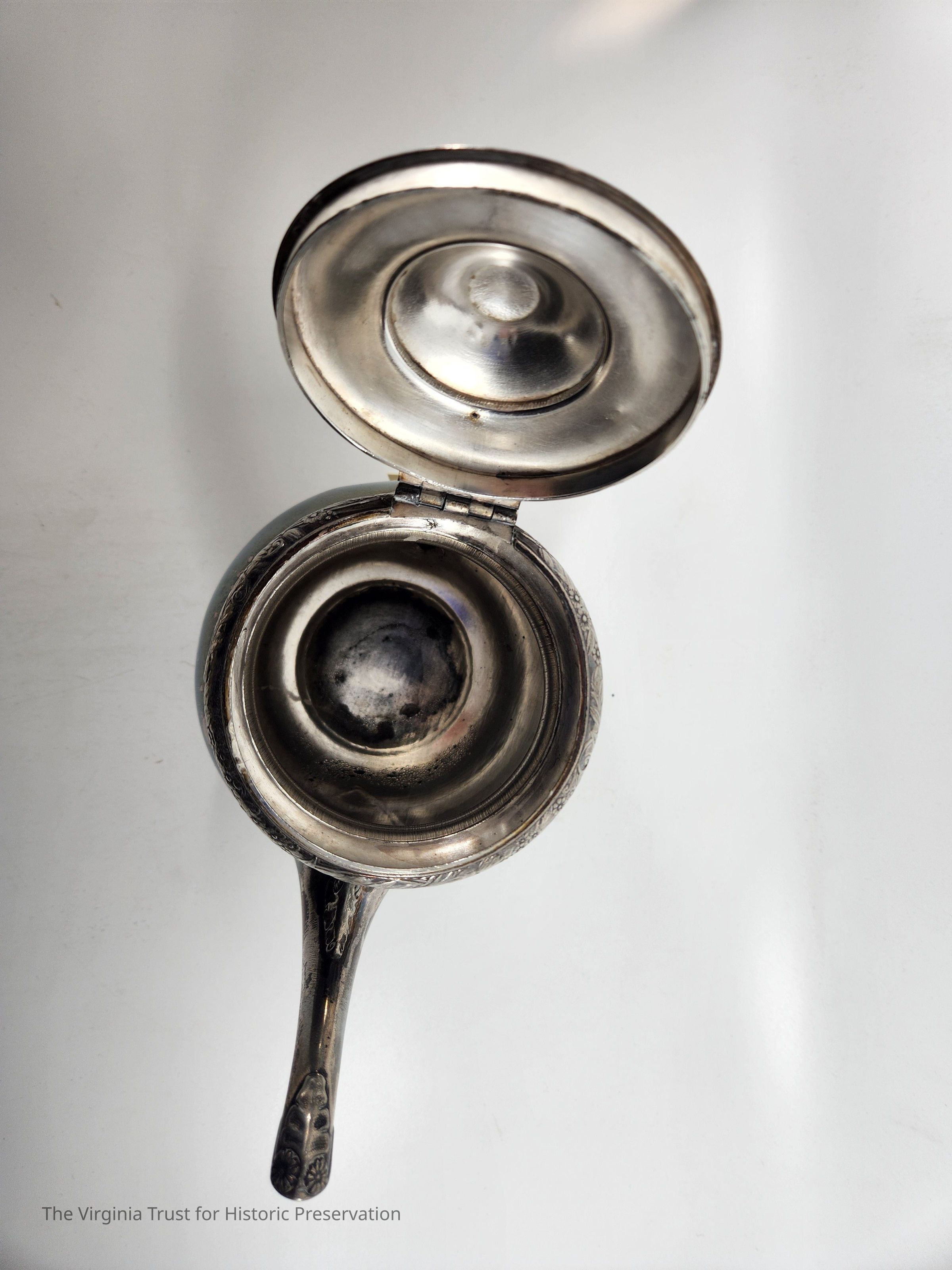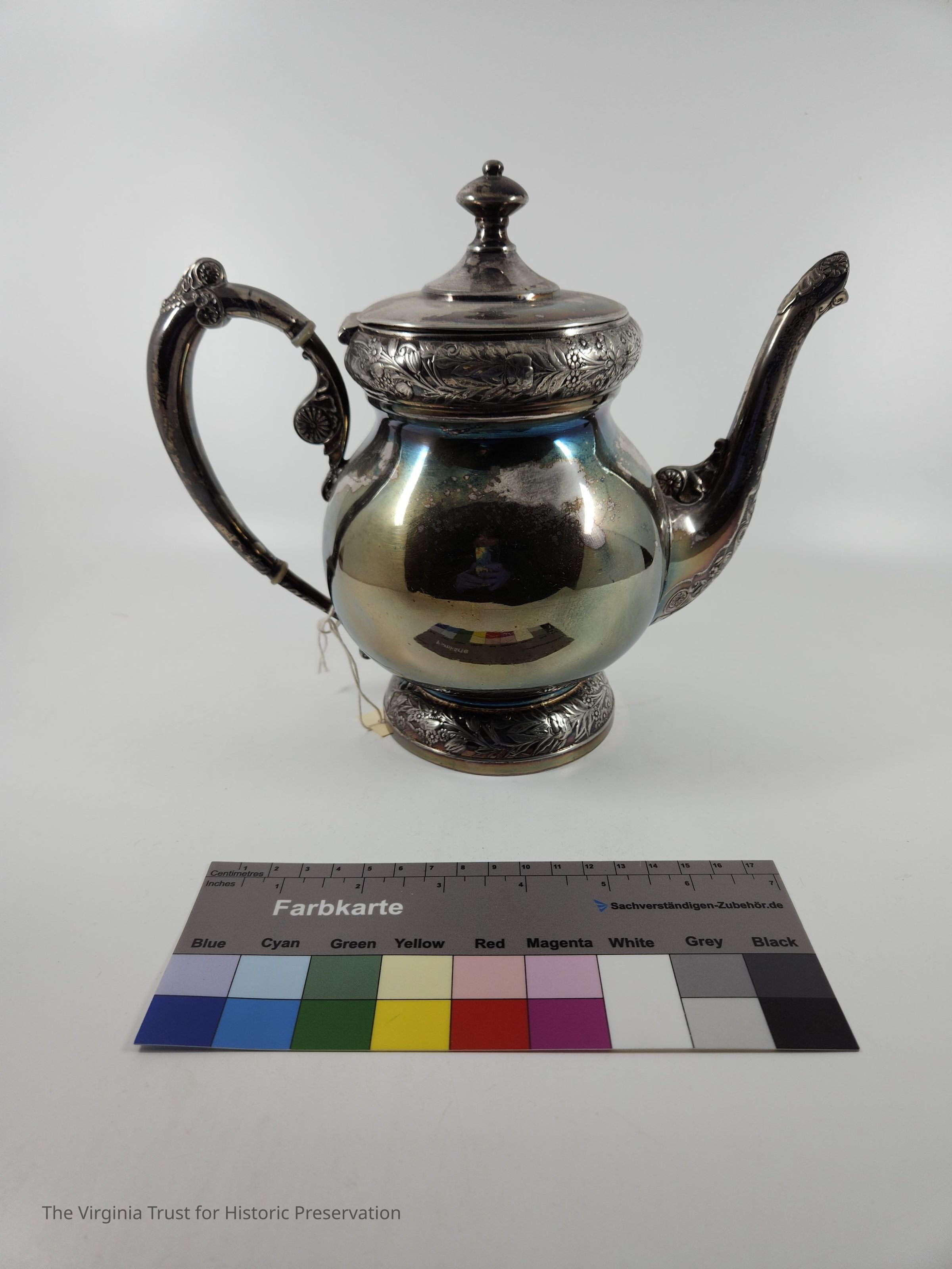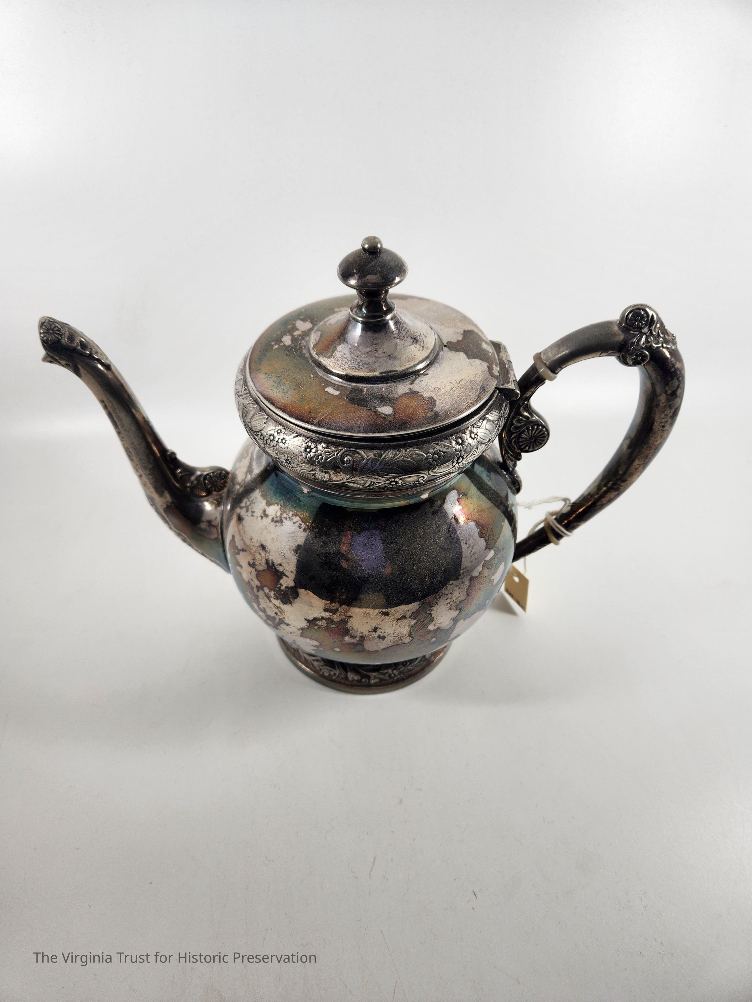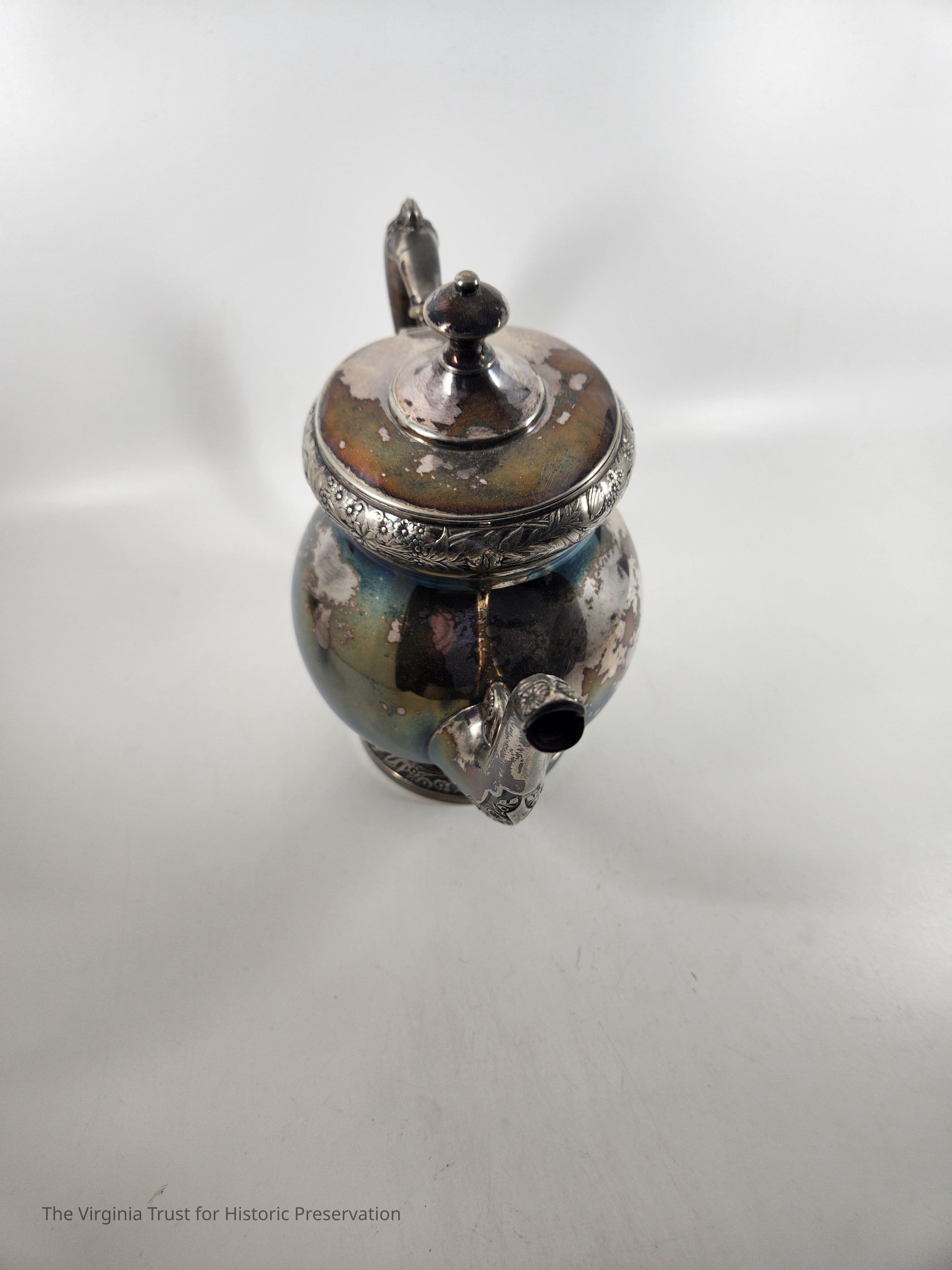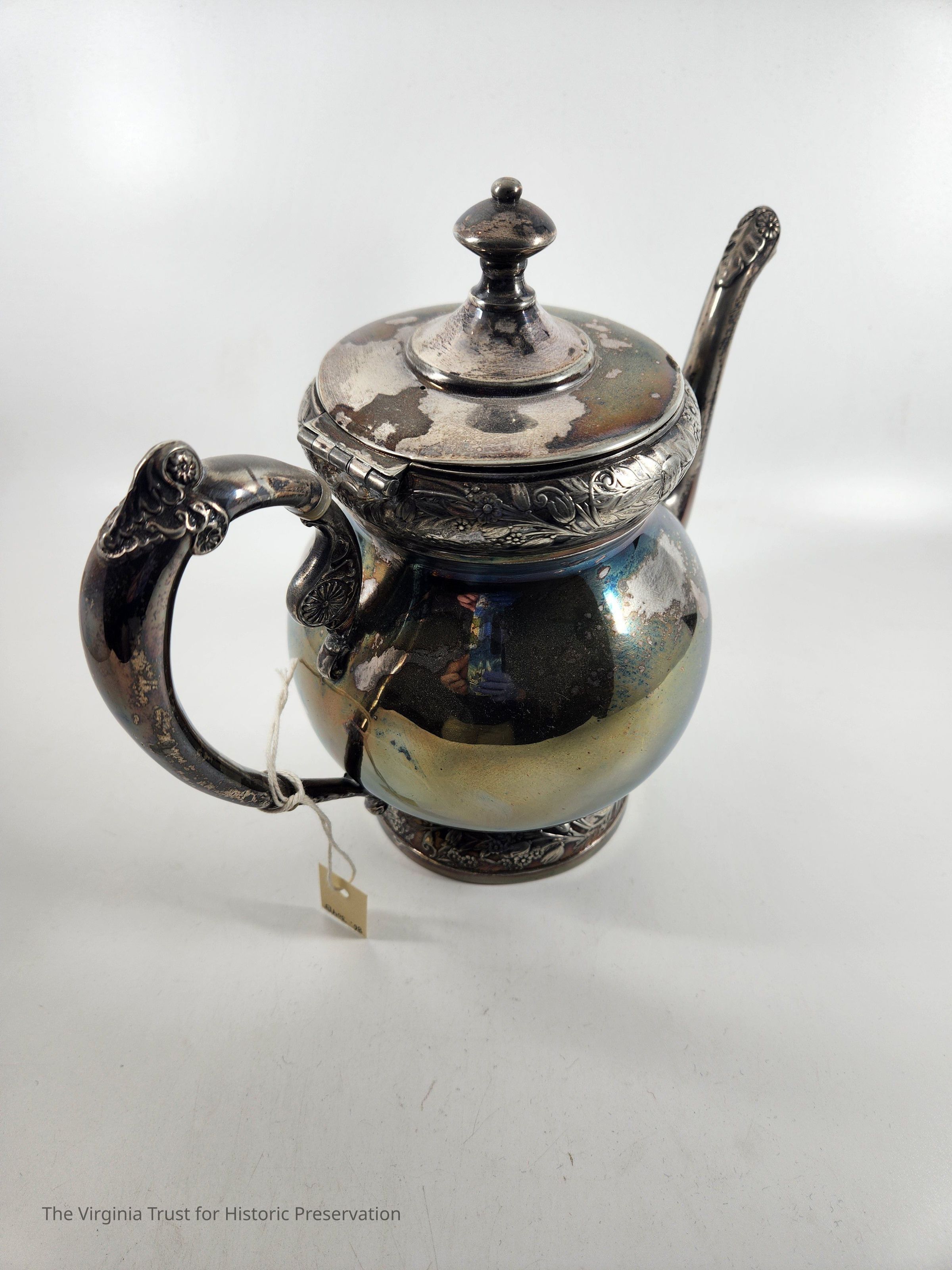 Coffee pot. Lid on hinge. Silver stamped: "Quadruple Plate Wilcox Silver Plate Co. Meriden 159."