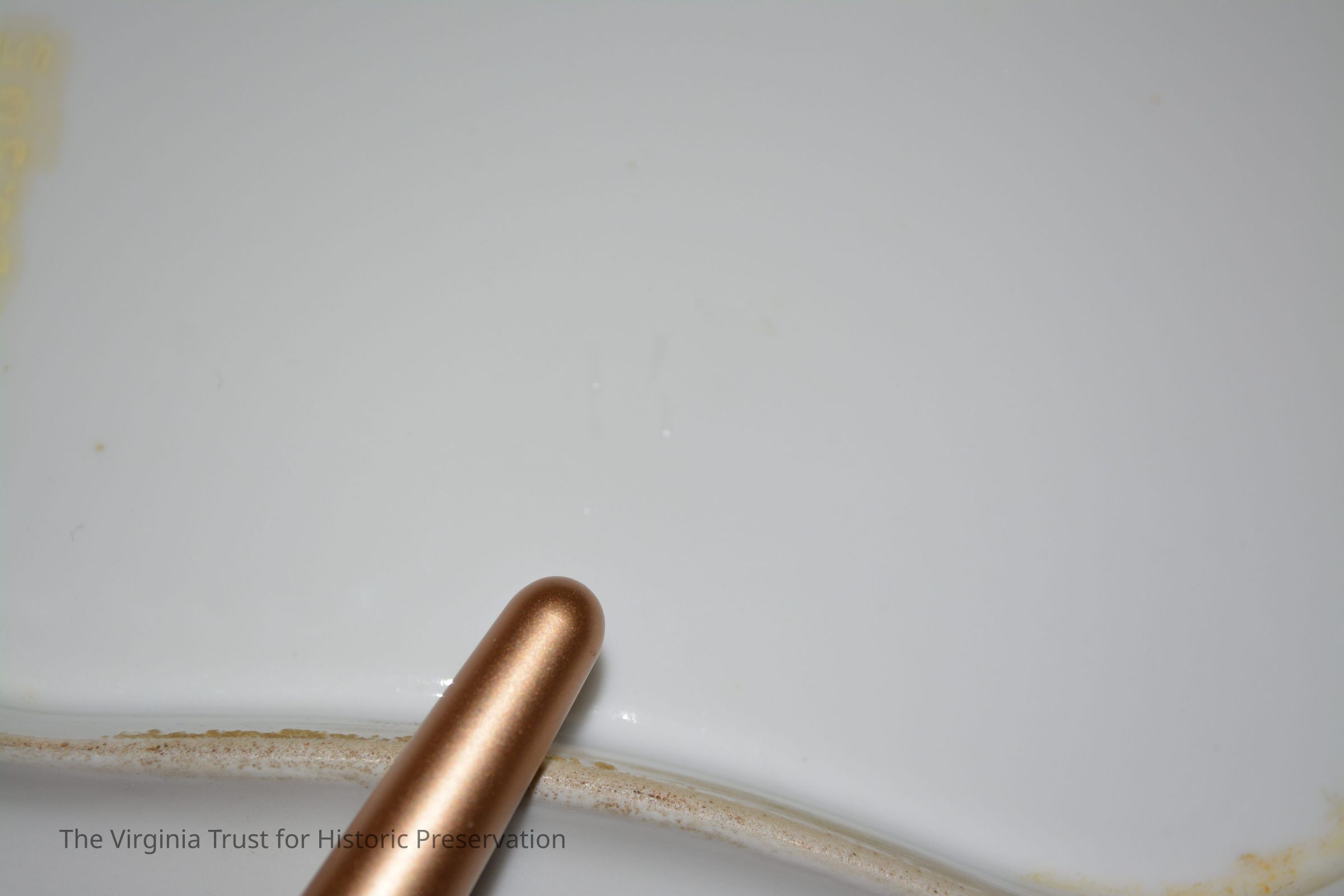 Yellow and blue chrysanthemum decoration on white ground with gilt highlights; molded, slightly serpentine bordersDimensions
