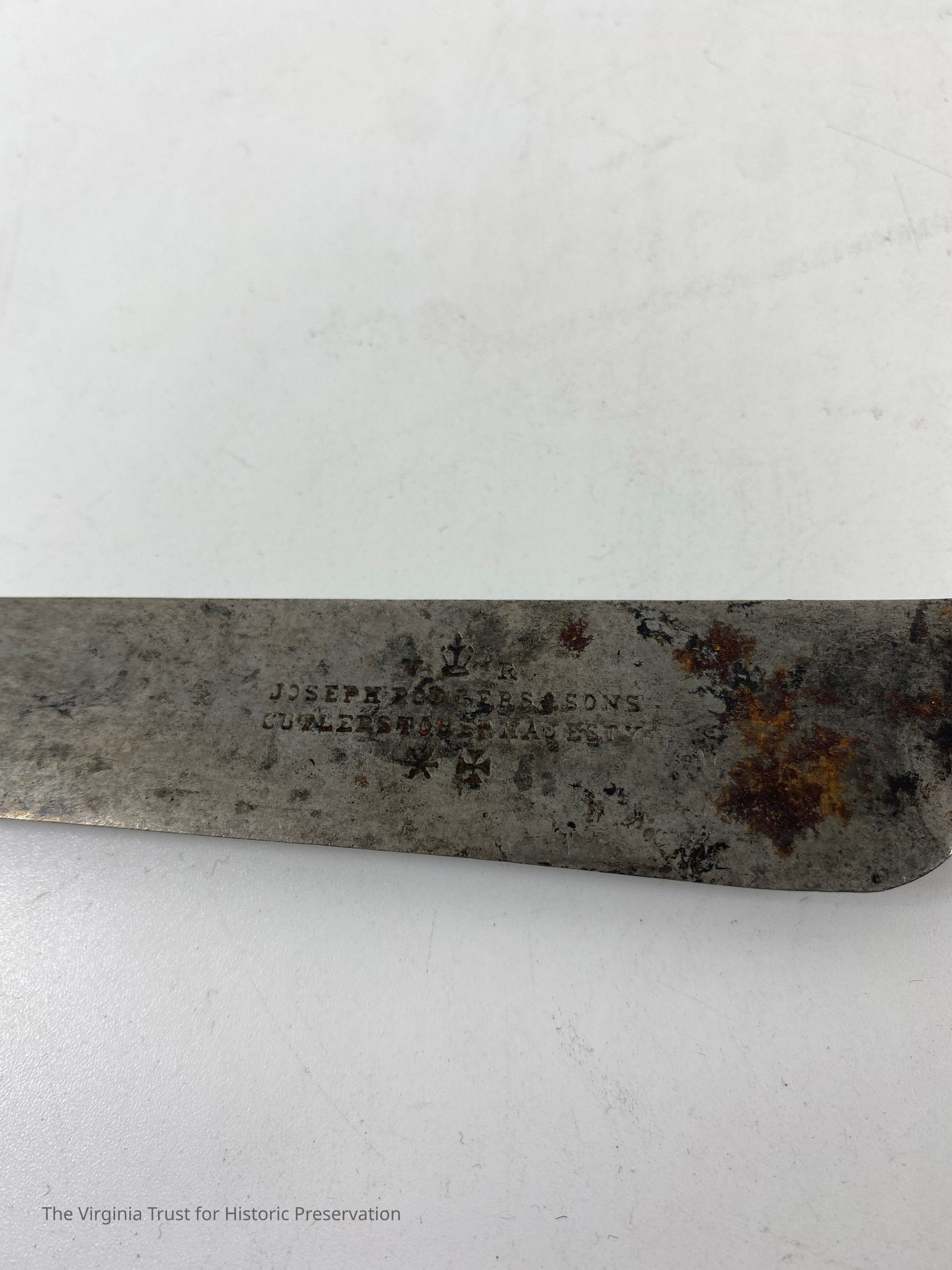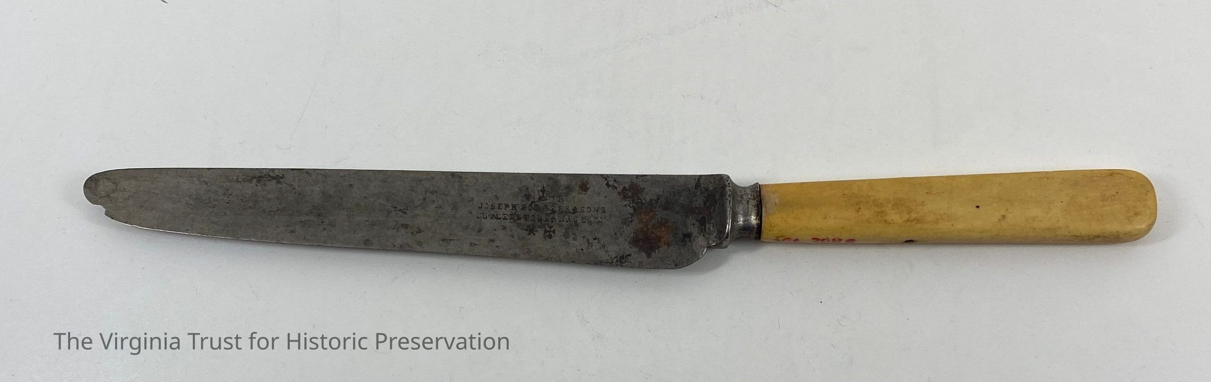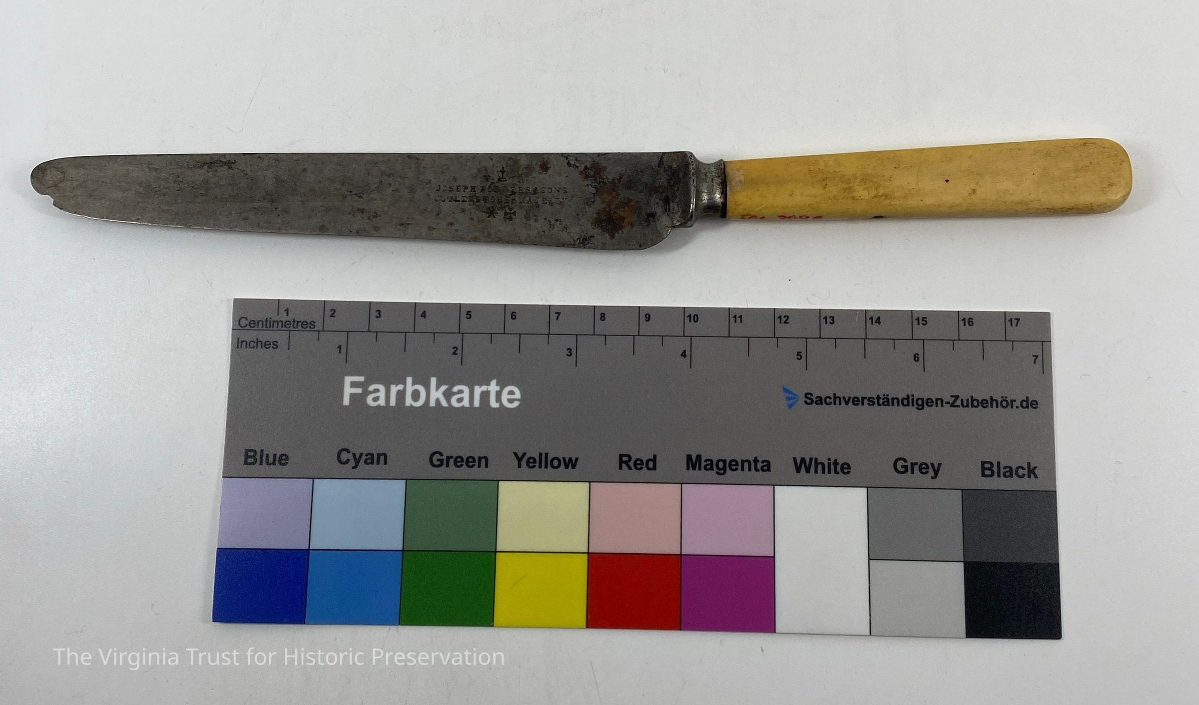 Metal knife with bone handle. Set of 10 (A-I) marked "Joseph Rogers & Sons, Cutlers to her Magesty 'VOR'."