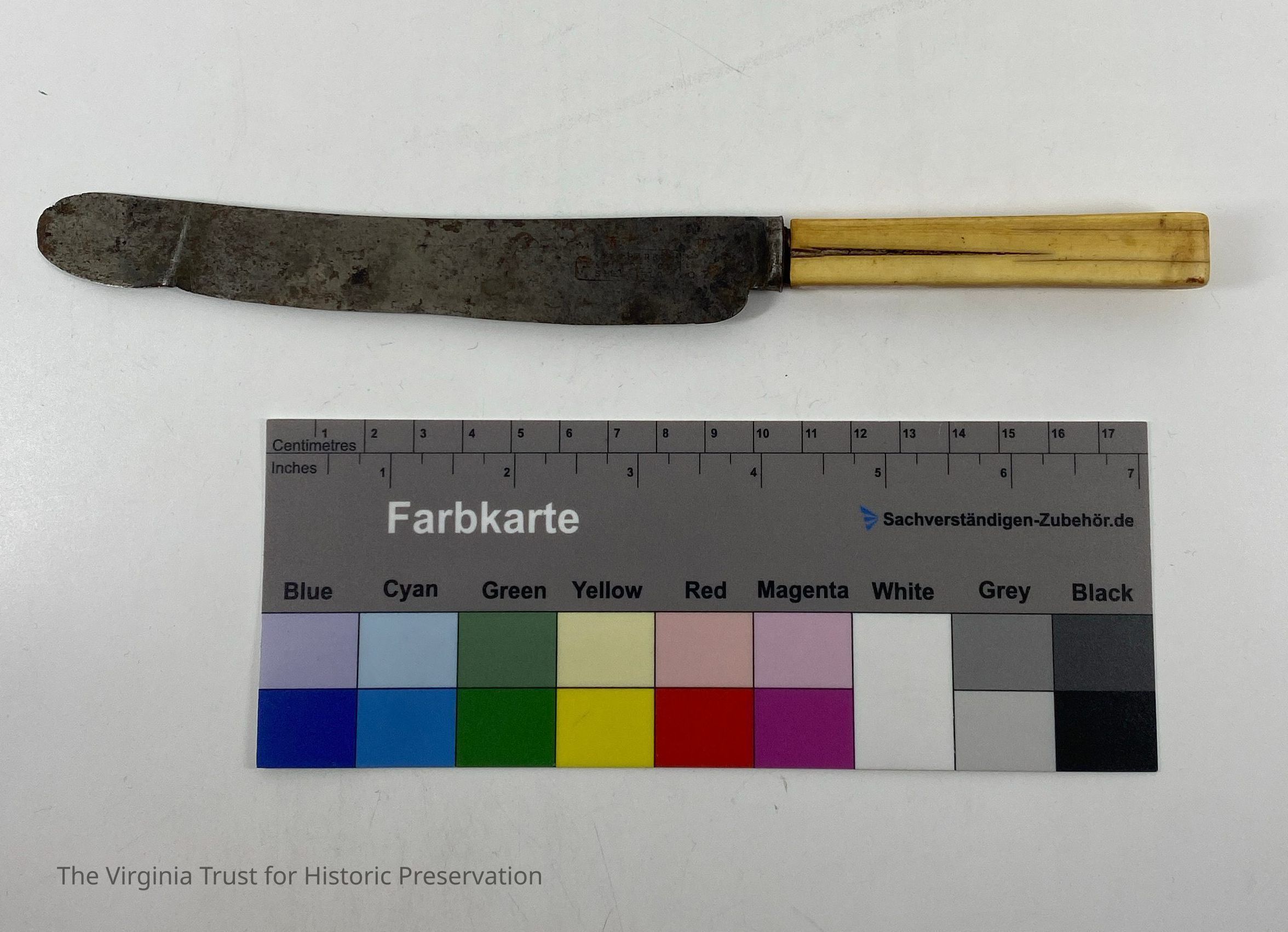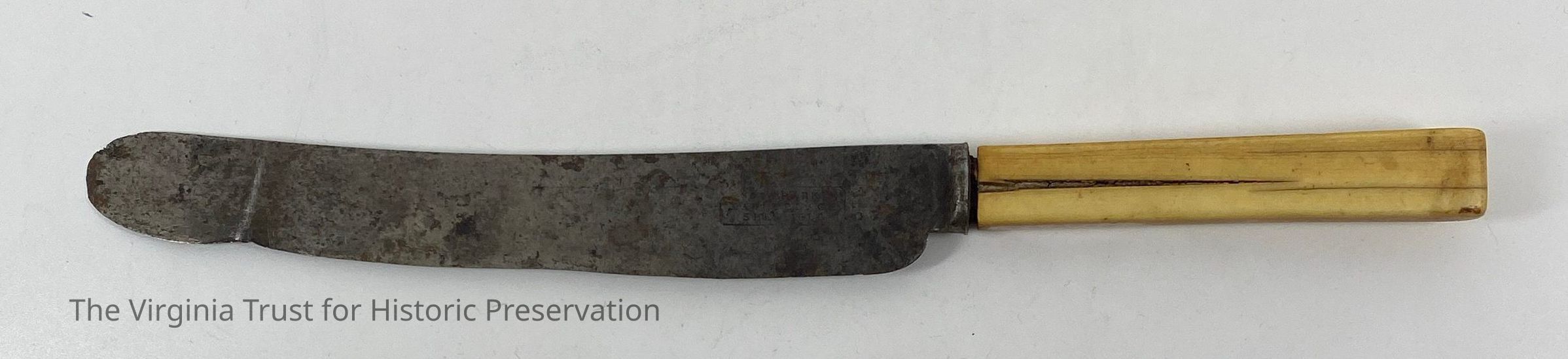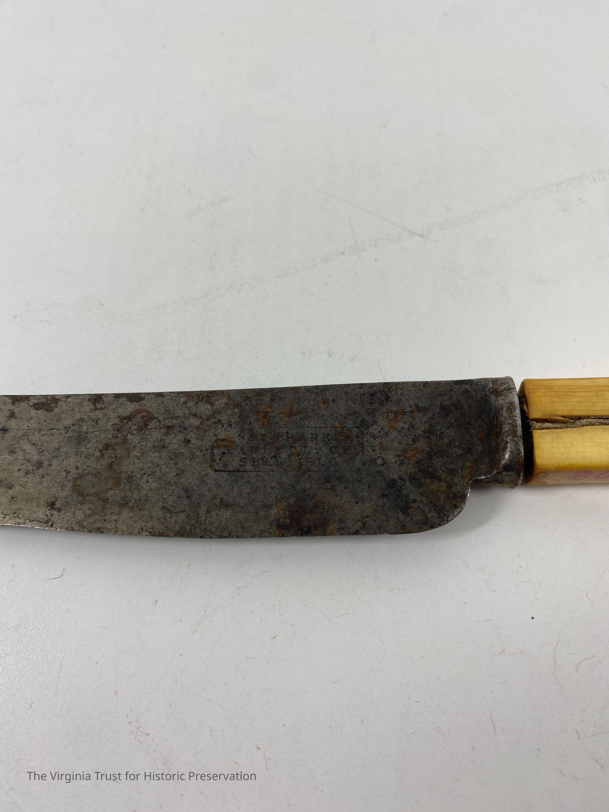 Metal knife with bone handle. Marked "Parker Eagleplace Sheffield." Square handle.