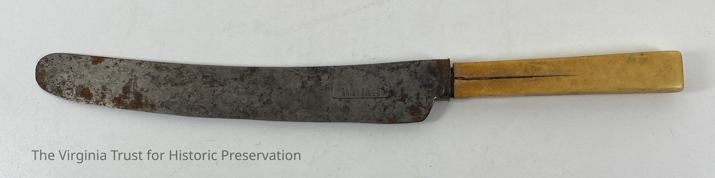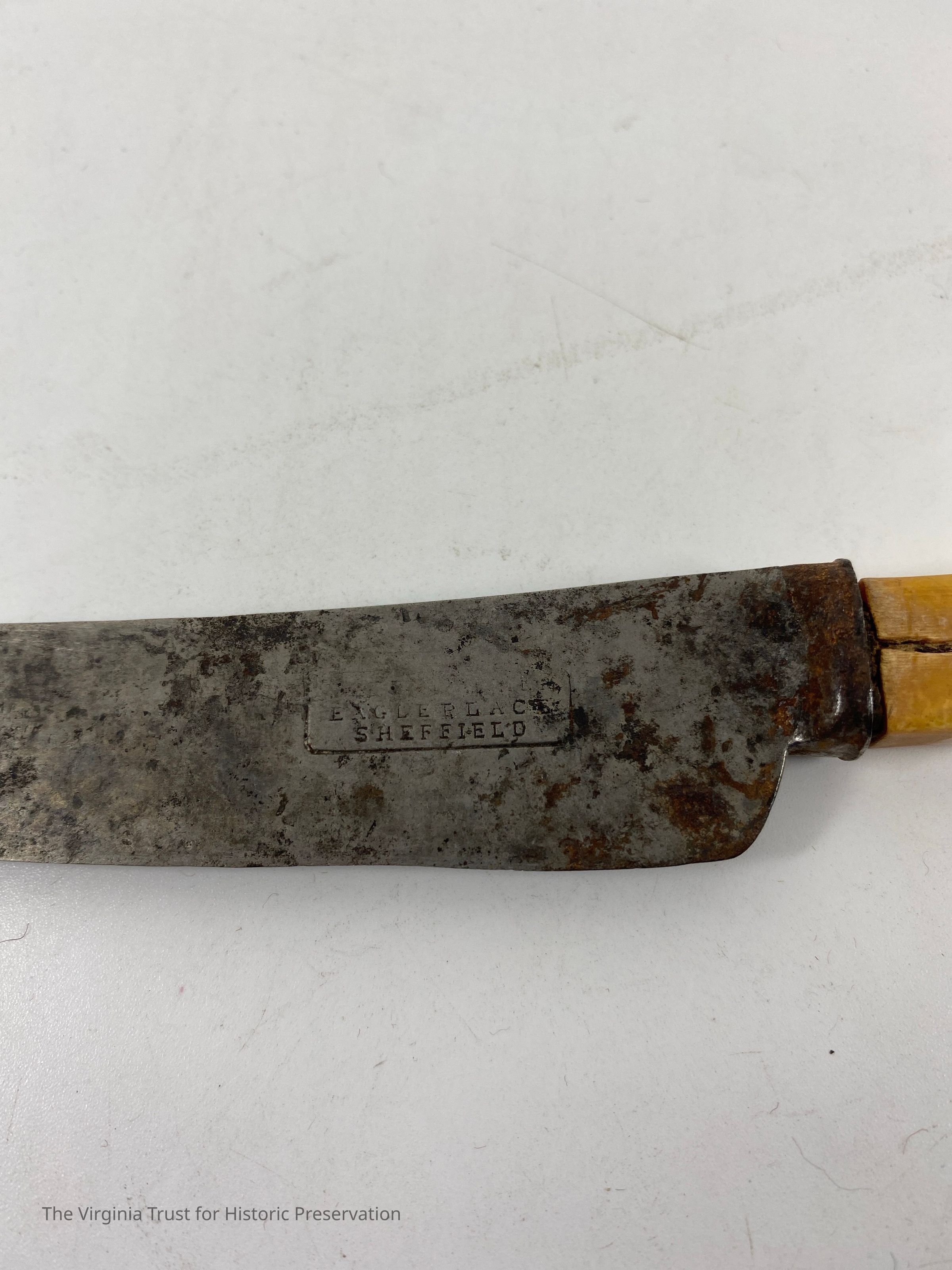 Metal knife with bone handle. Marked "Parker Eagleplace Sheffield." Square Handle.