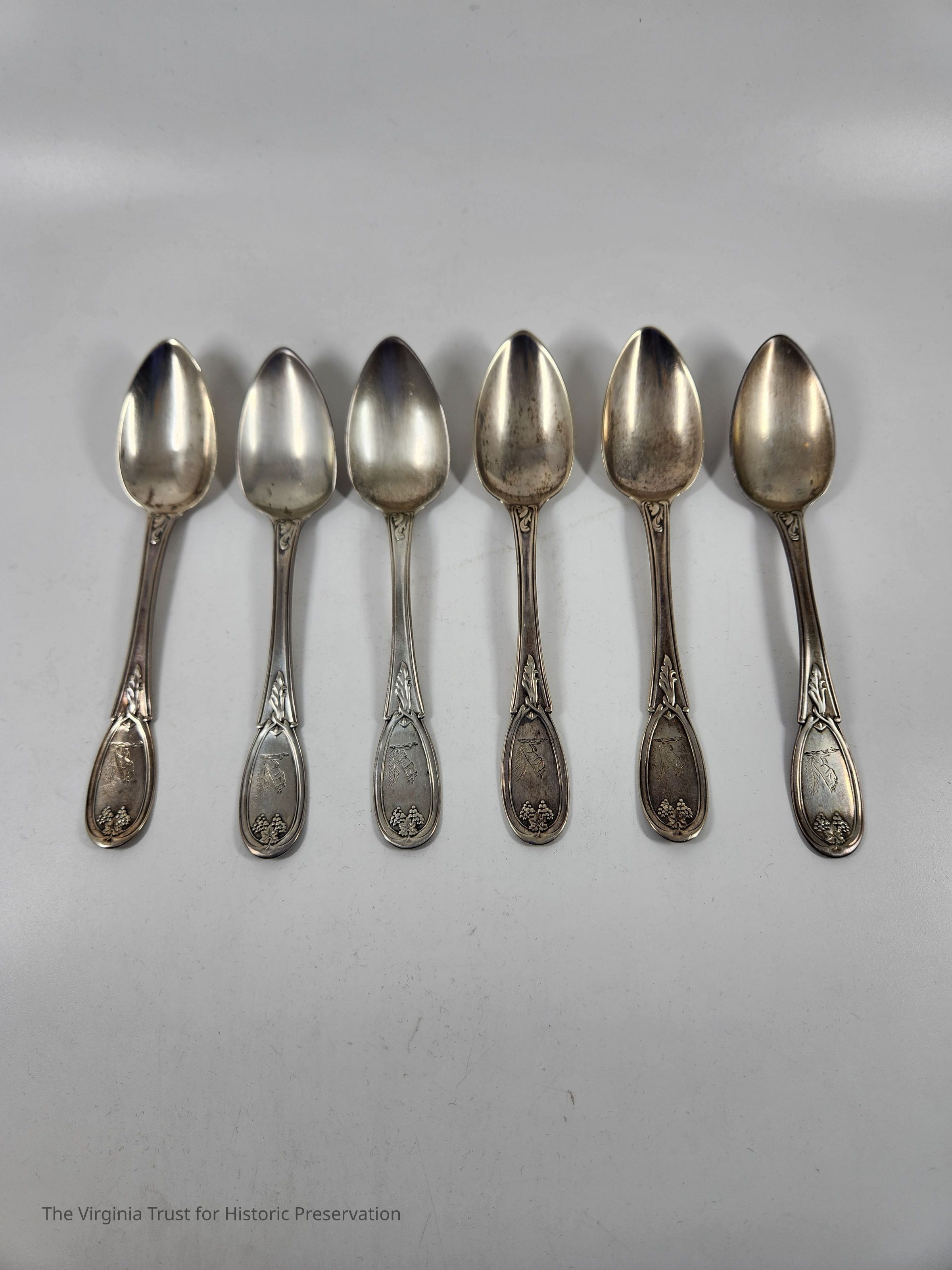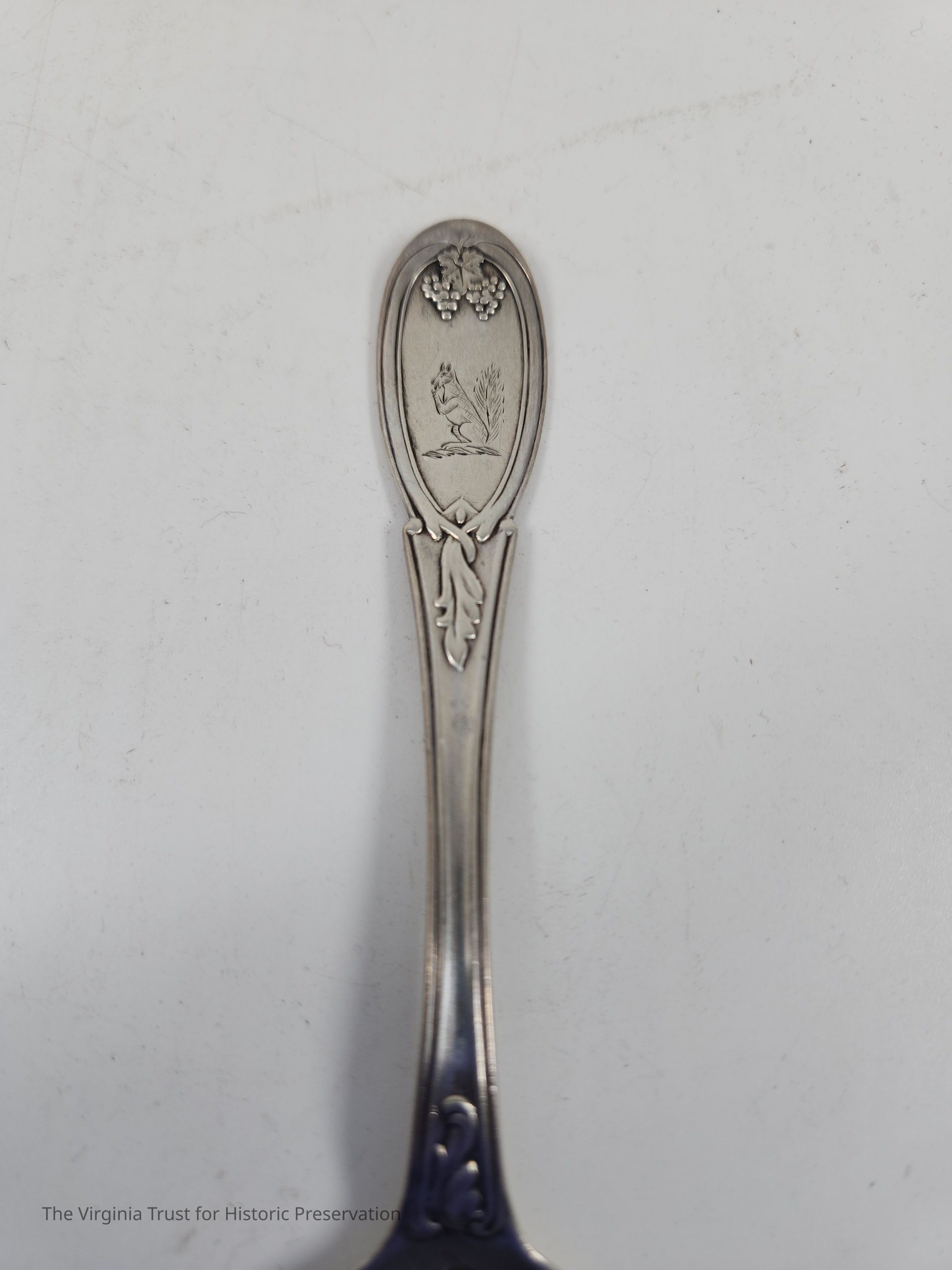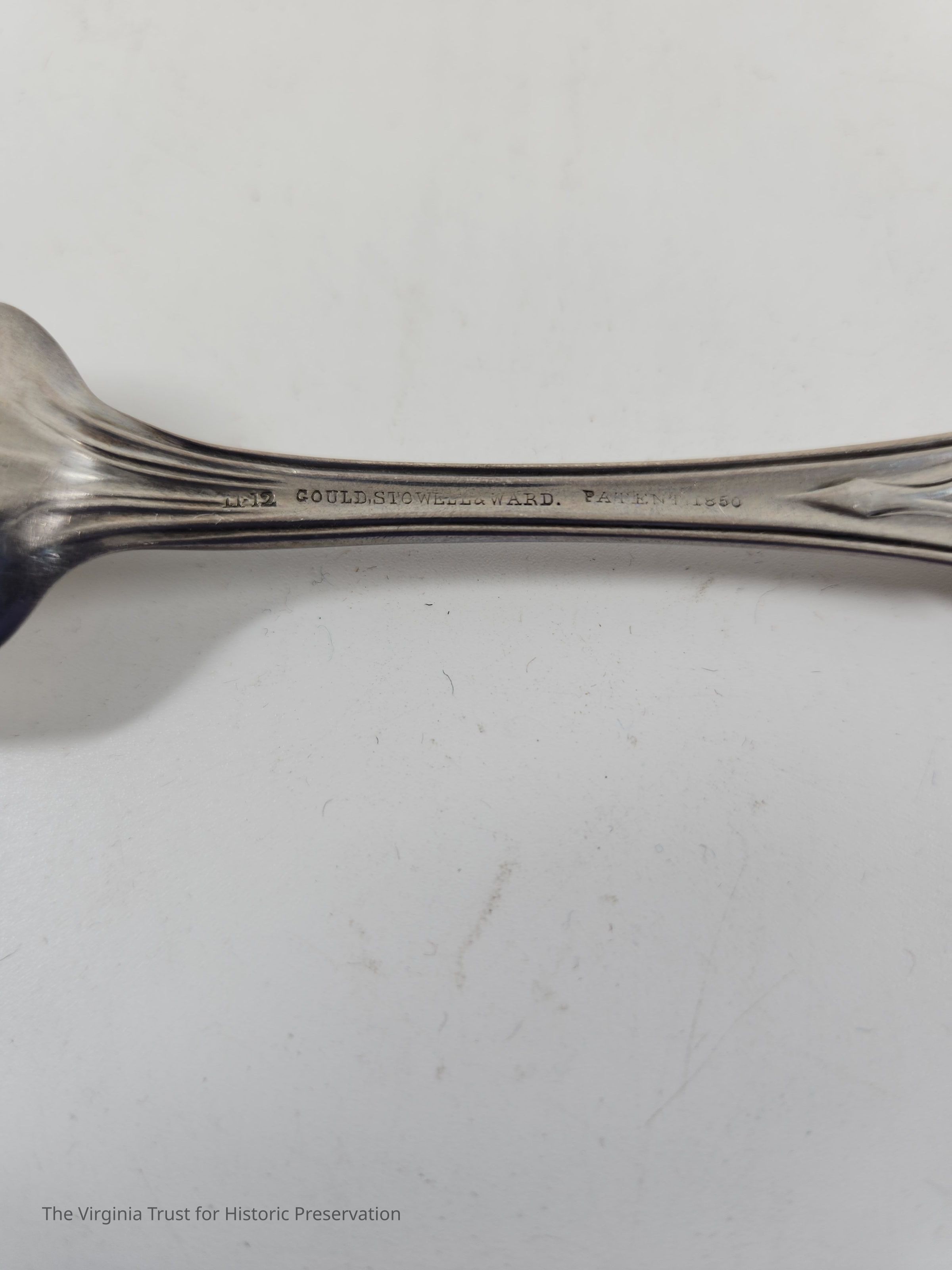 Part of set of six silver spoons with the Lee Squirrel engraved on the handle. Stamped "Gould, Stowells and Ward Patent 1850."