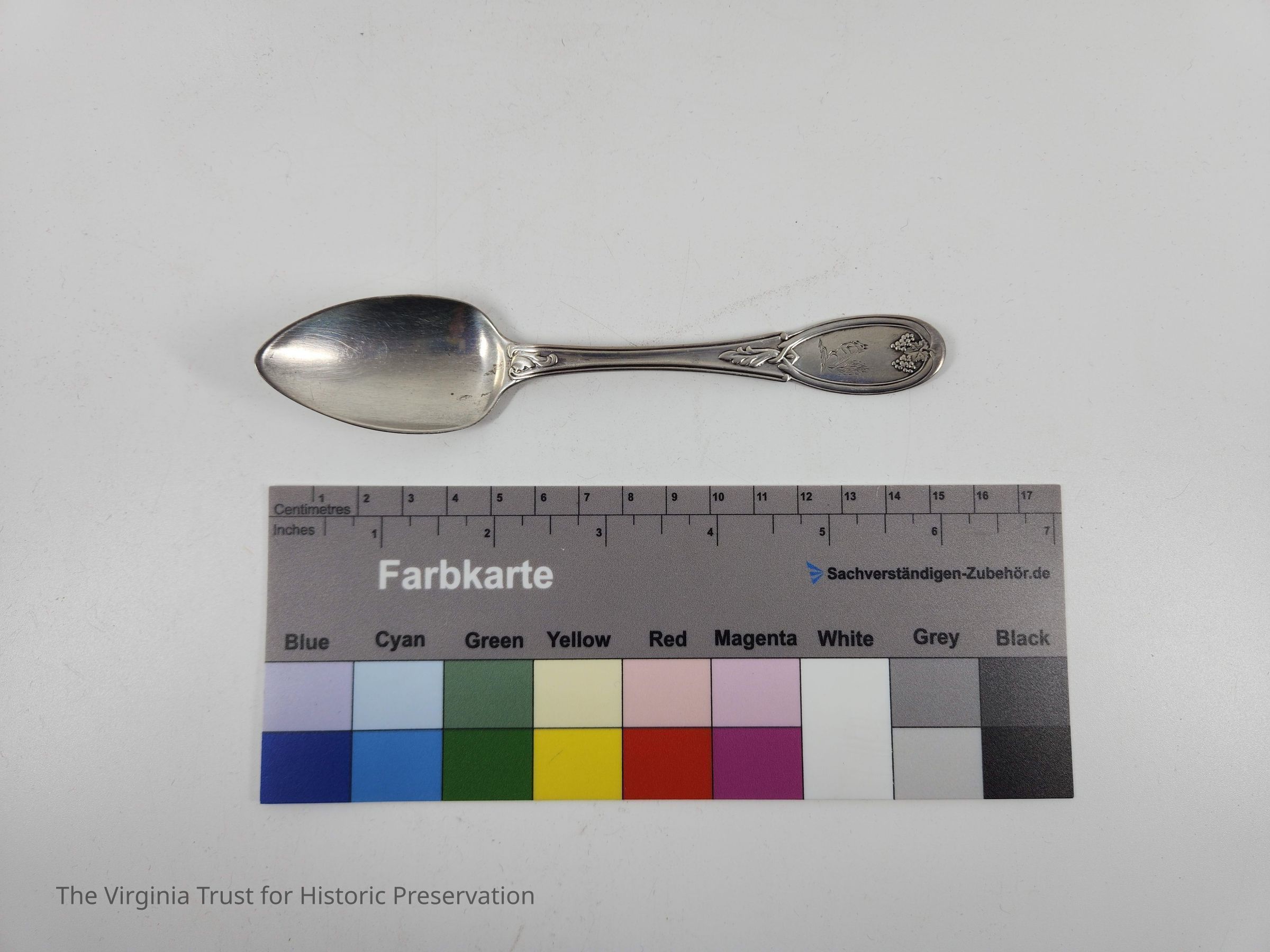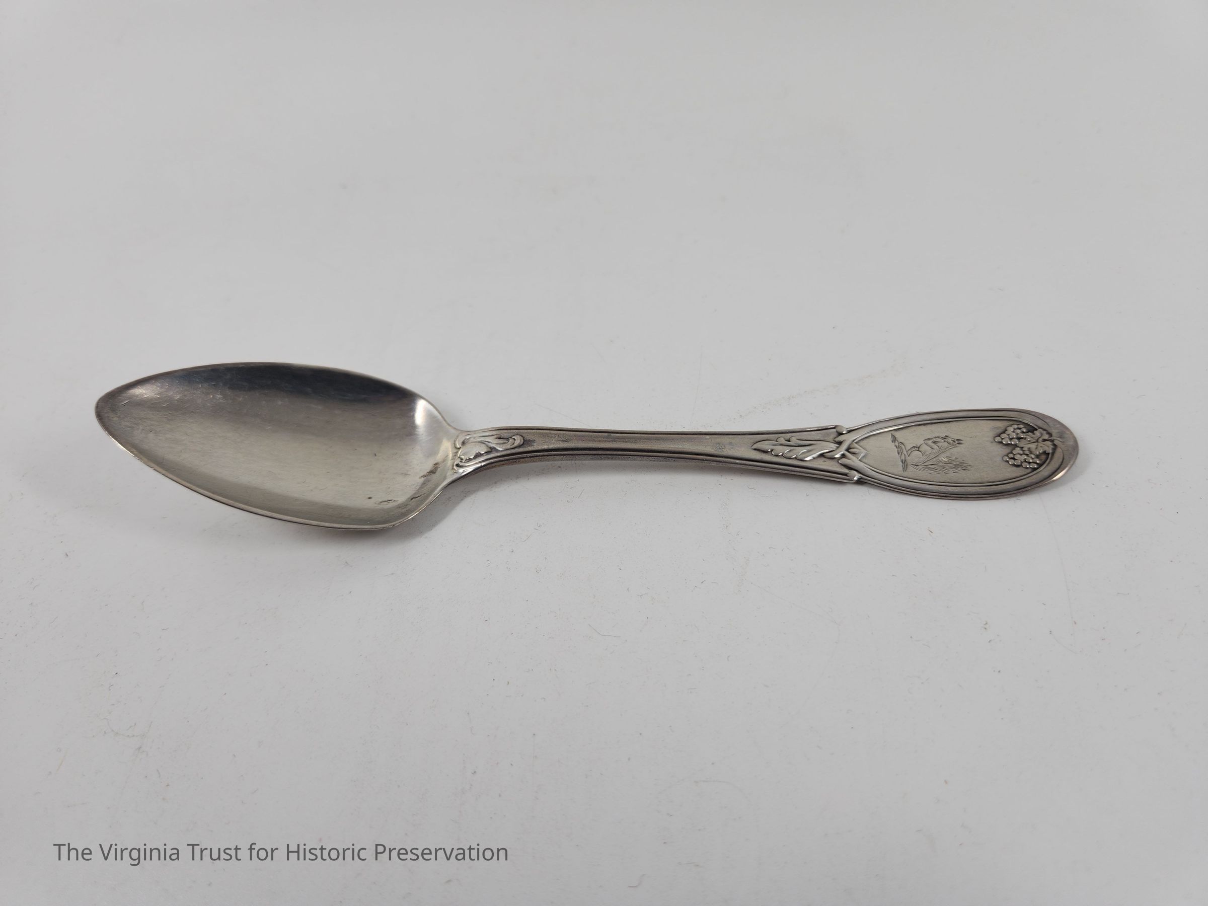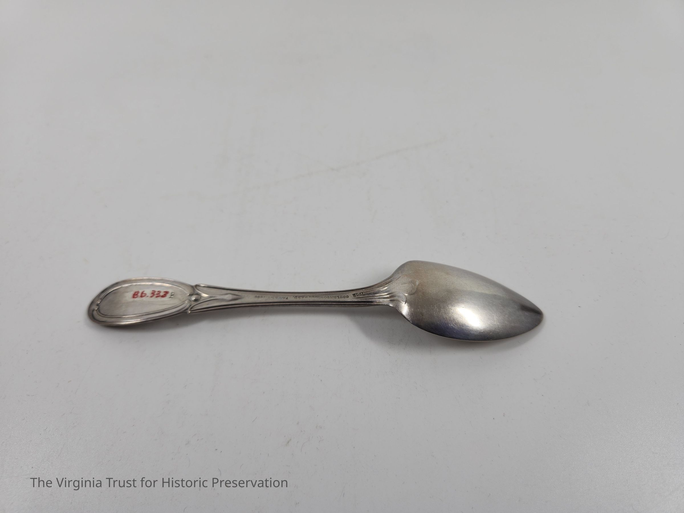 Part of set of six silver spoons with the Lee Squirrel engraved on the handle. Stamped "Gould, Stowells and Ward Patent 1850."