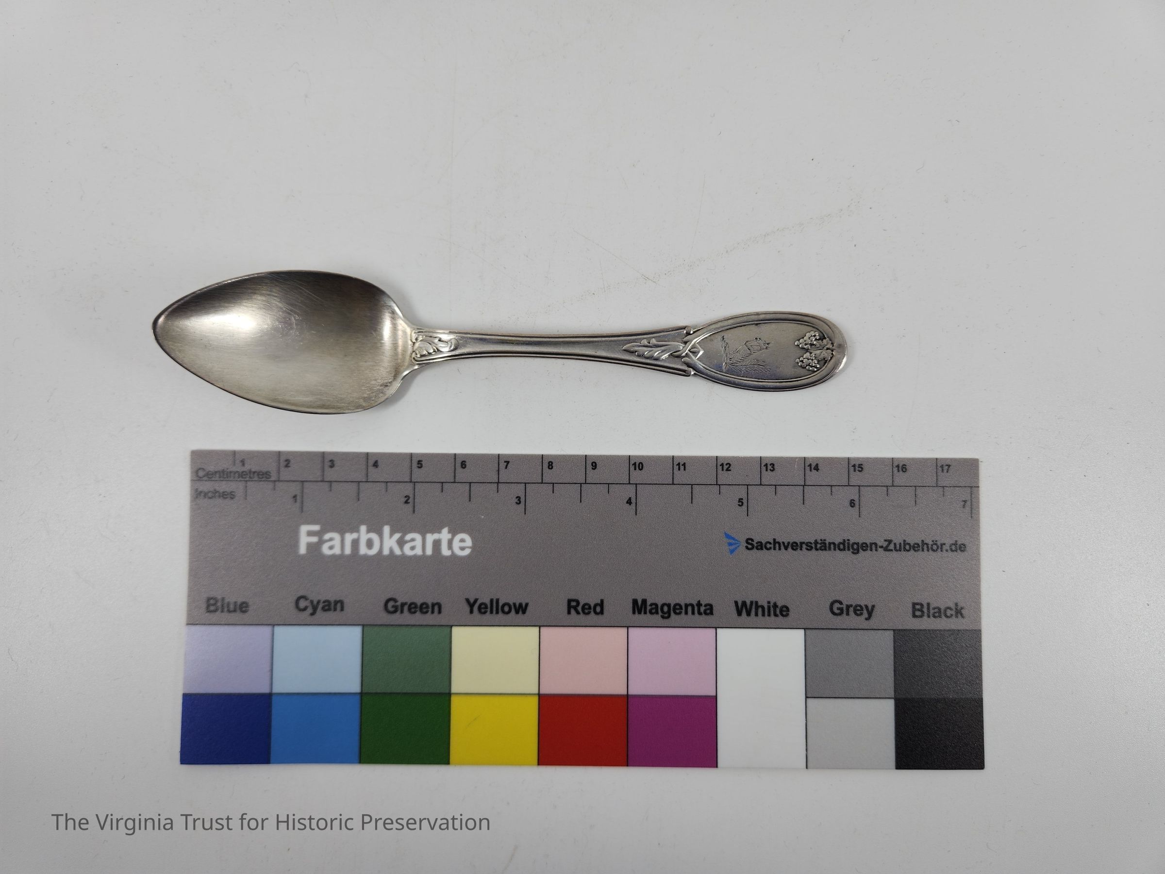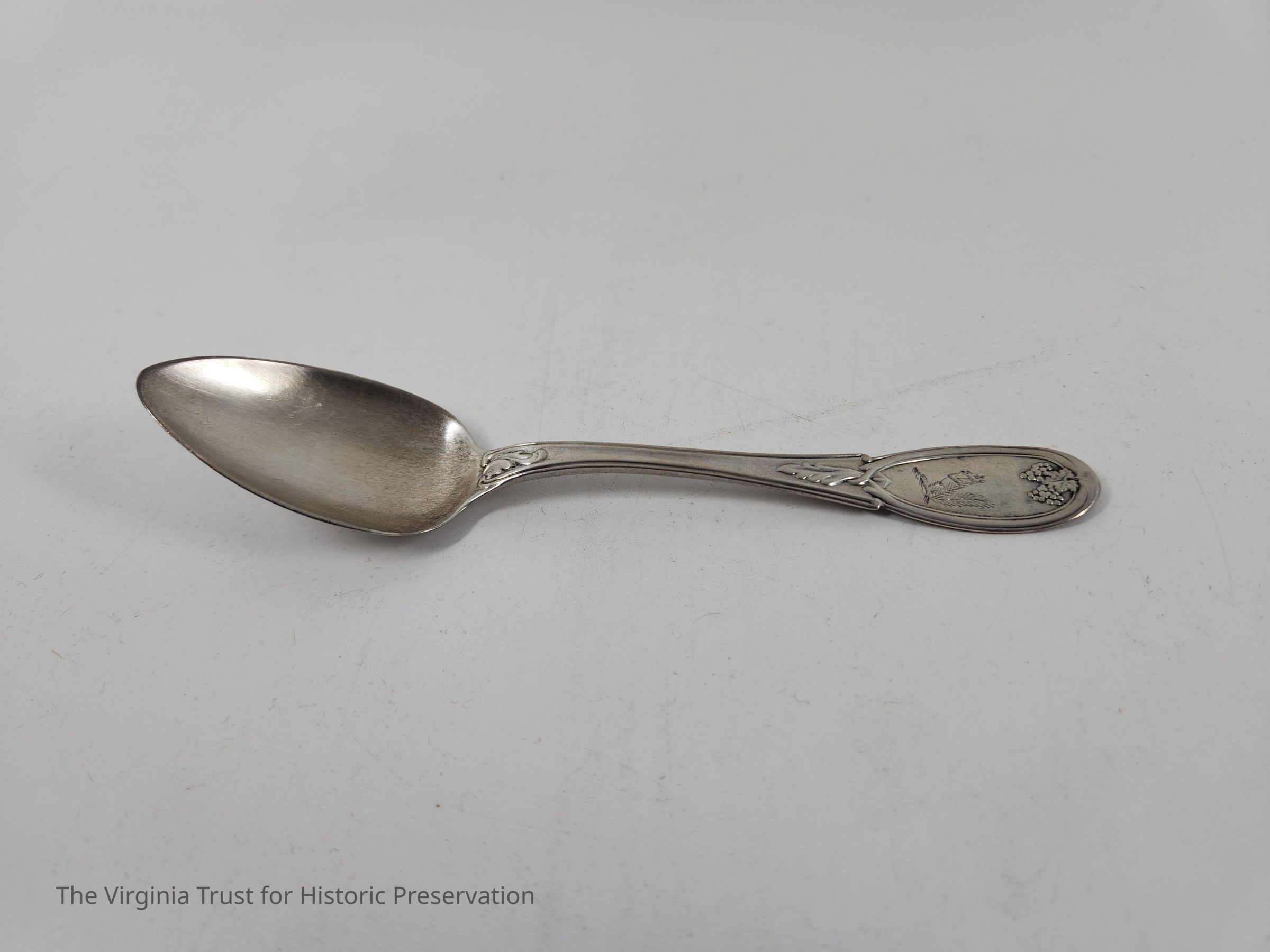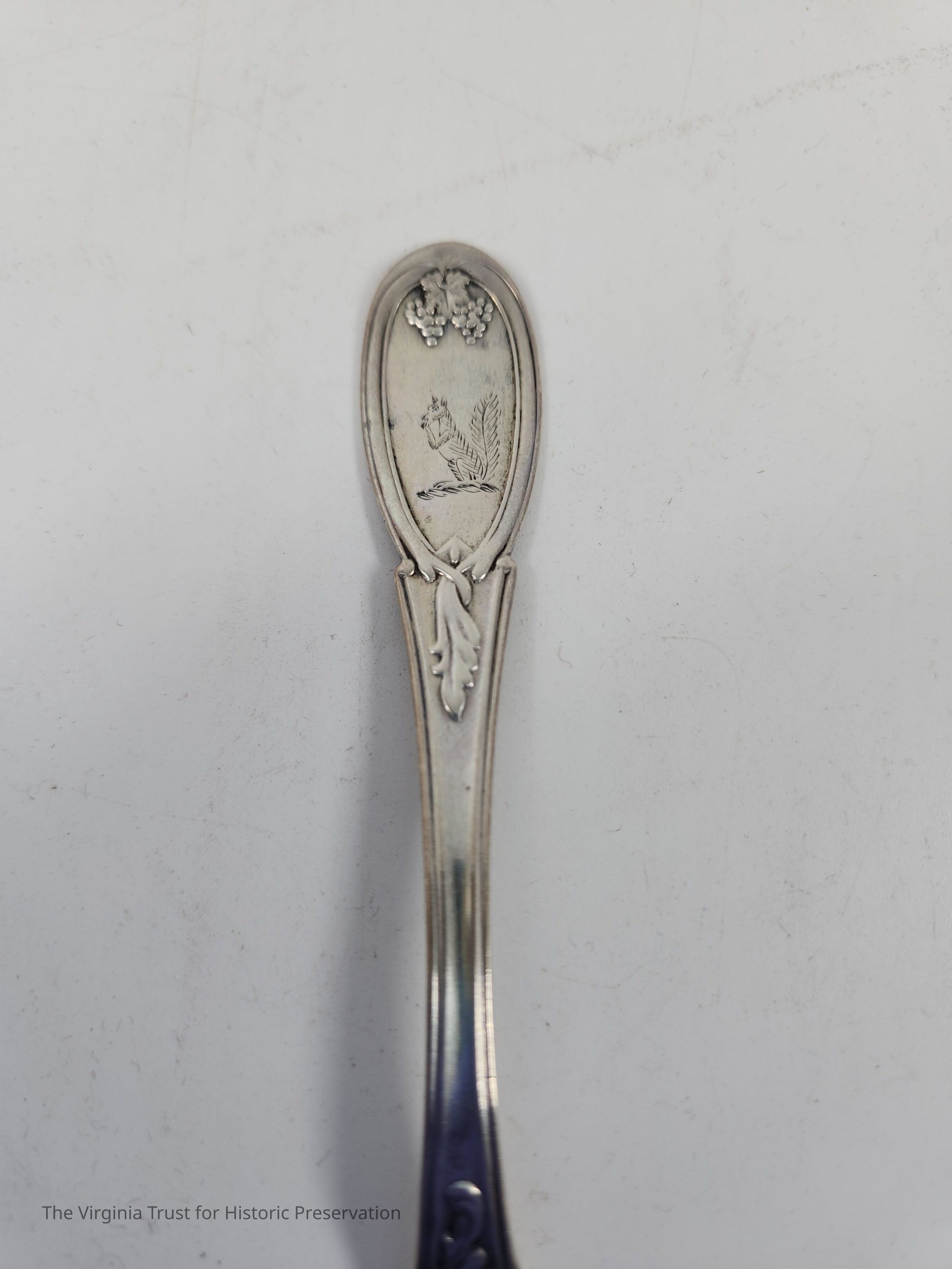 Silver spoon with Lee family squirrel engrave on the handle
