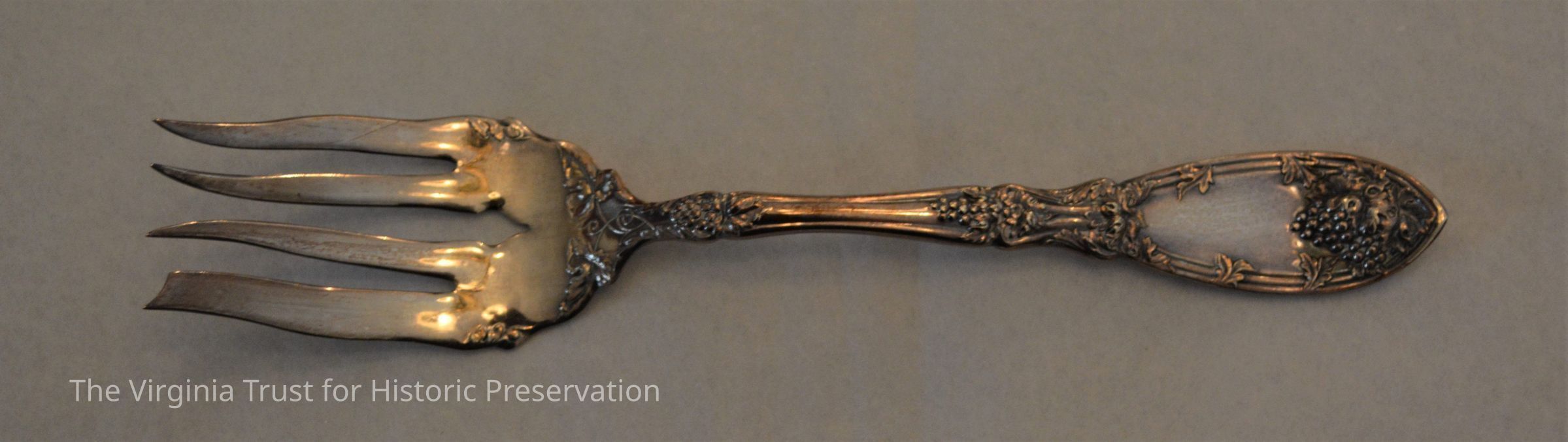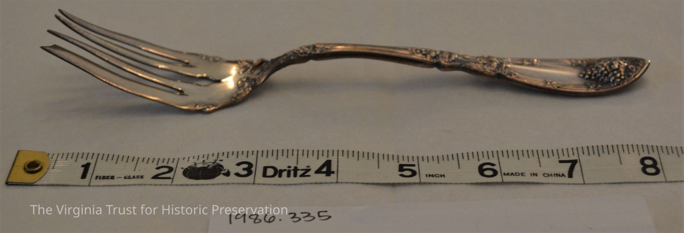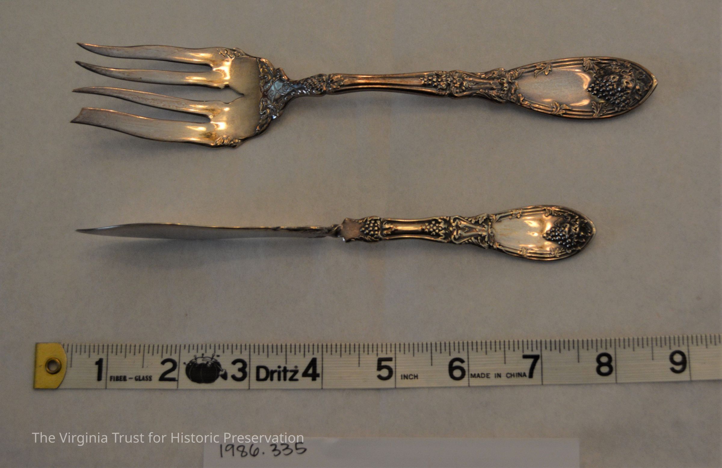 Matching fork and butter knife. Stamped "Pat. Jan. 14 08 1881 Rogers A1.". Grapevine decoration.
