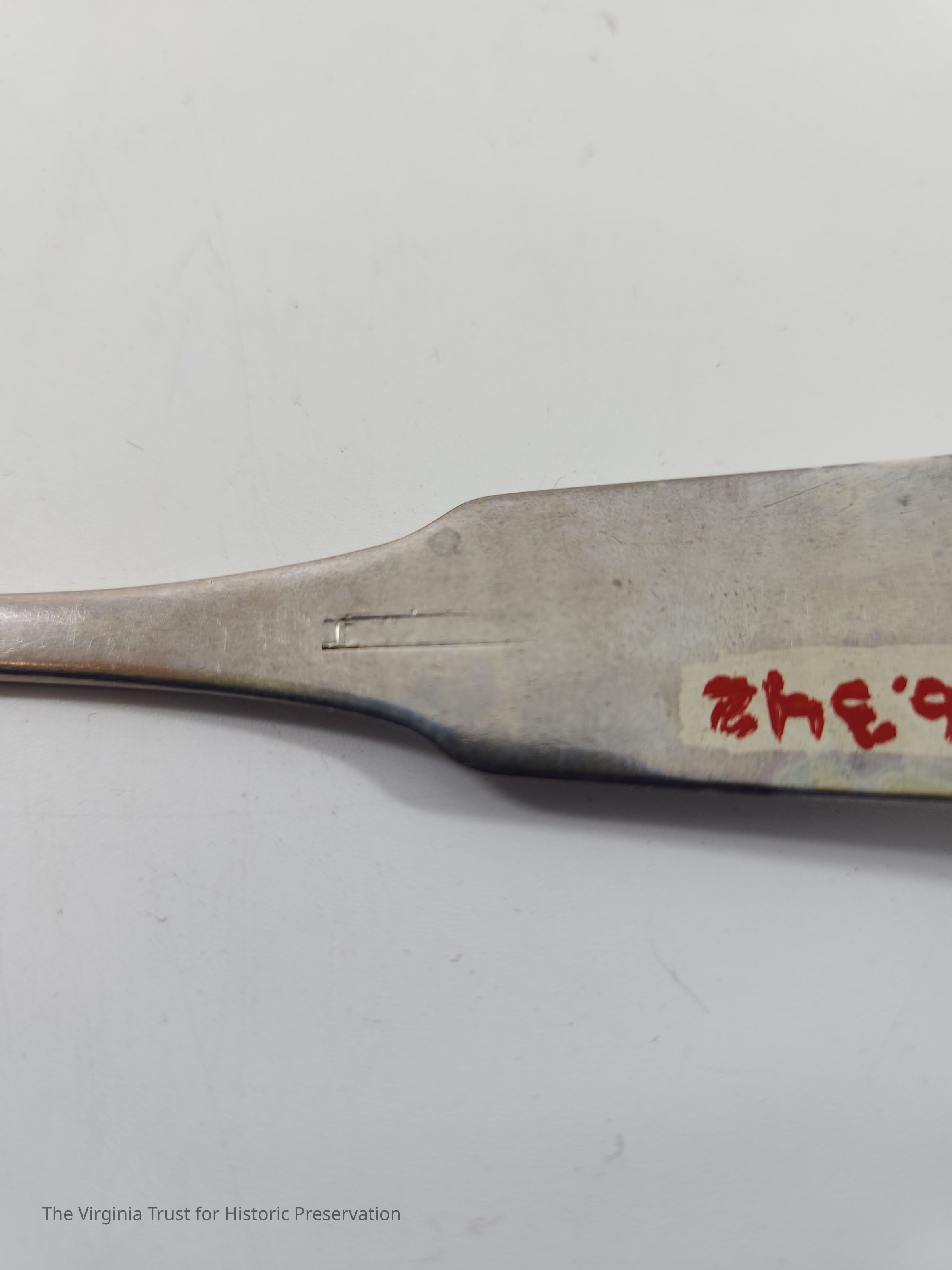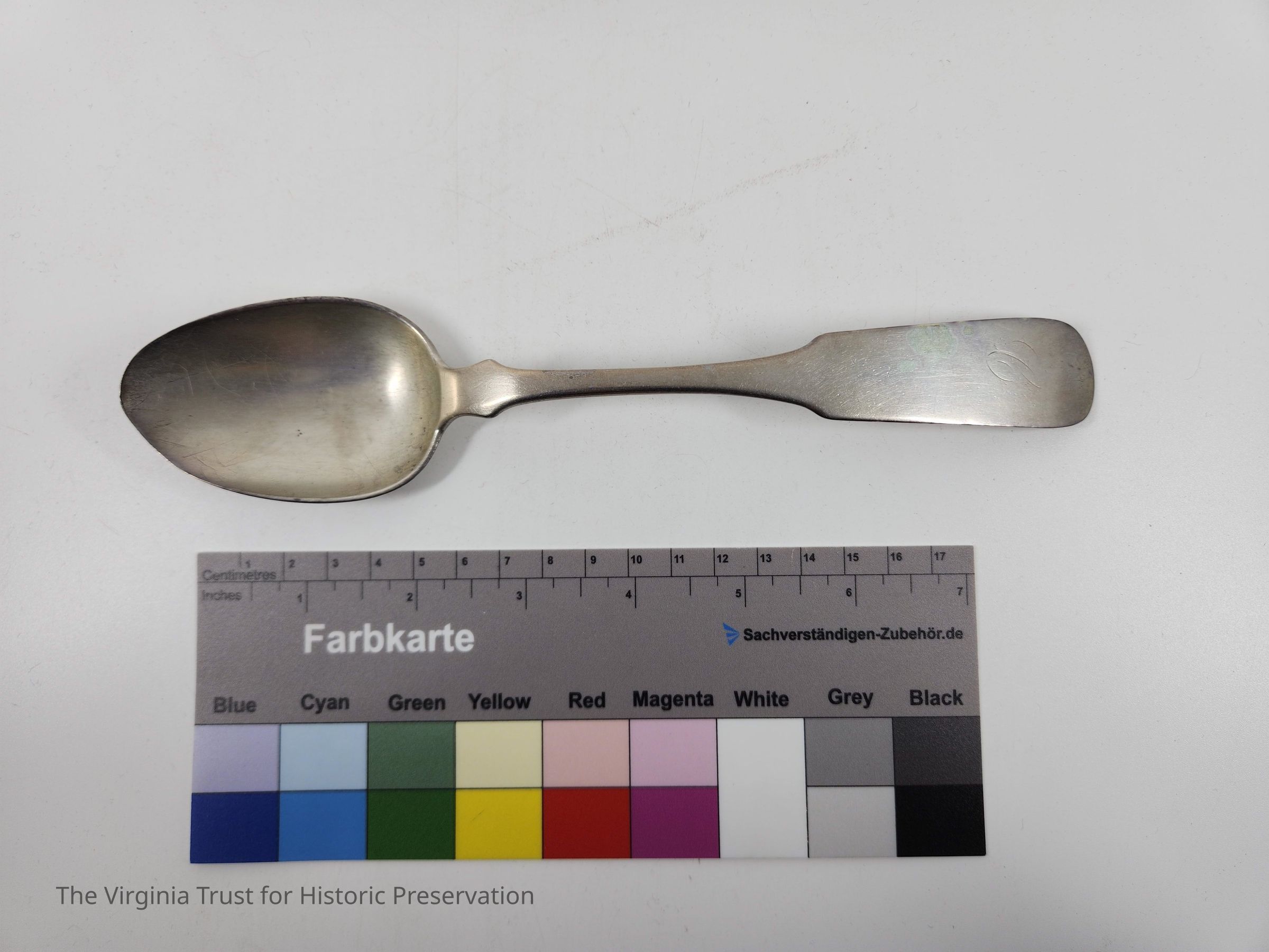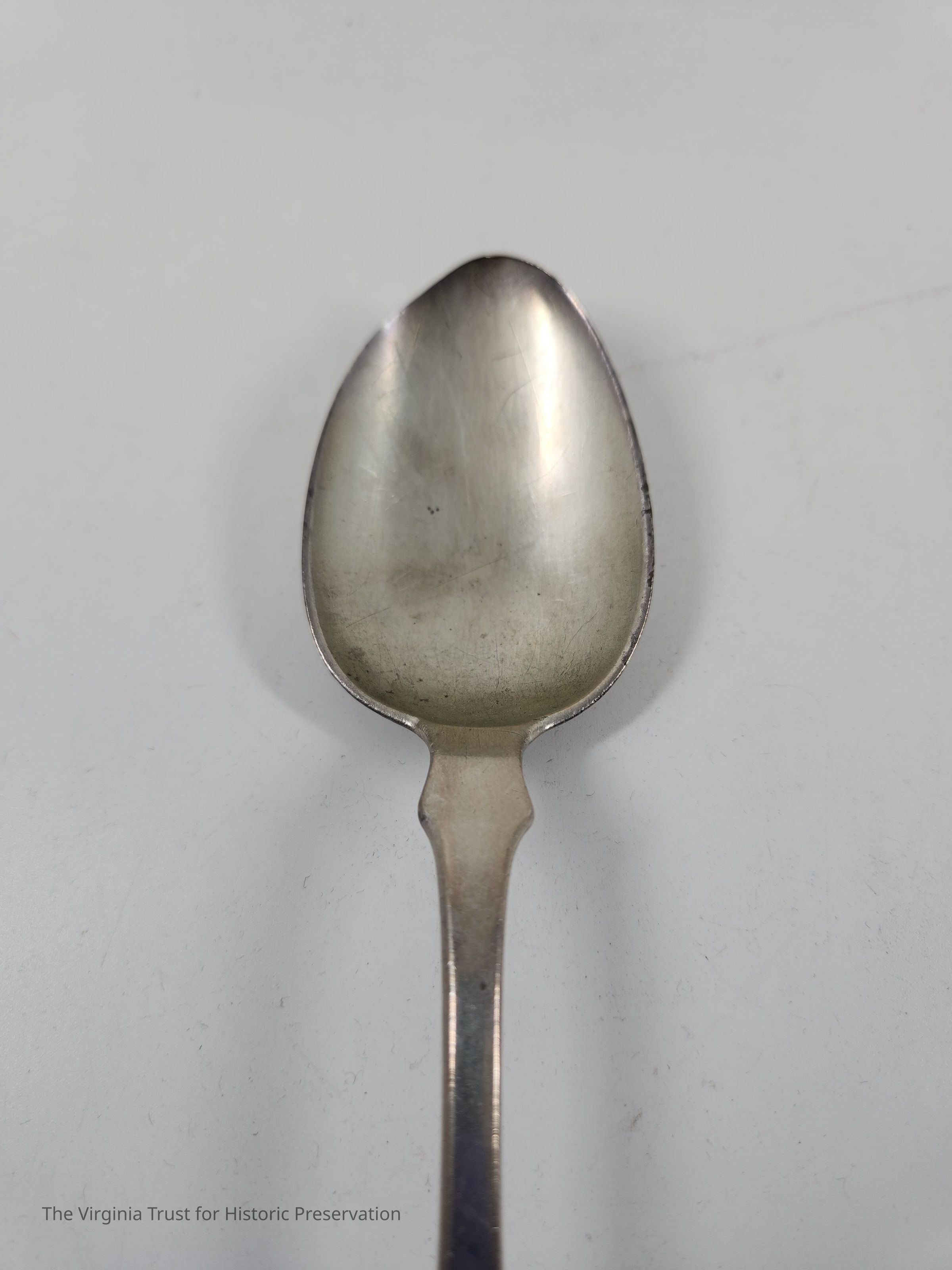 American coin silver fiddleback tablespoon. Monogrammed "C." on handle end - recto. Engraving: "E. WATSON" on back of handle.