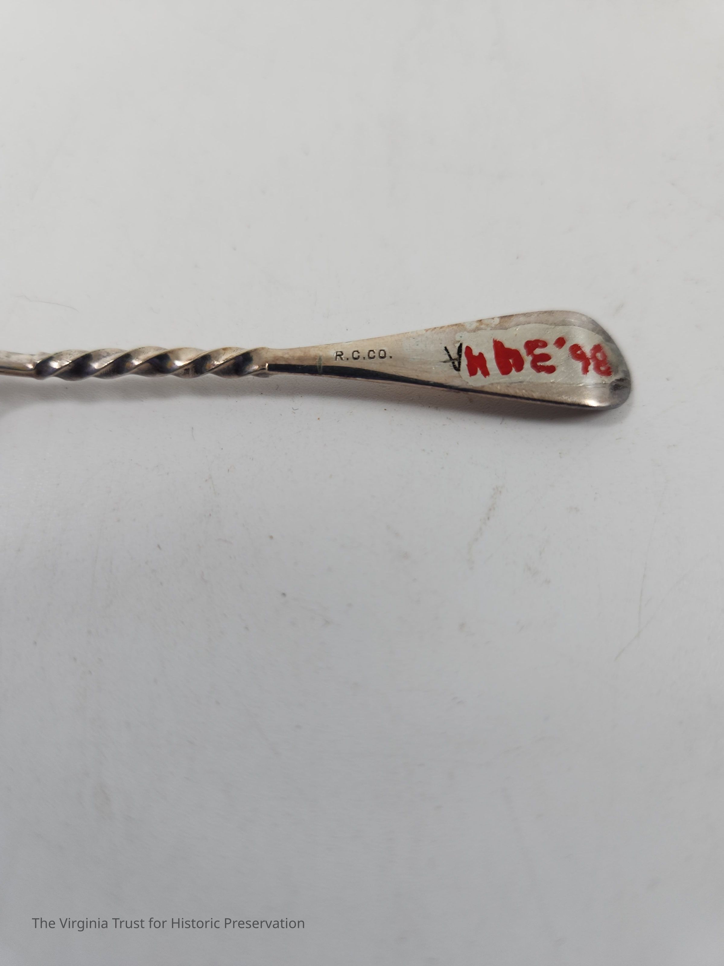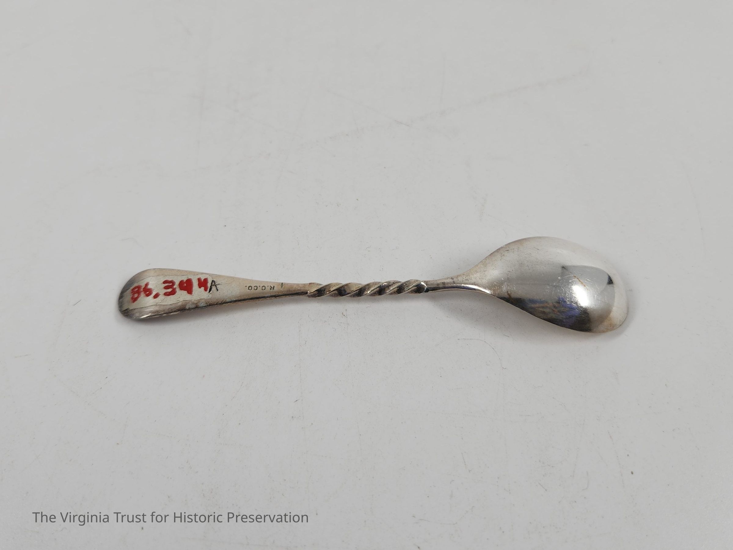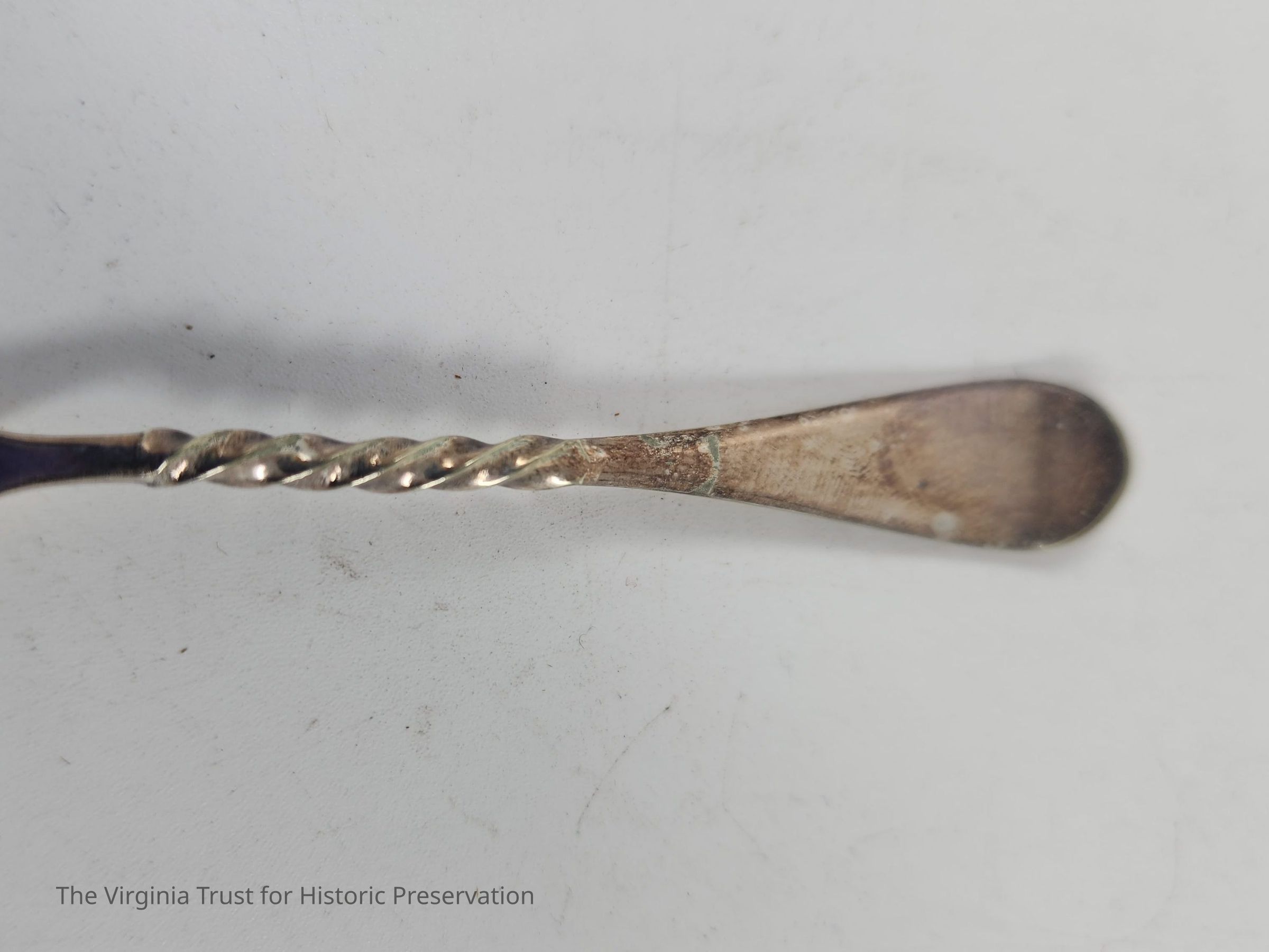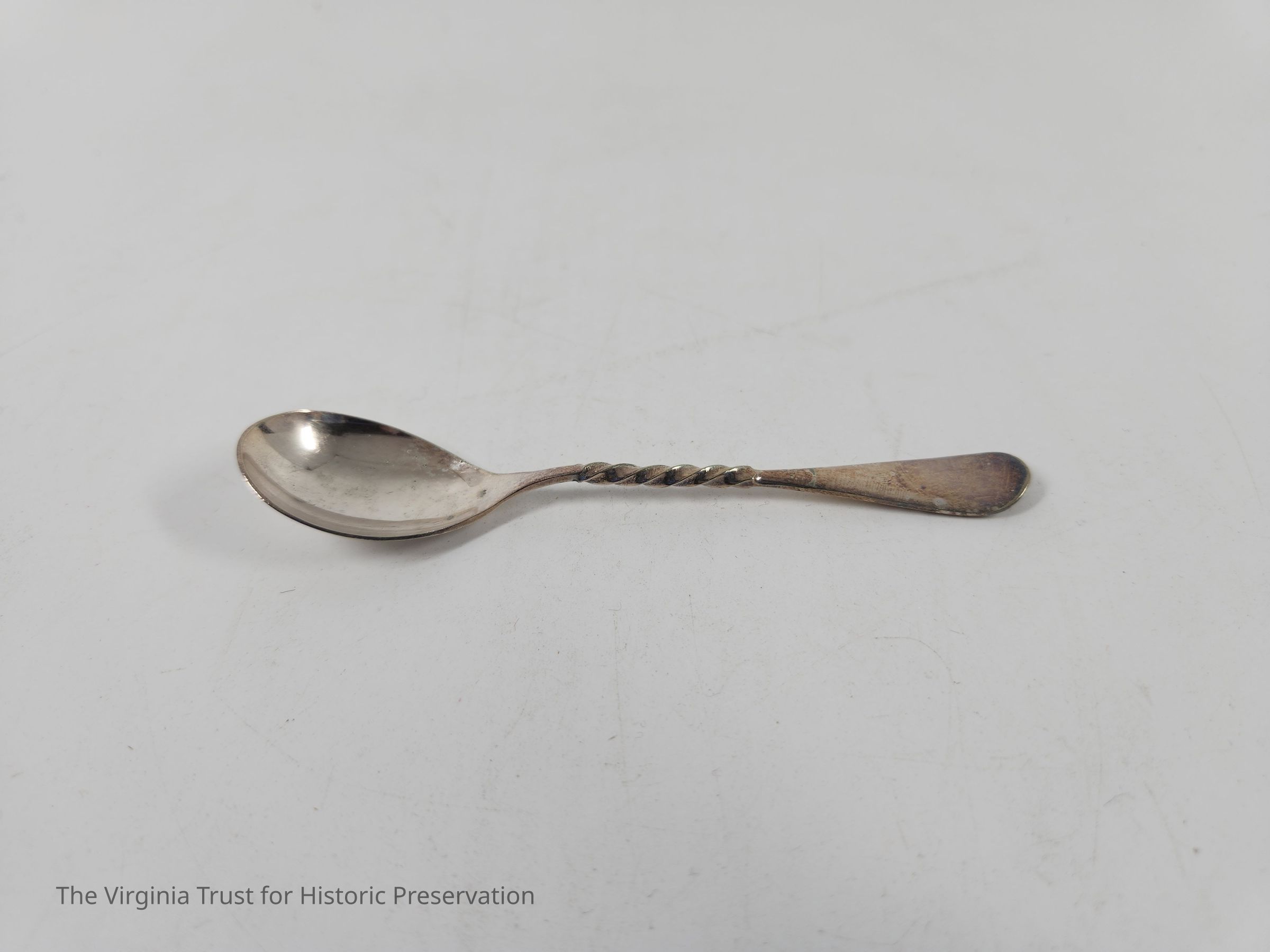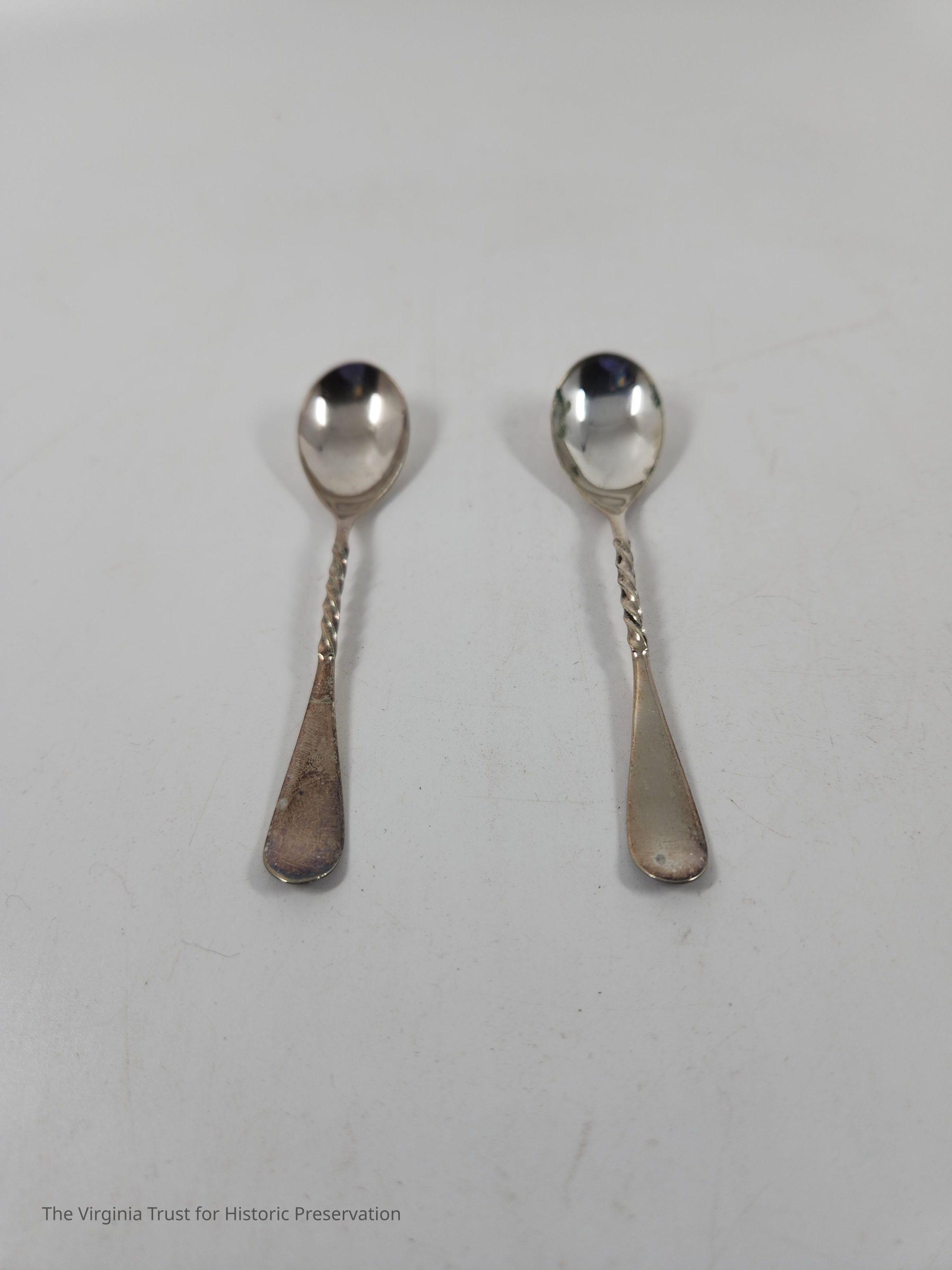 Part of a set of 2 coin silver demitasse spoons with half twisted handle ending in windsor style.