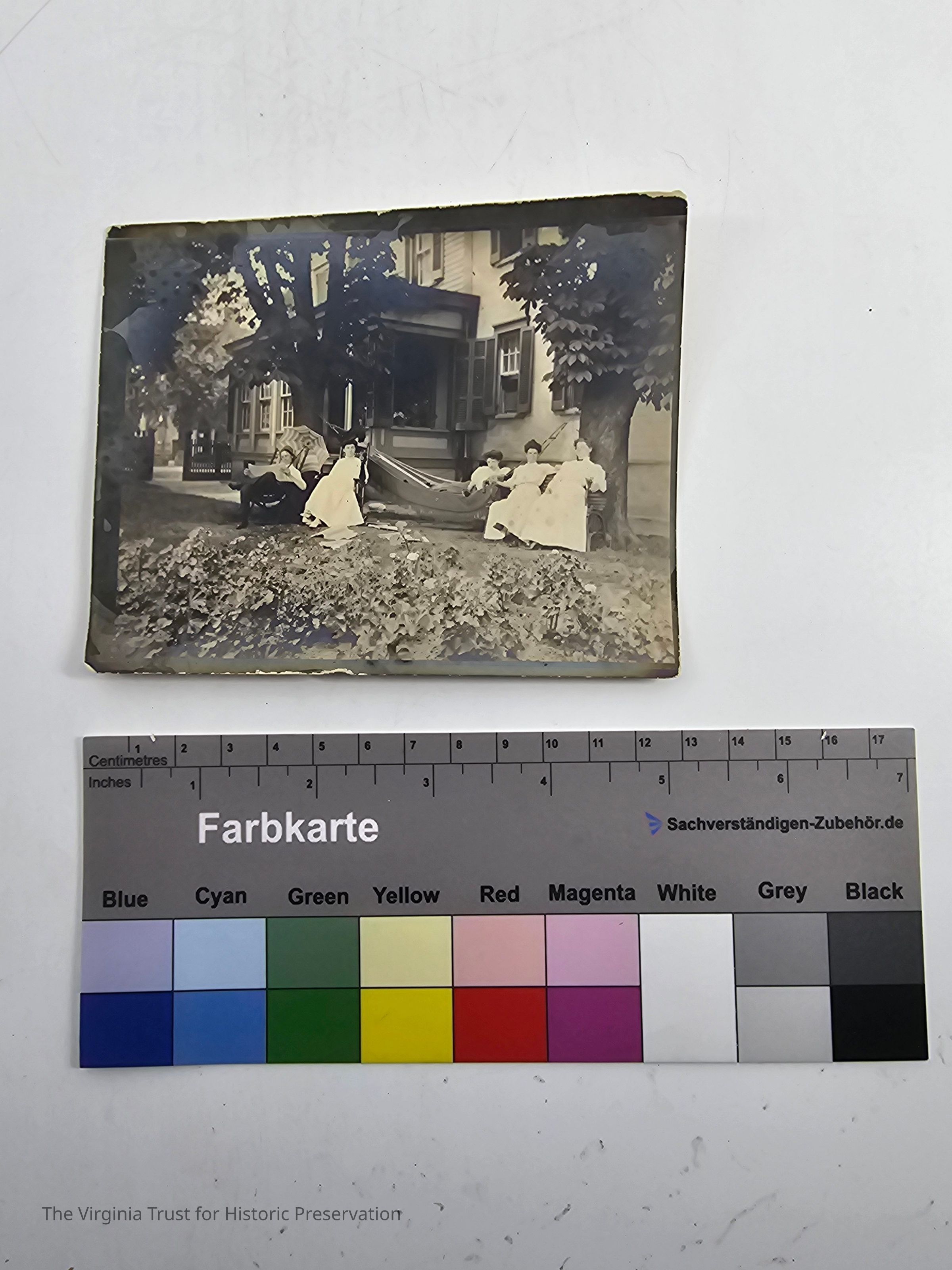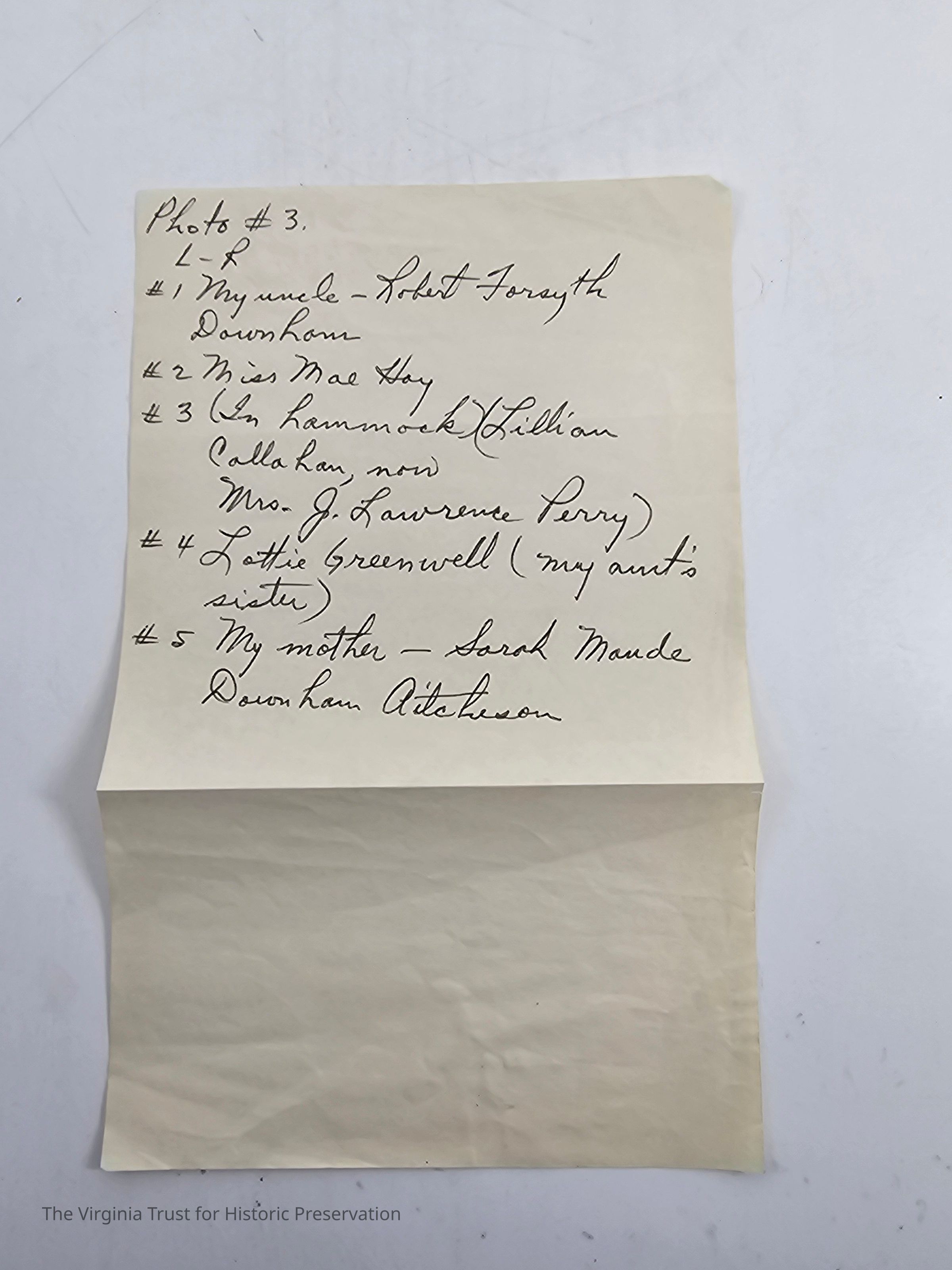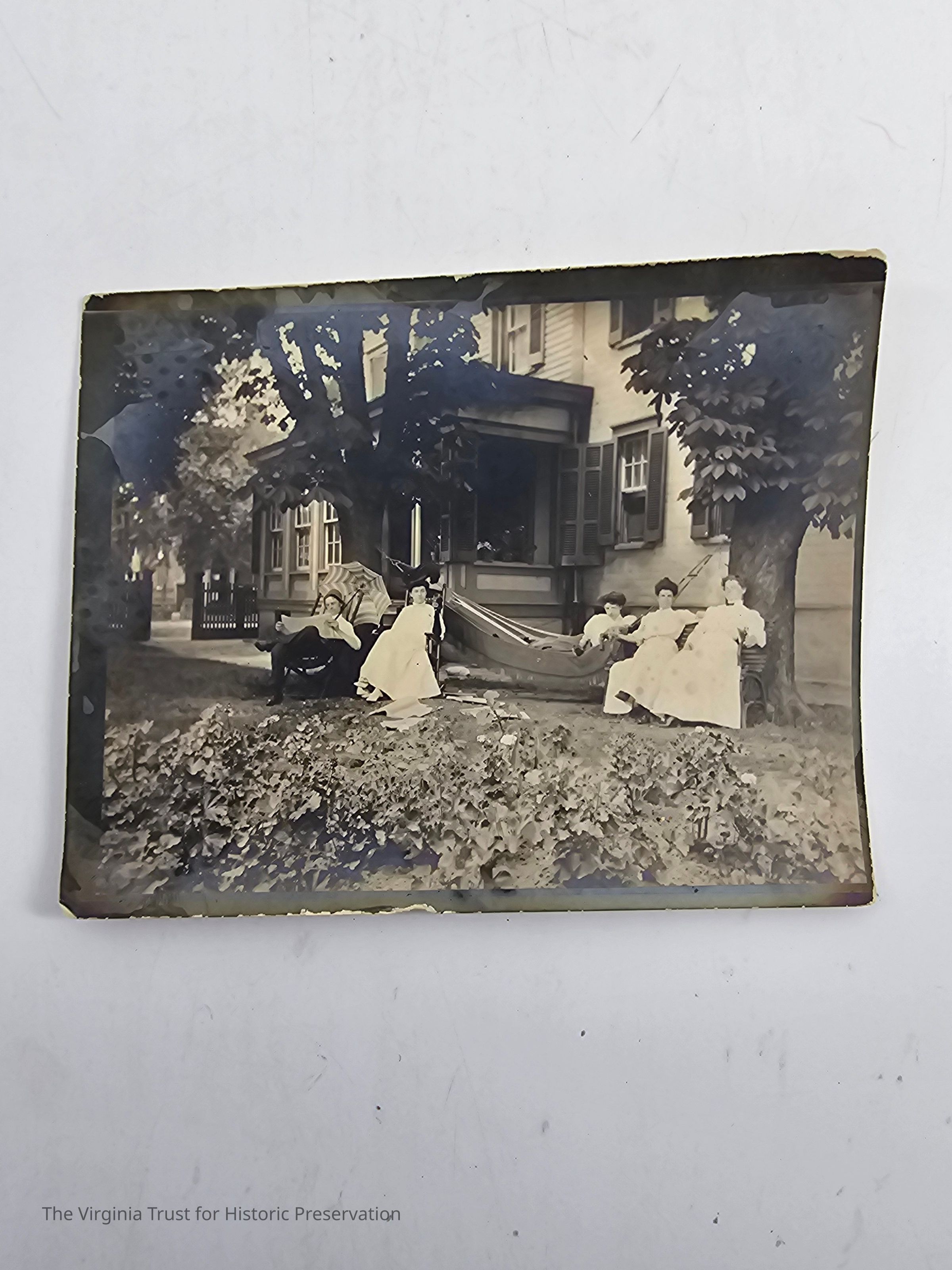 L-R: Robert Forsyth Downham, Miss May Hay (in hammock) Lillian Callahan (later Mrs. J. Lawrence Perry), Lottie Greenwell, Sarah Maude Downham Aitcheson on July 7, 1907. Negative.