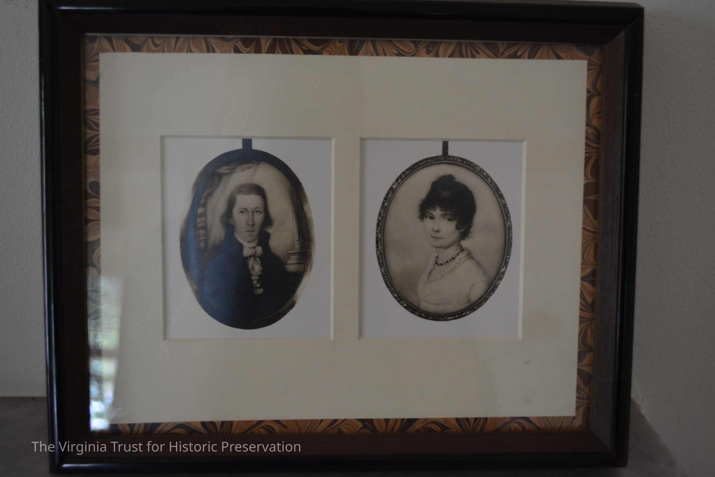 Two oval portraits of Edmund Jennings Lee and his wife Sarah Lee in one frame. Letter on a piece of paper glued to the back: