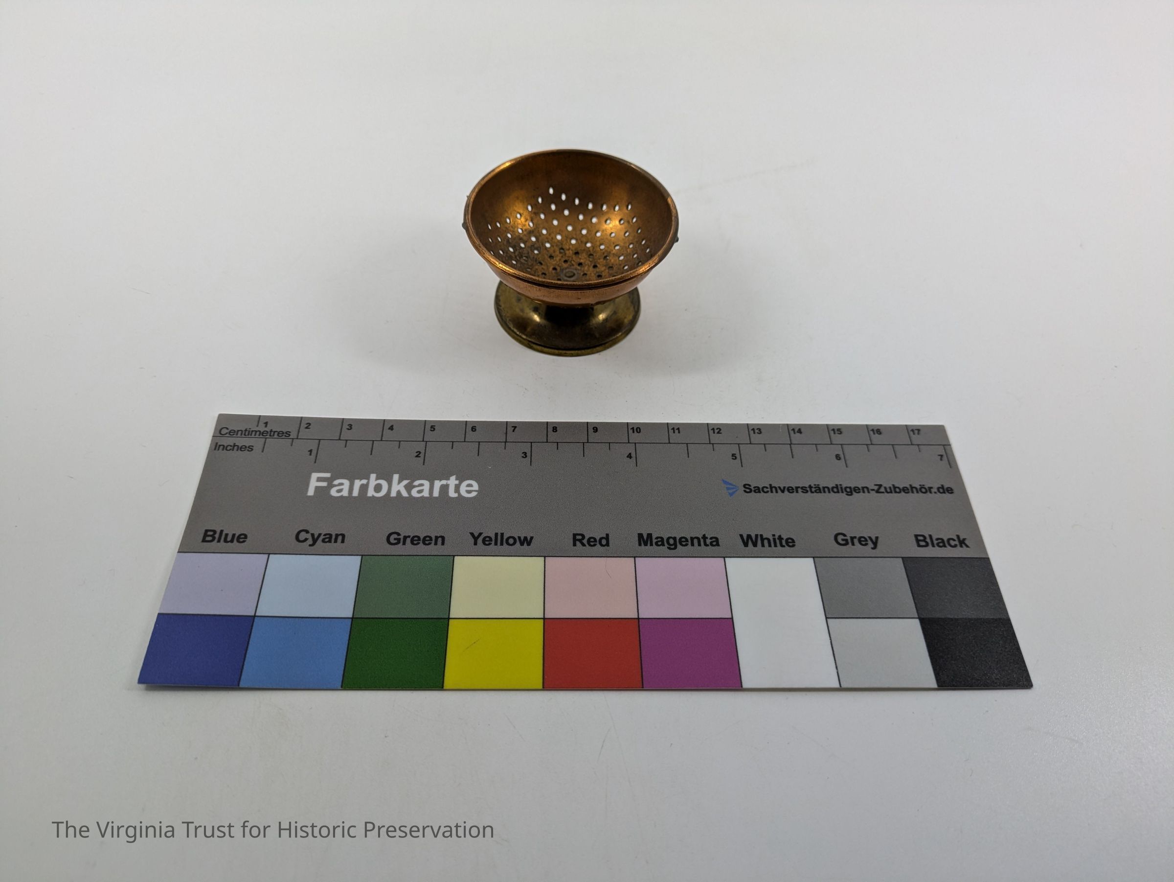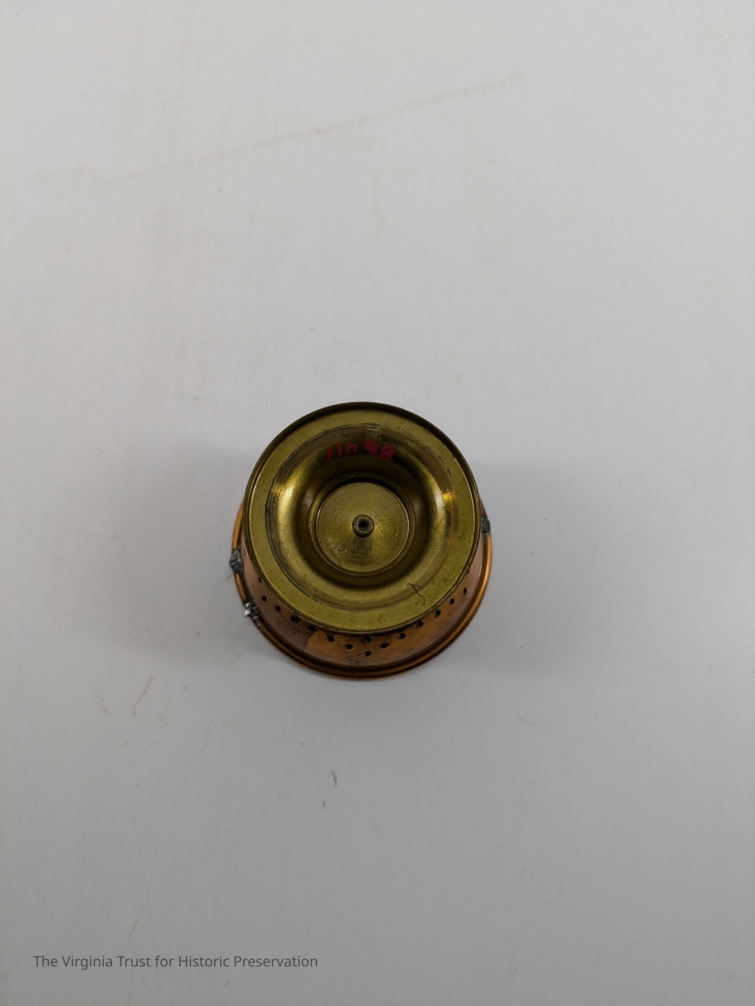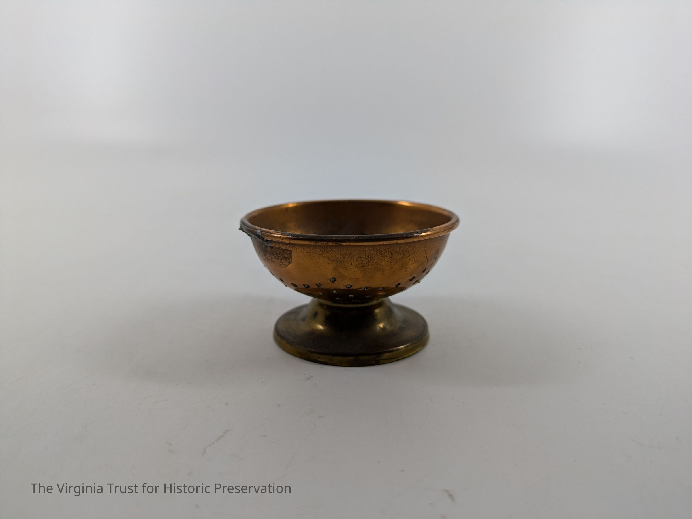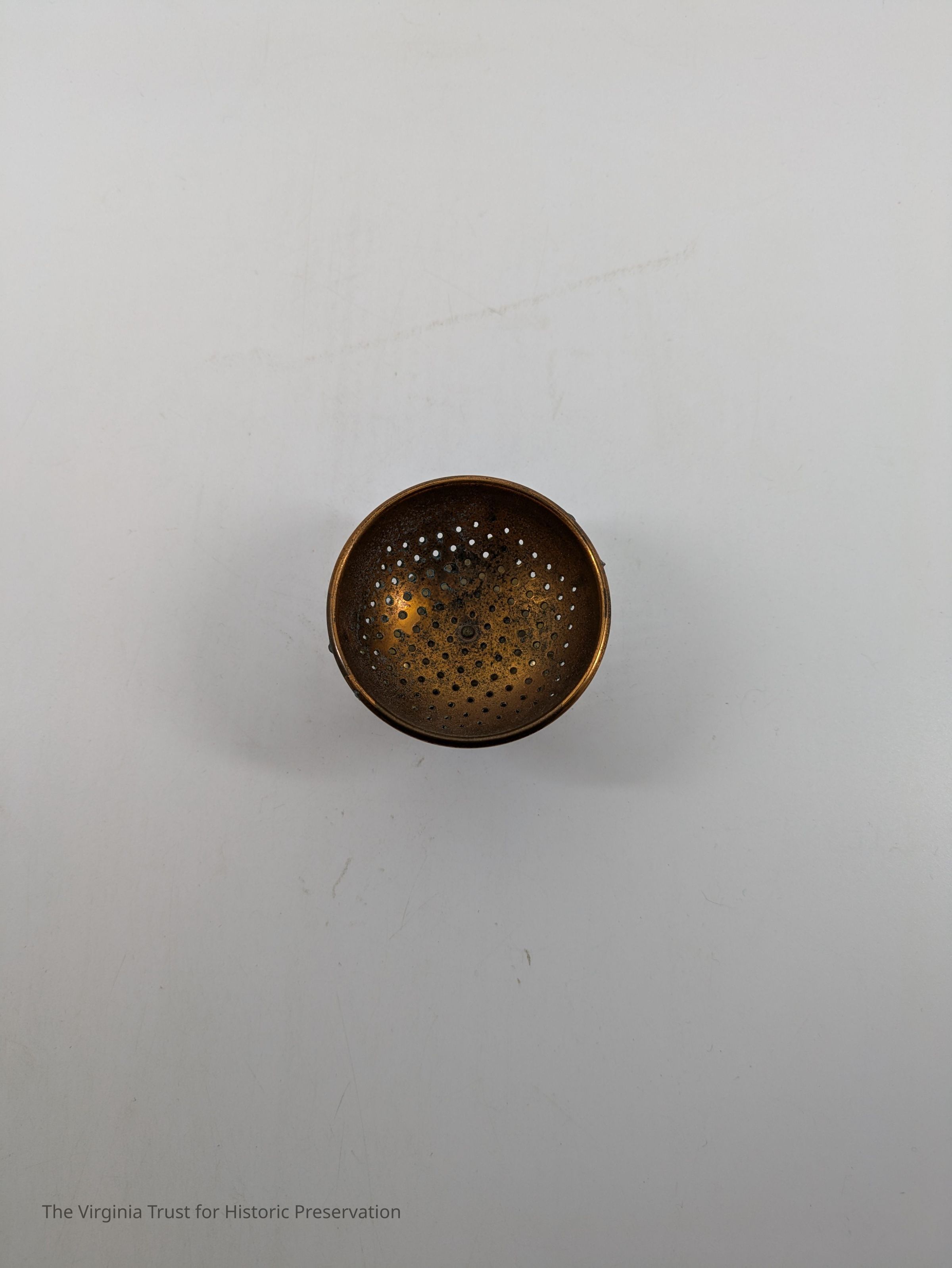 Miniature strainer with handles missing.