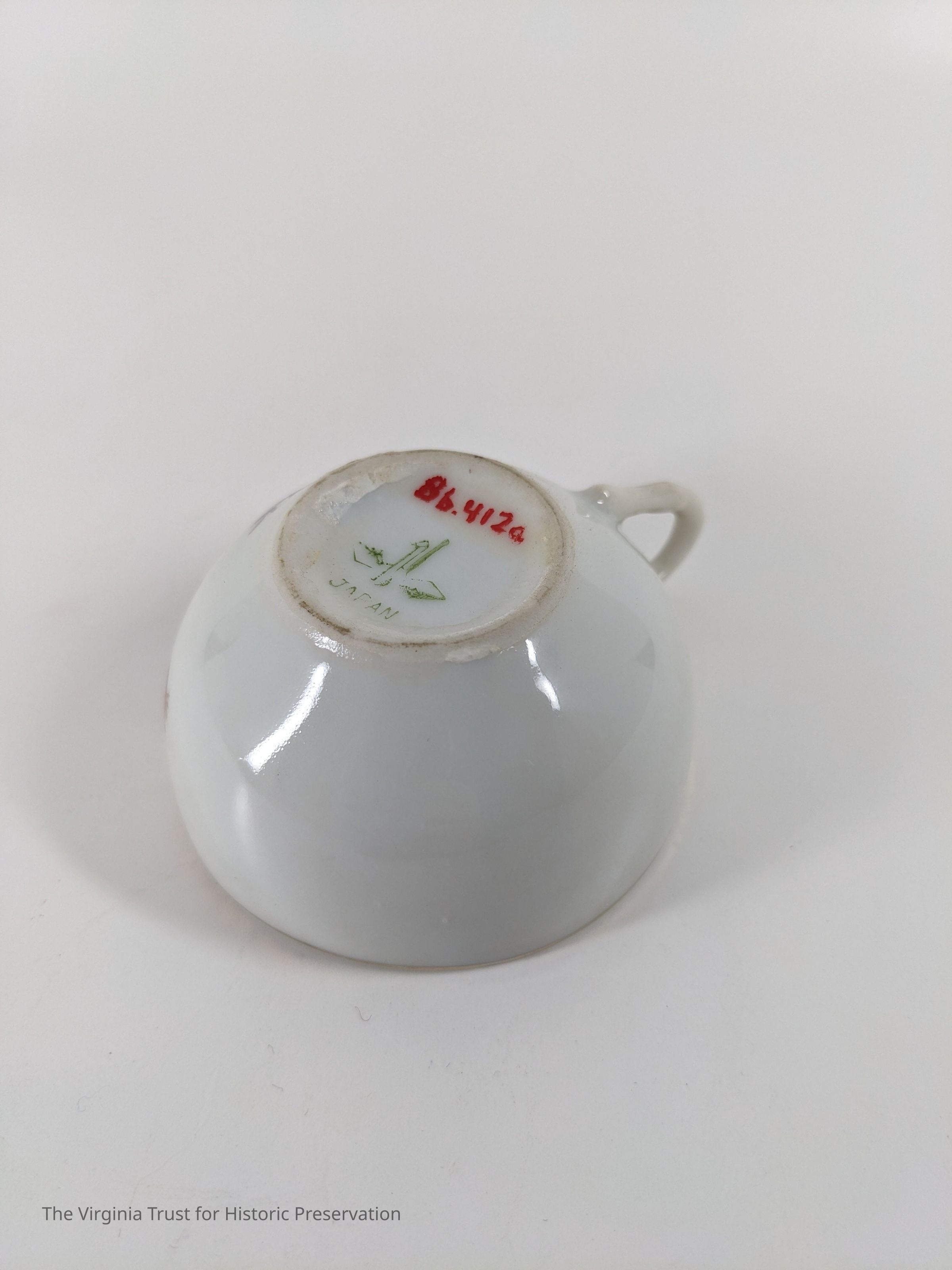Set of 6 teacups. White with rose design. Marked "Japan."