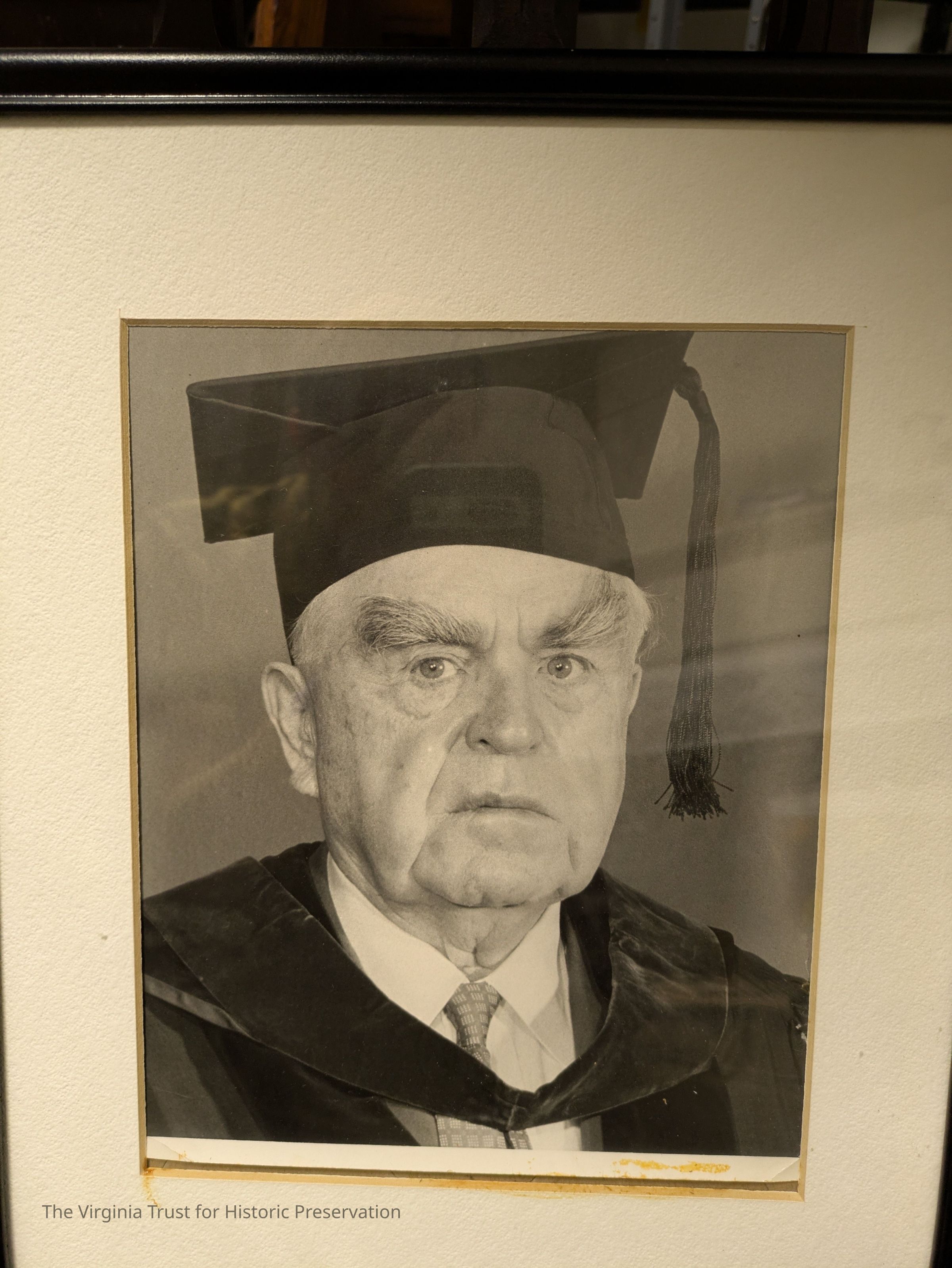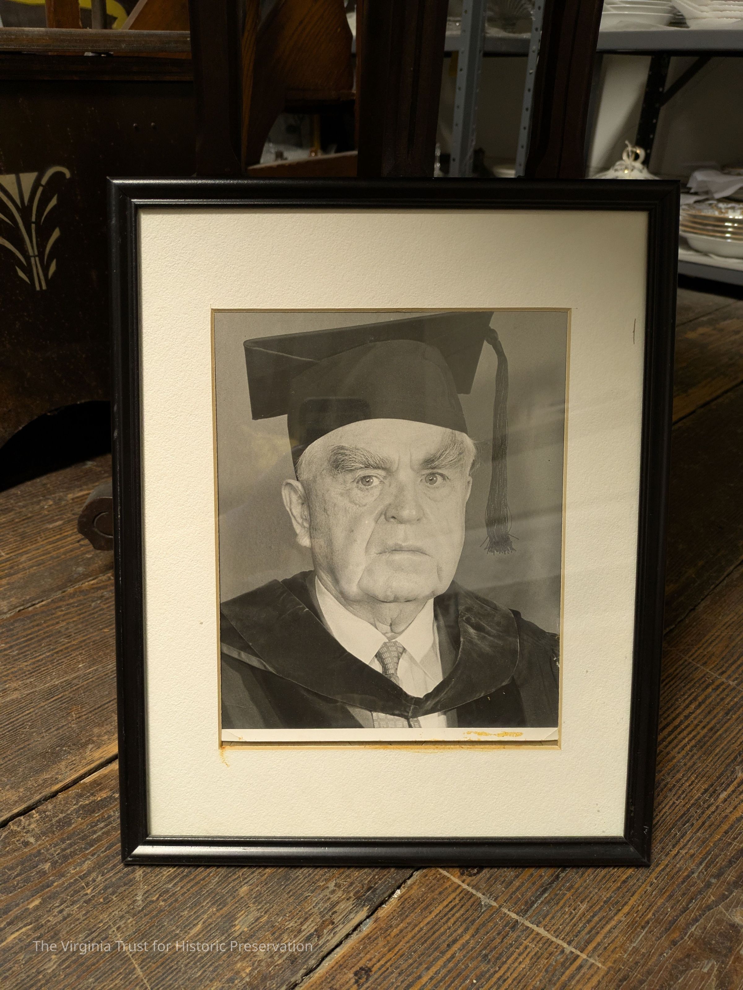 Framed picture of John L. Lewis in cap and gown. Taken at West Virginia University in 1957.