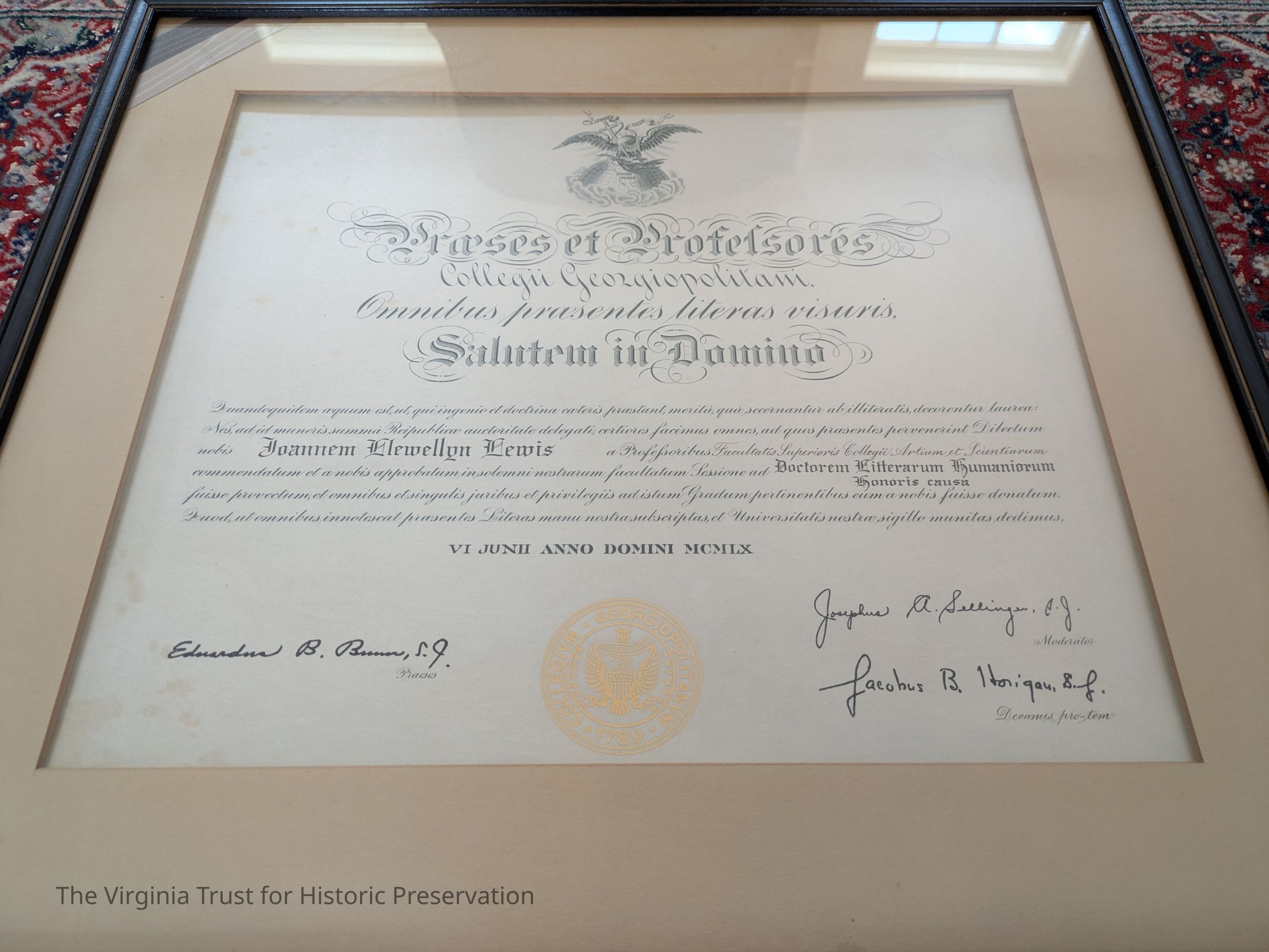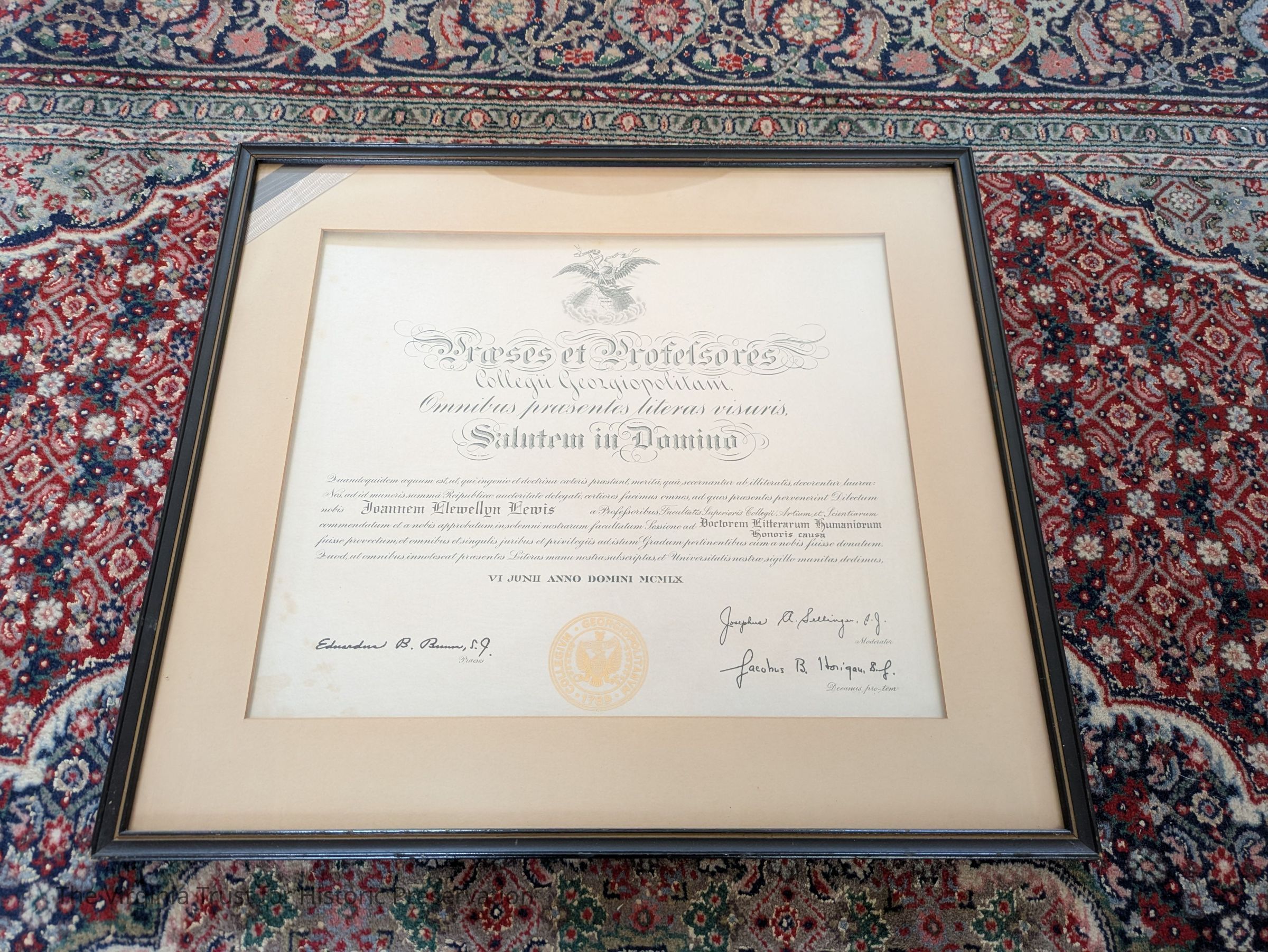 Framed degree, Doctor of Humane Letters, Honoris Causa. Given to John L. Lewis from Georgetown University, June 1960.