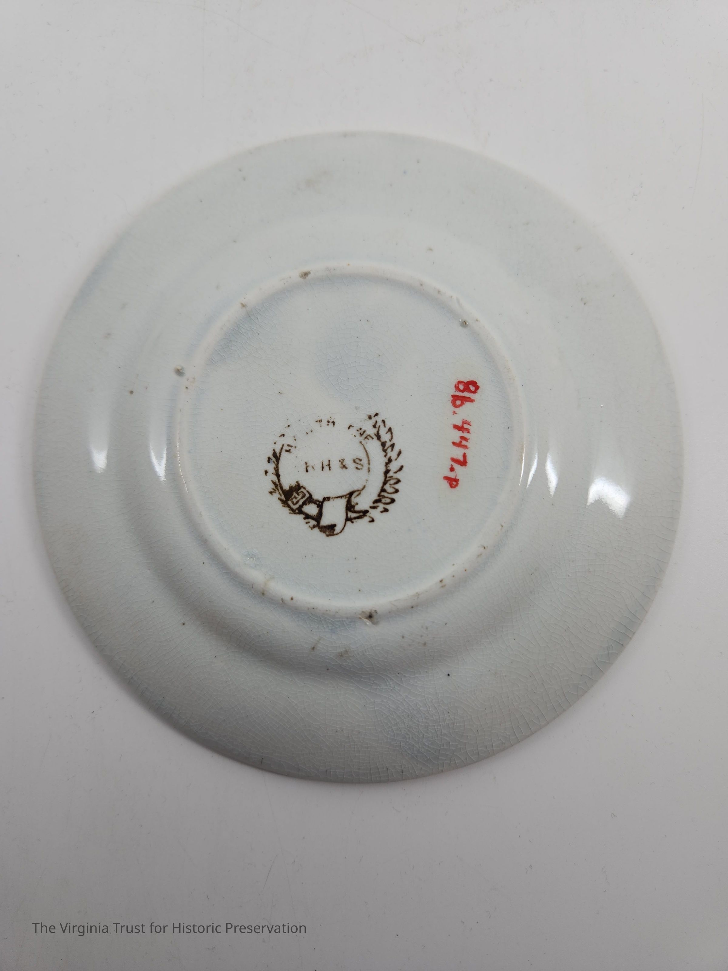 Small plate marked "Hawthorne RH & S." White with brown floral design.