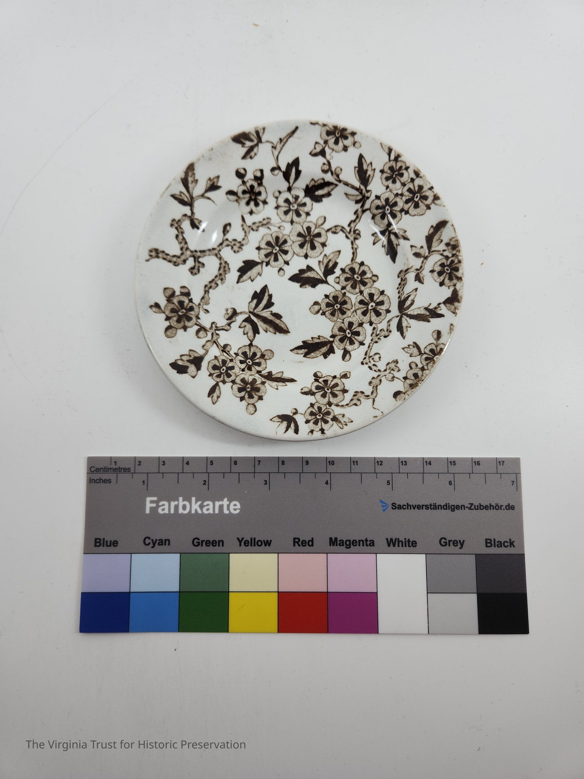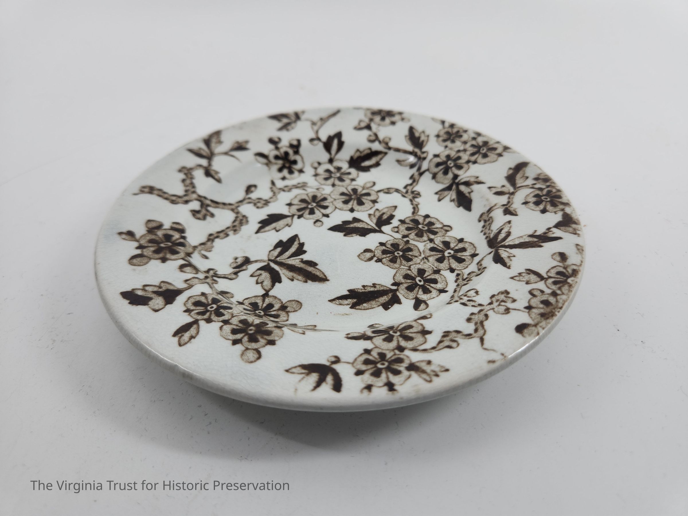 White ceramic plate with brown floral design