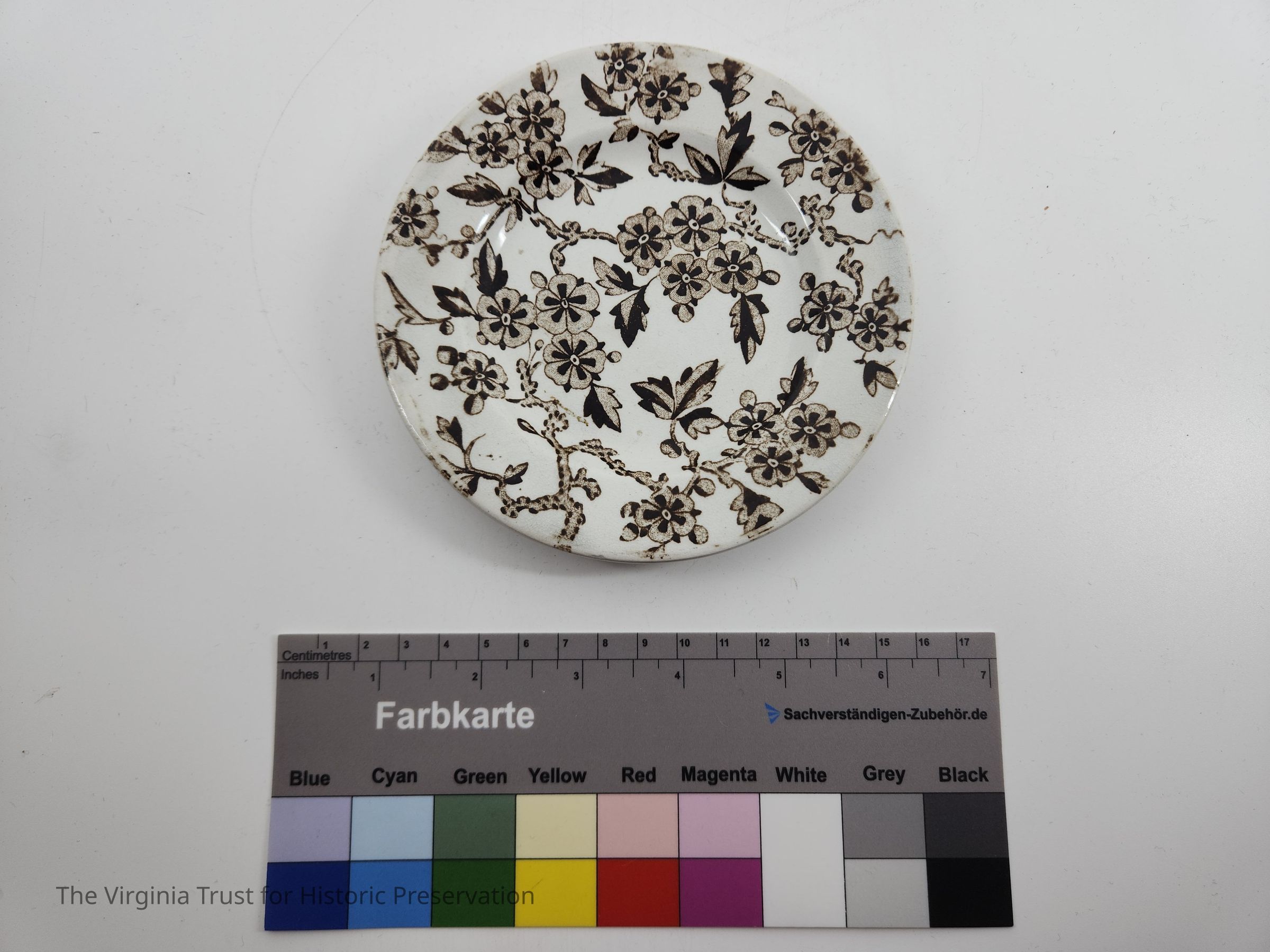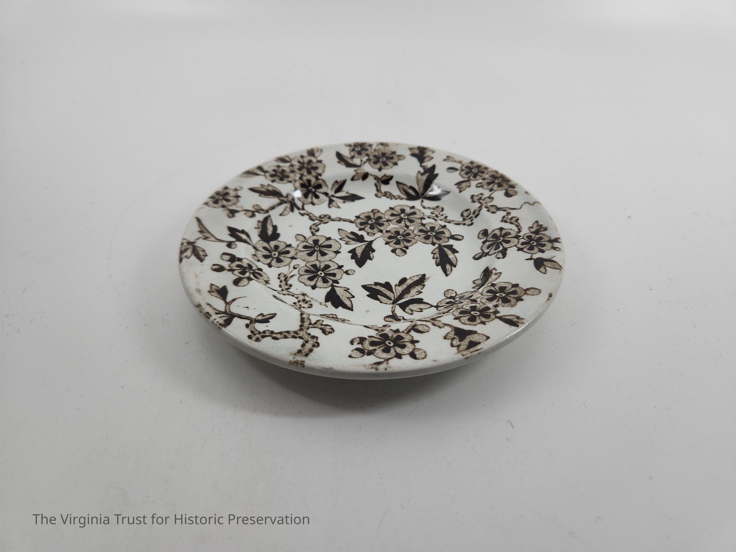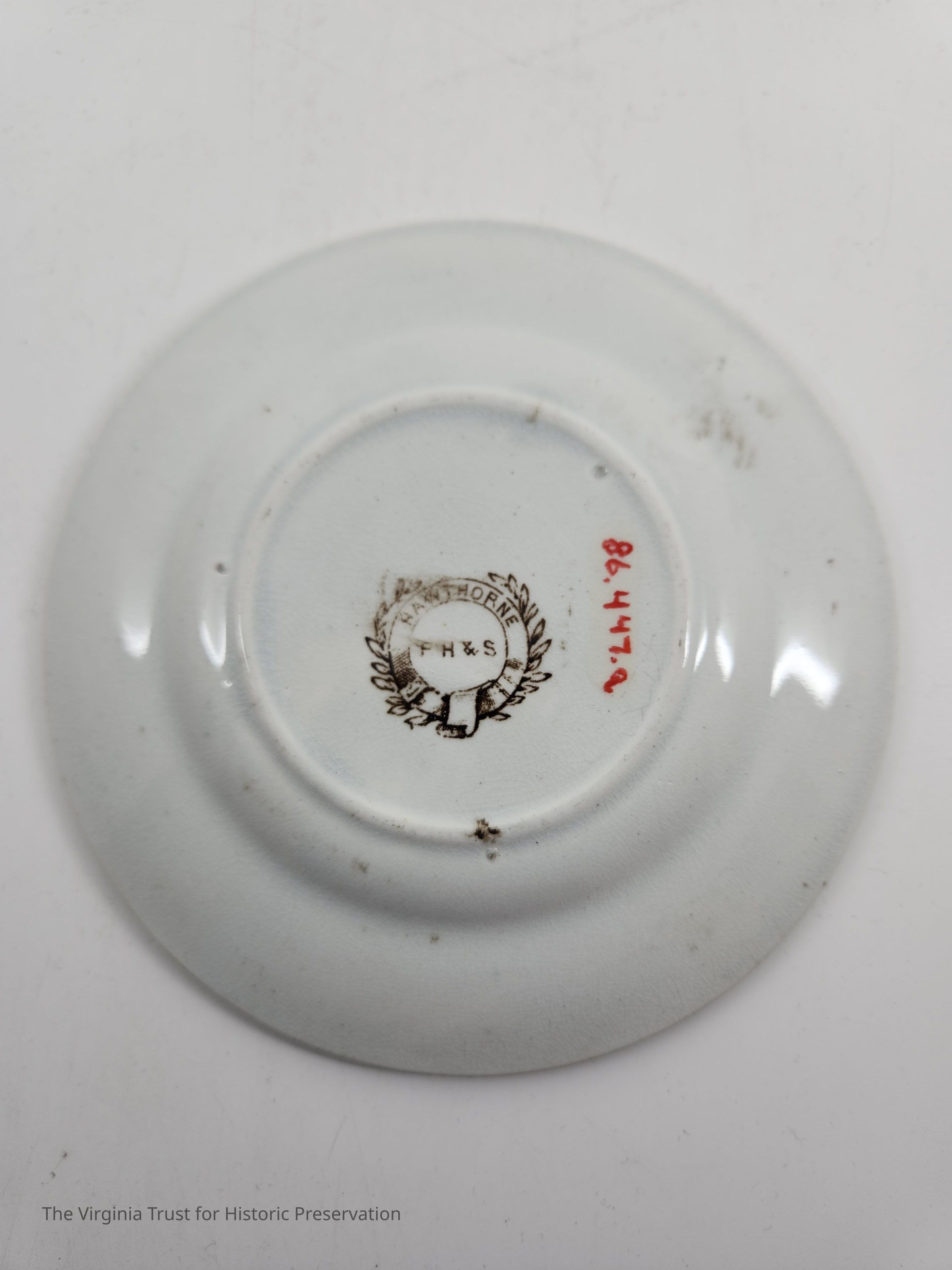 Small plate marked "Hawthorne RH & S." White with brown floral design.