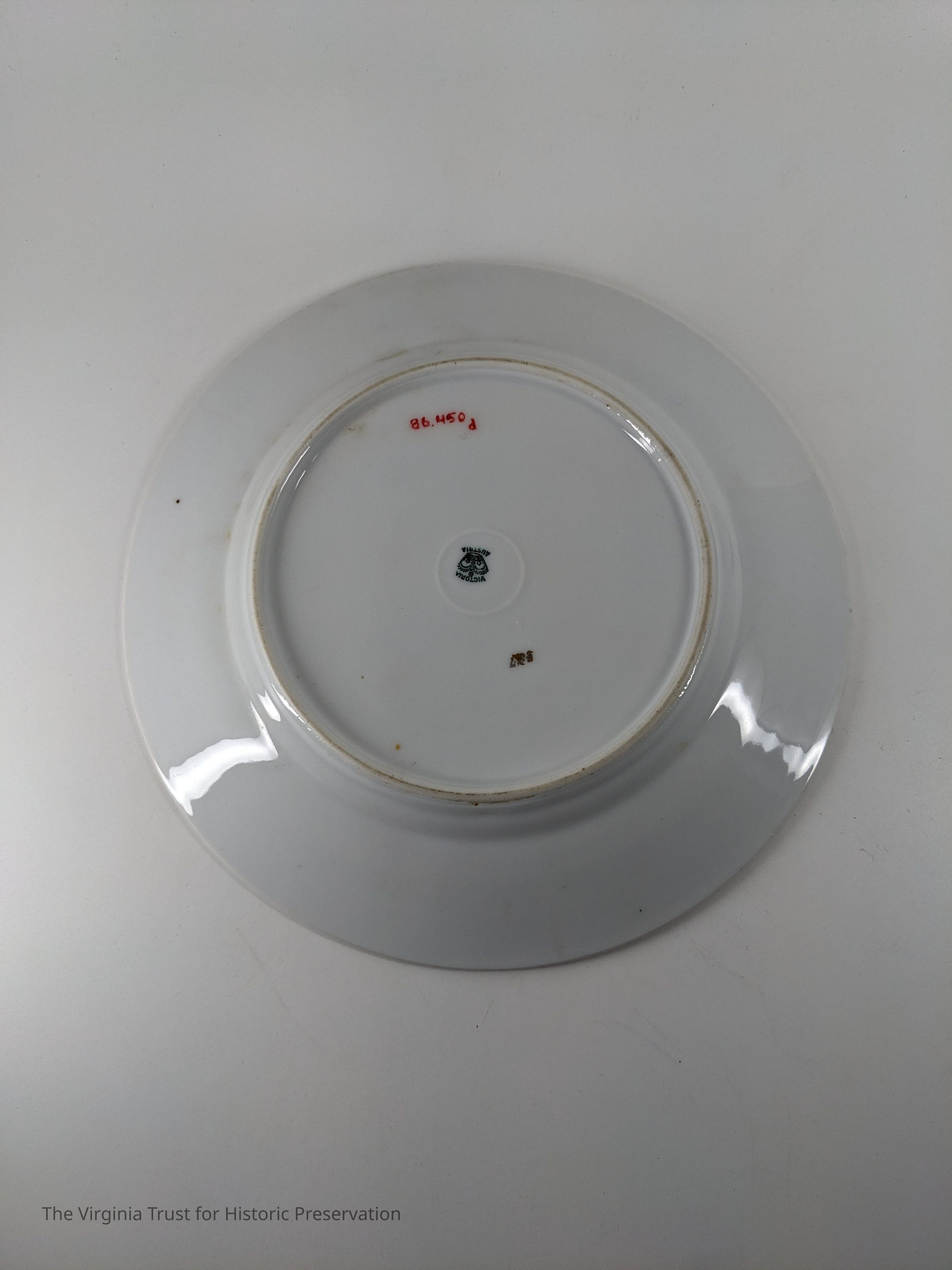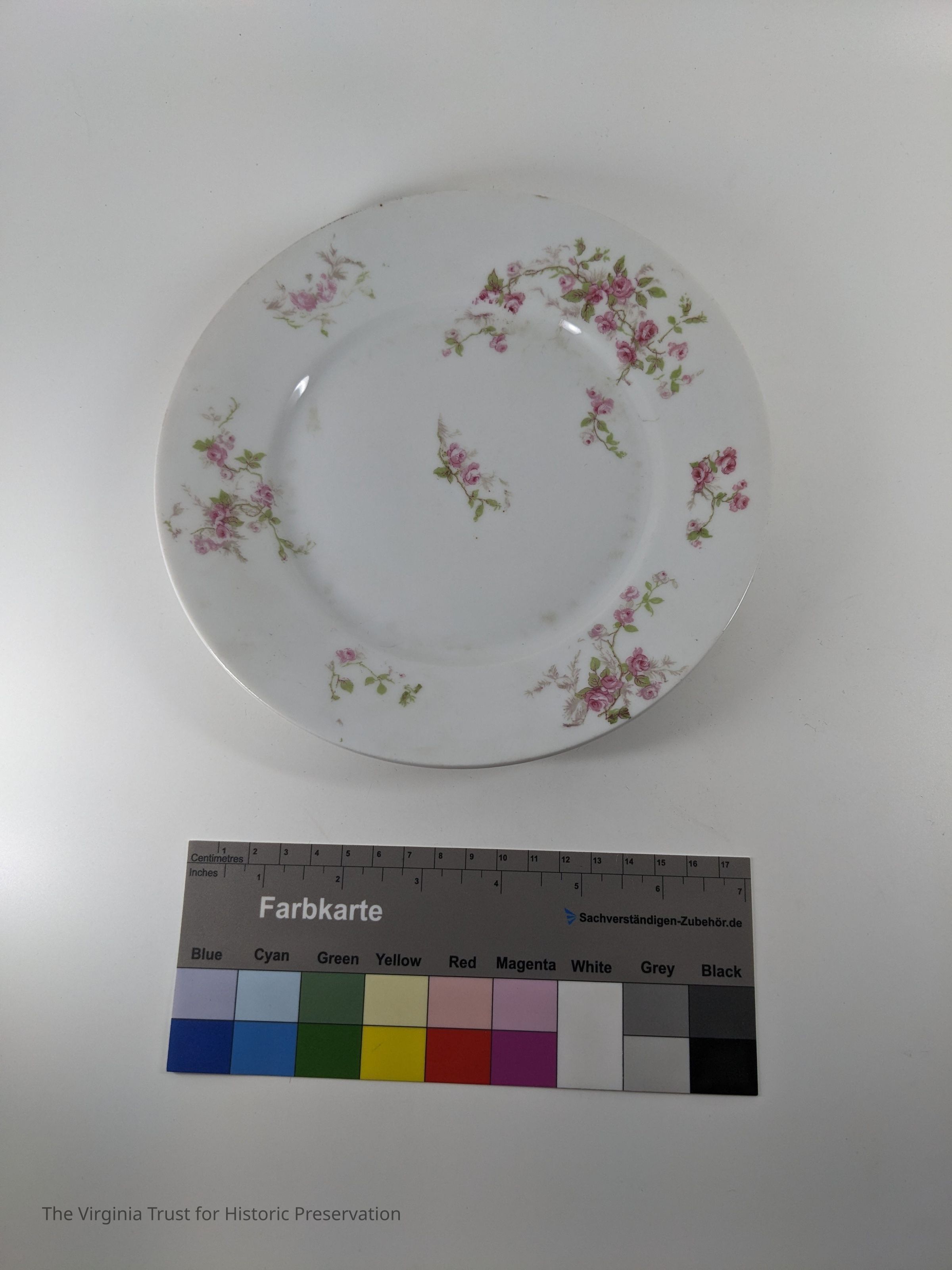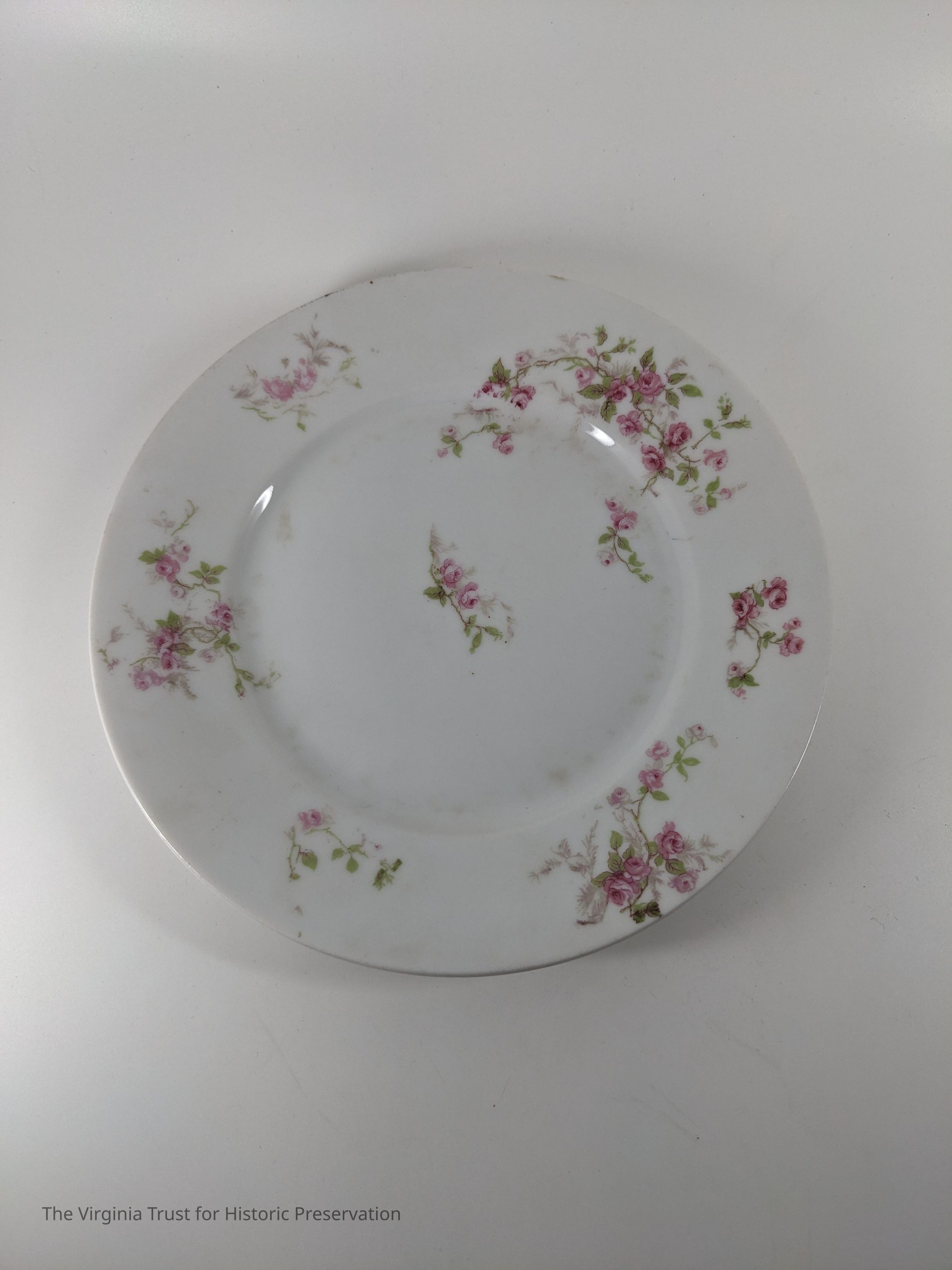 White salad plate with pink rose design. Marked "Victoria Austria."