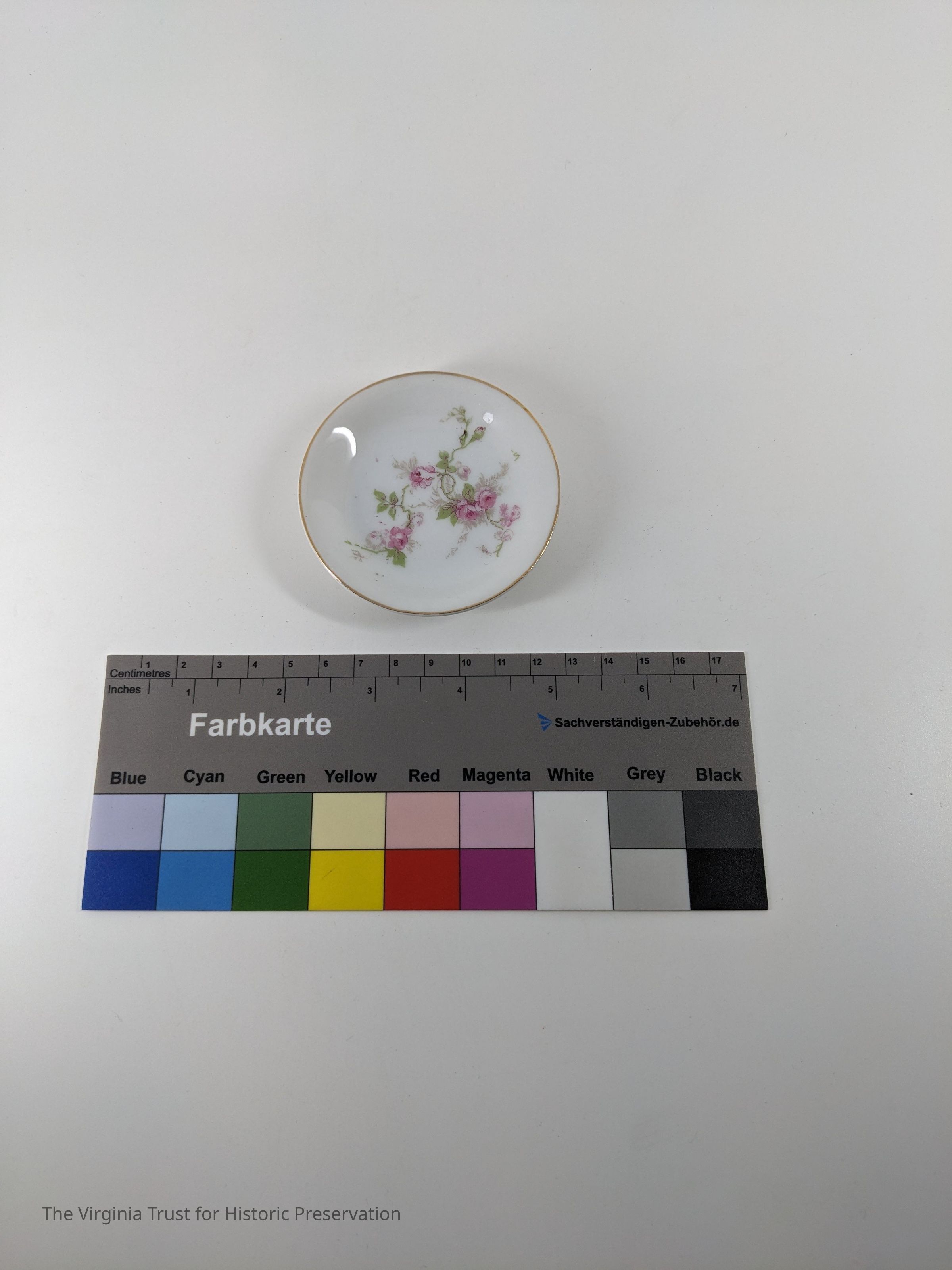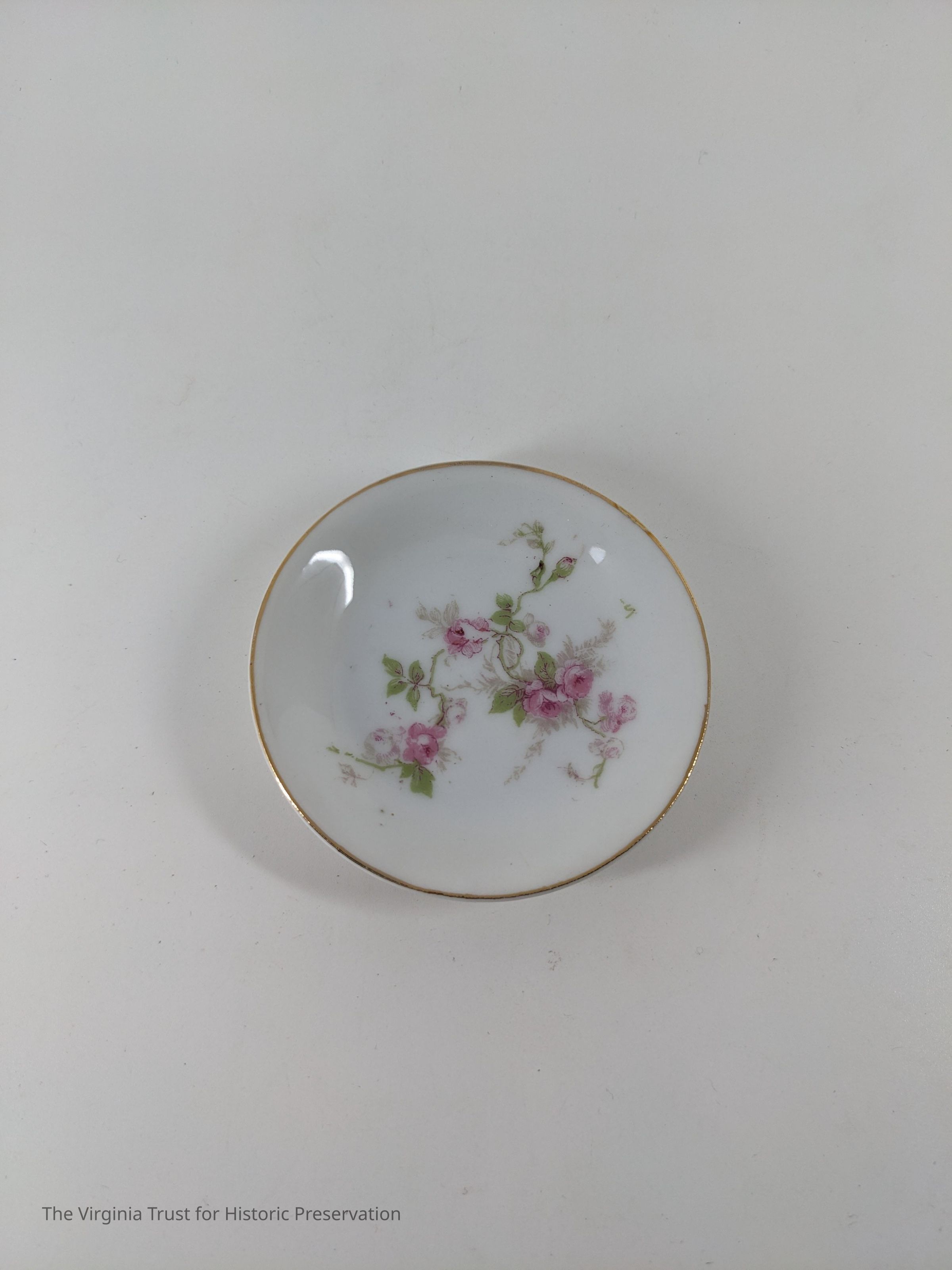 Small saucer with pink rose design. Marked "Victoria Austria."