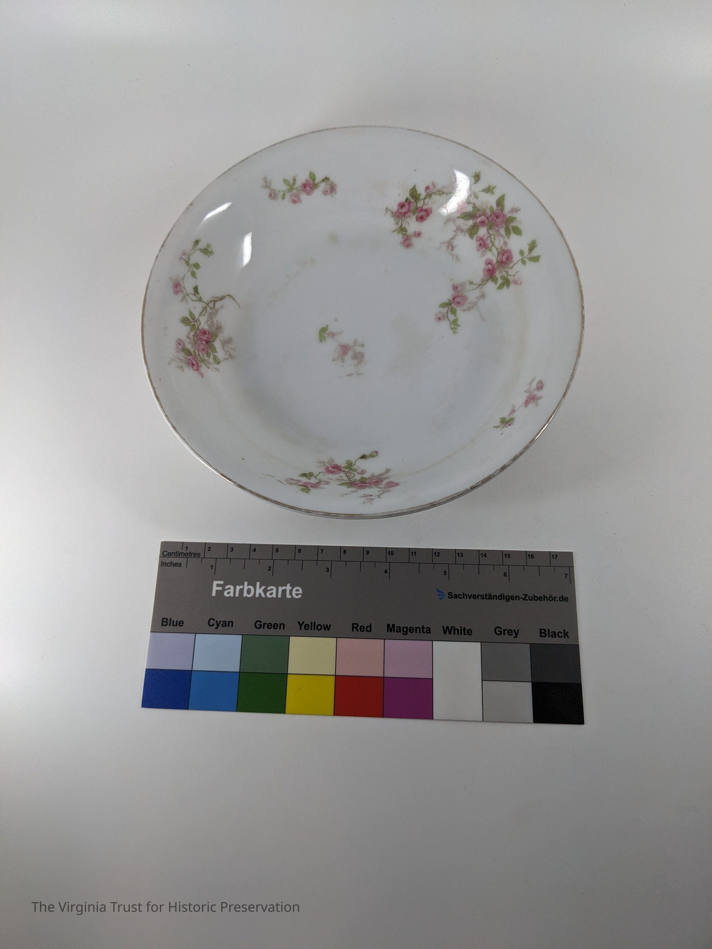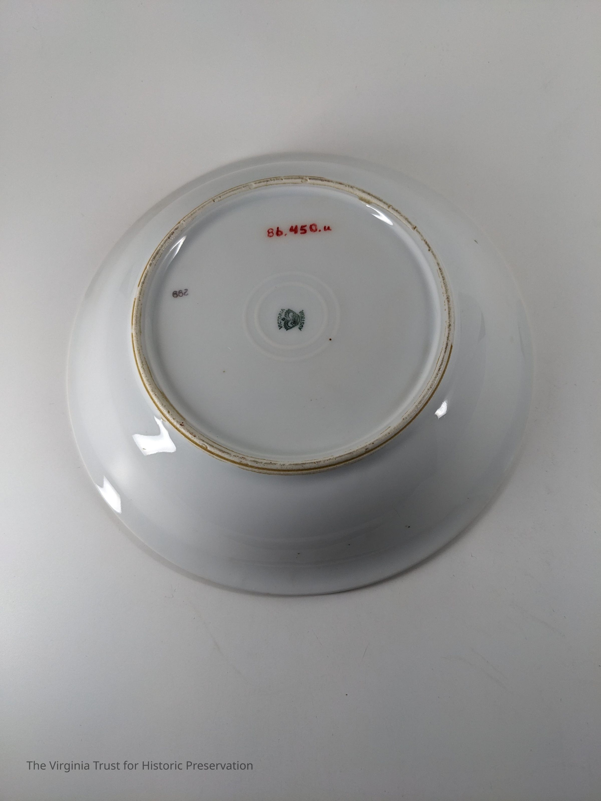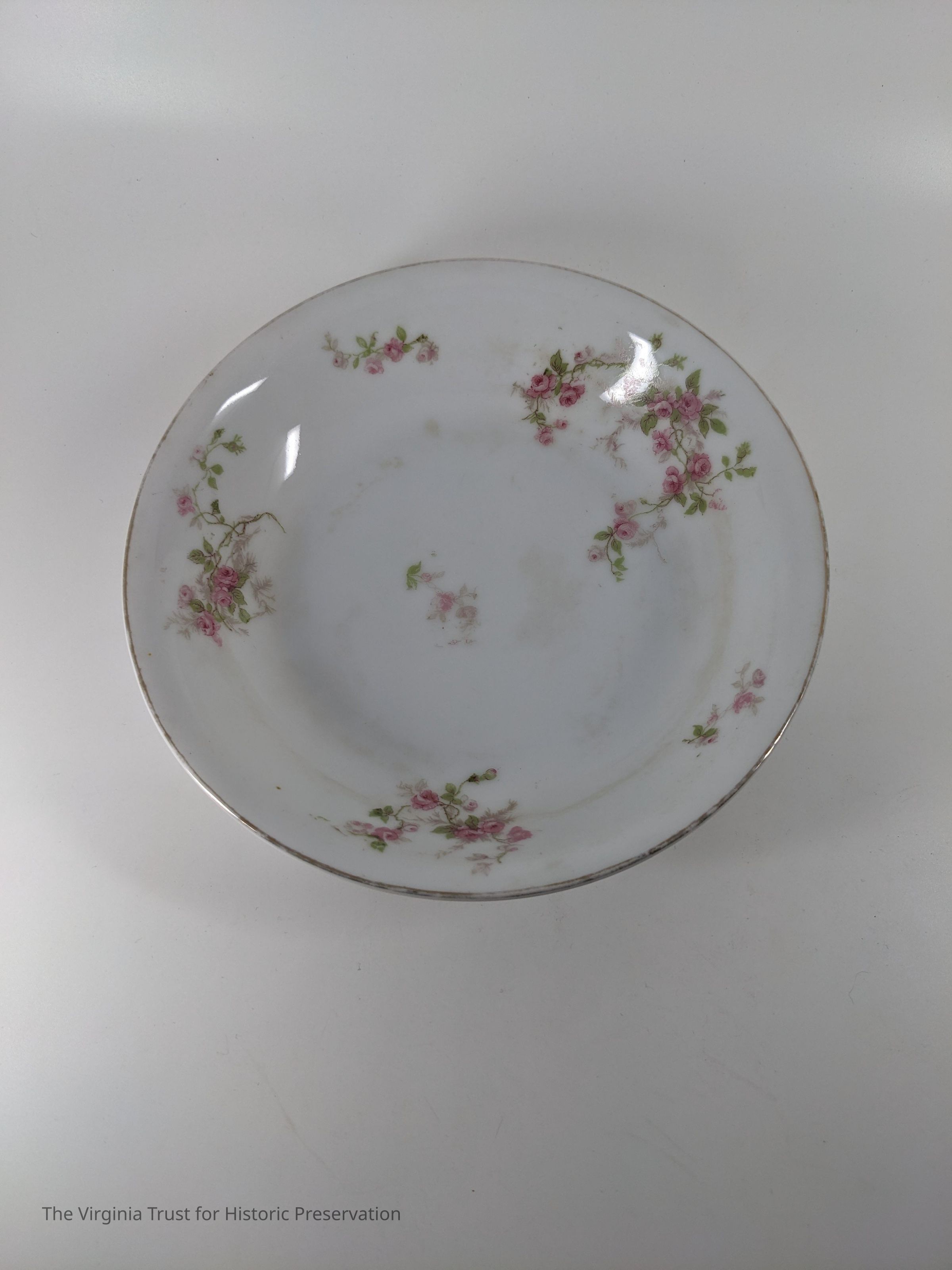 Soup bowl with pink rose design. Marked "Victoria Austria."