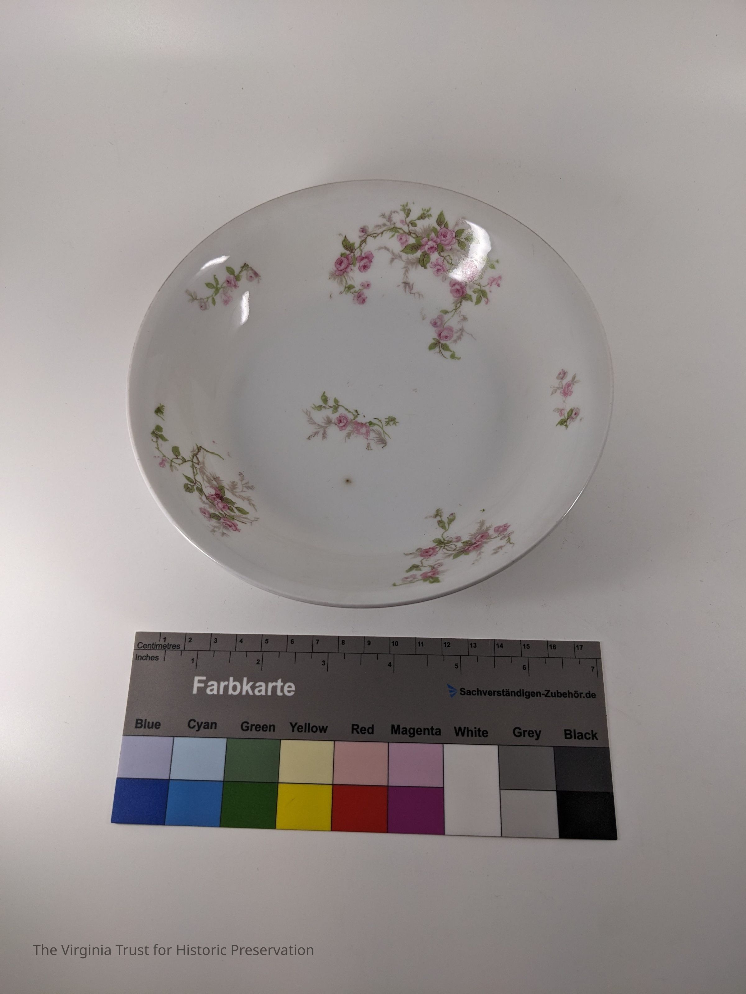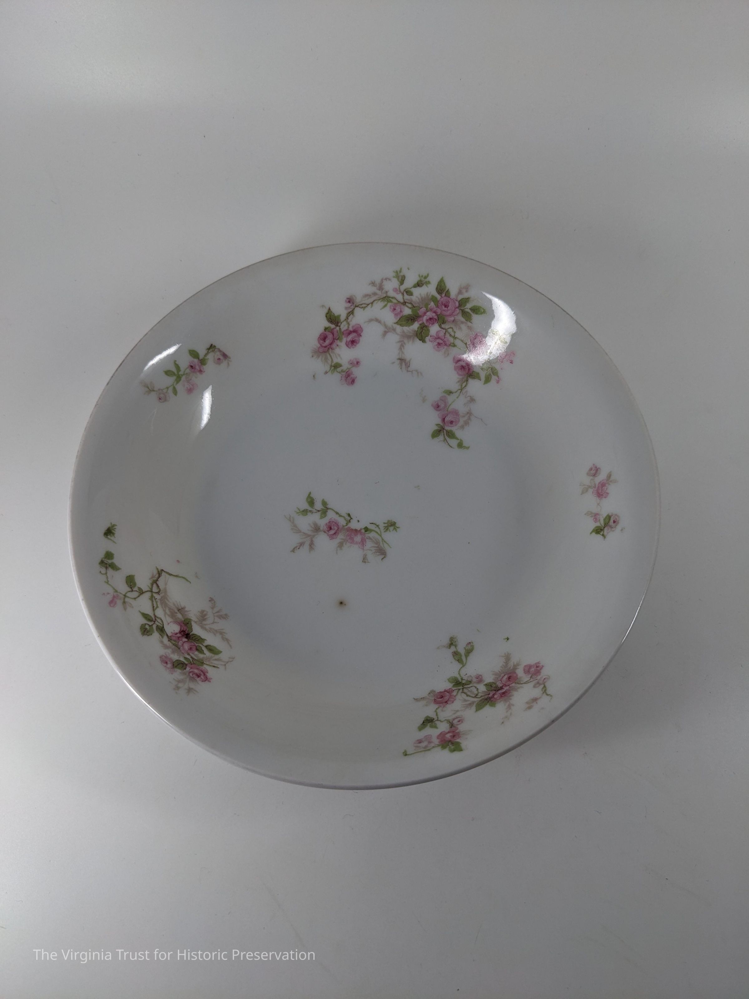Soup bowl with pink rose design. Marked "Victoria Austria."