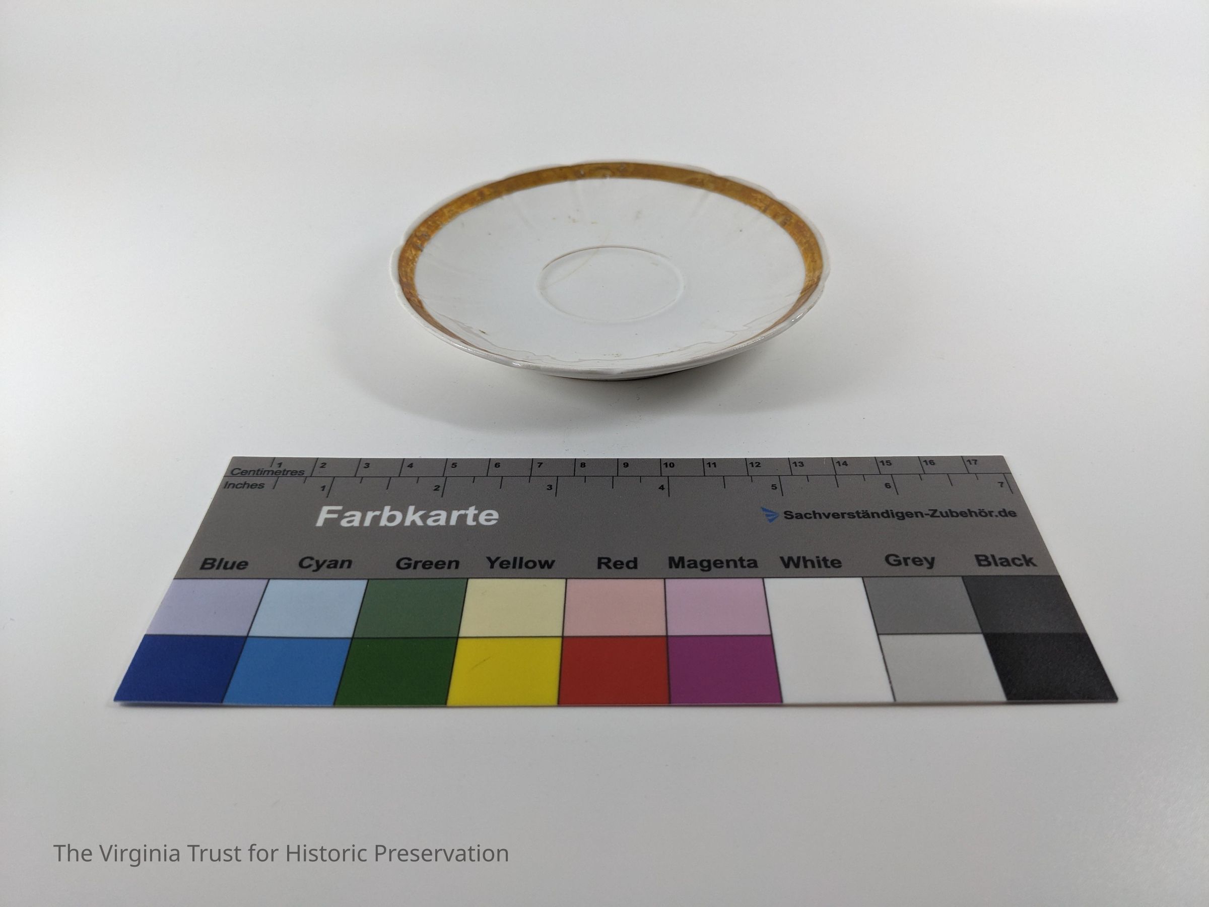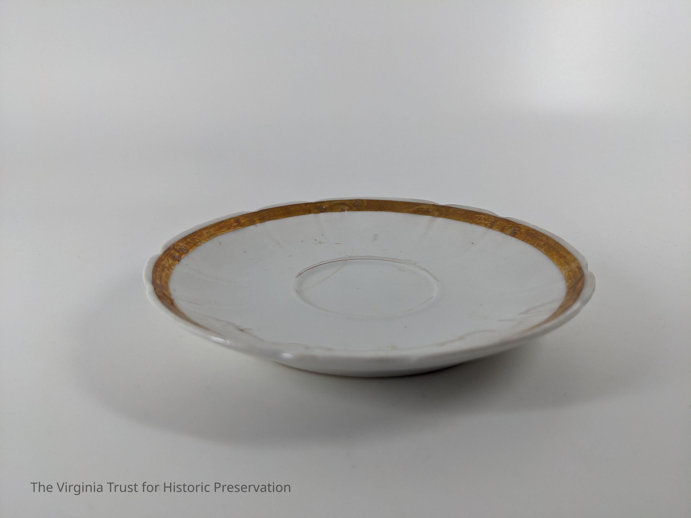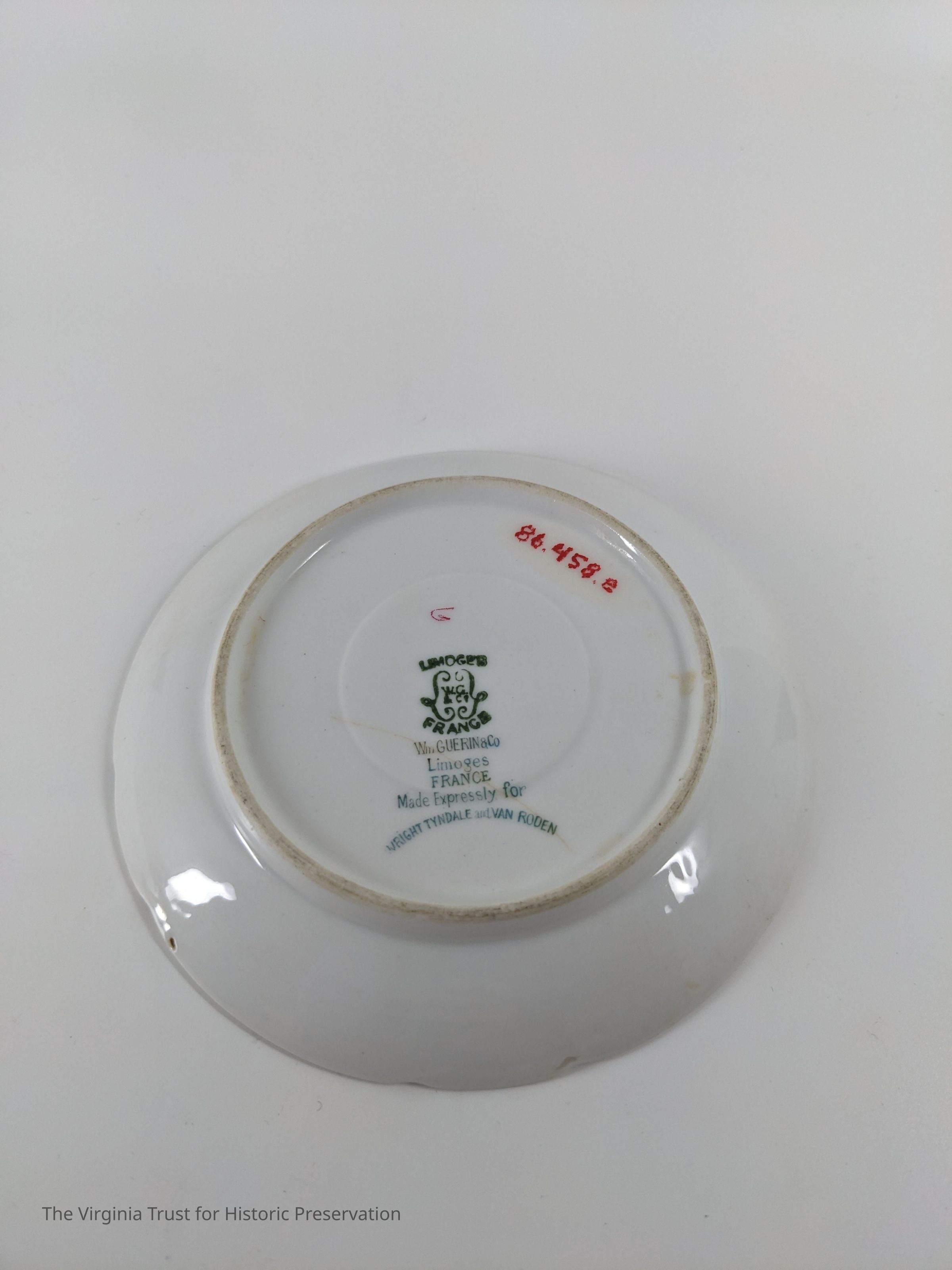 Set of eight porcelain china saucers. Marked on back: "Limoges, France WM Guerin & Co Limoges, France Made Expressly for Wright, Tyndale and Van Roden."
