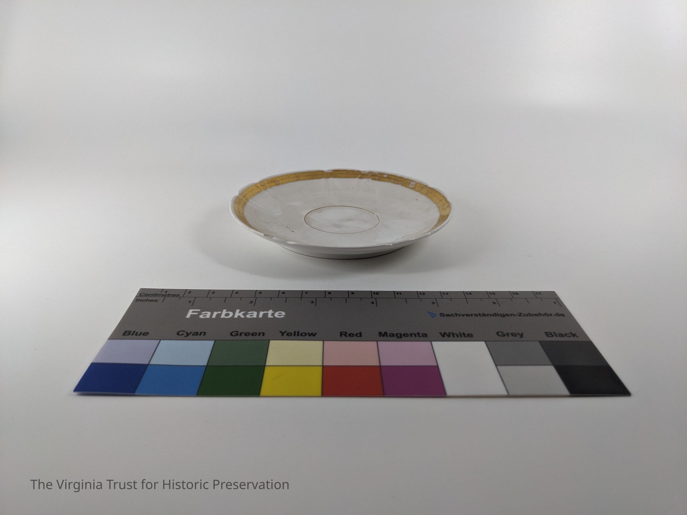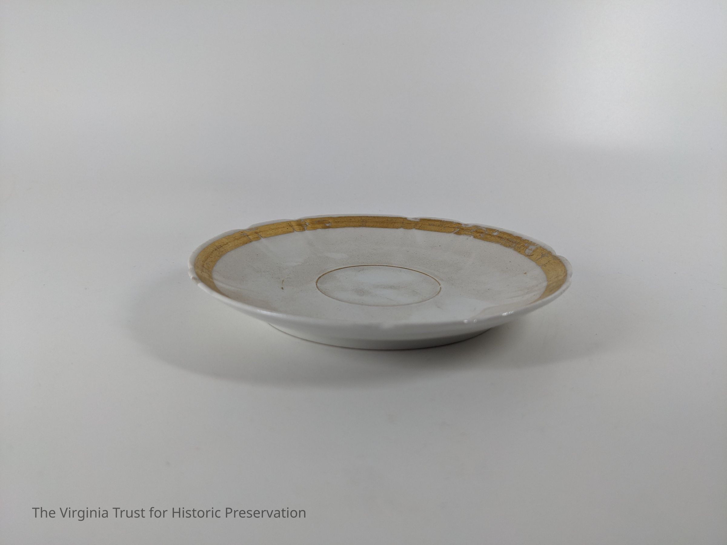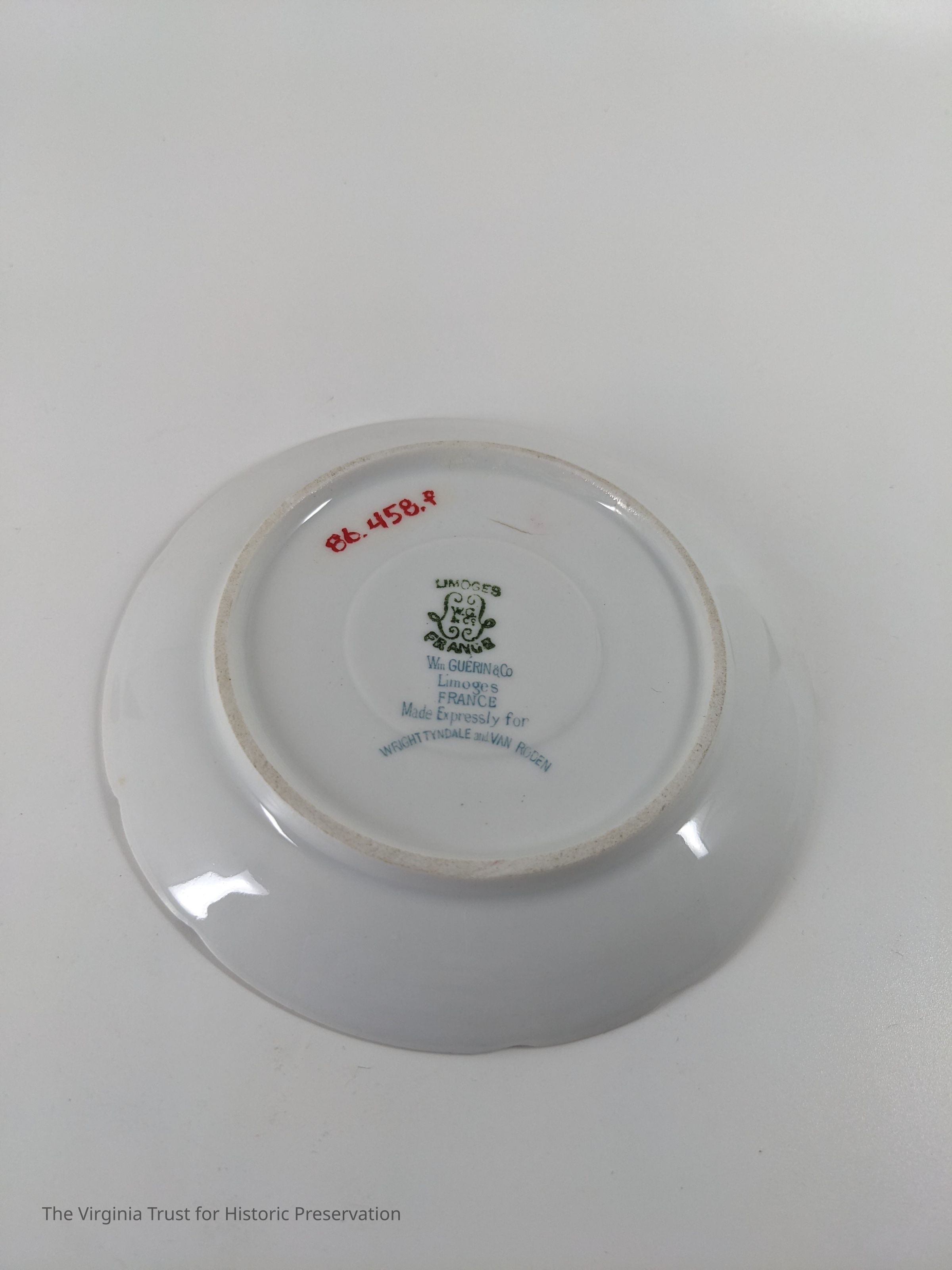 Set of eight porcelain china saucers. Marked on back: "Limoges, France WM Guerin & Co Limoges, France Made Expressly for Wright, Tyndale and Van Roden."
