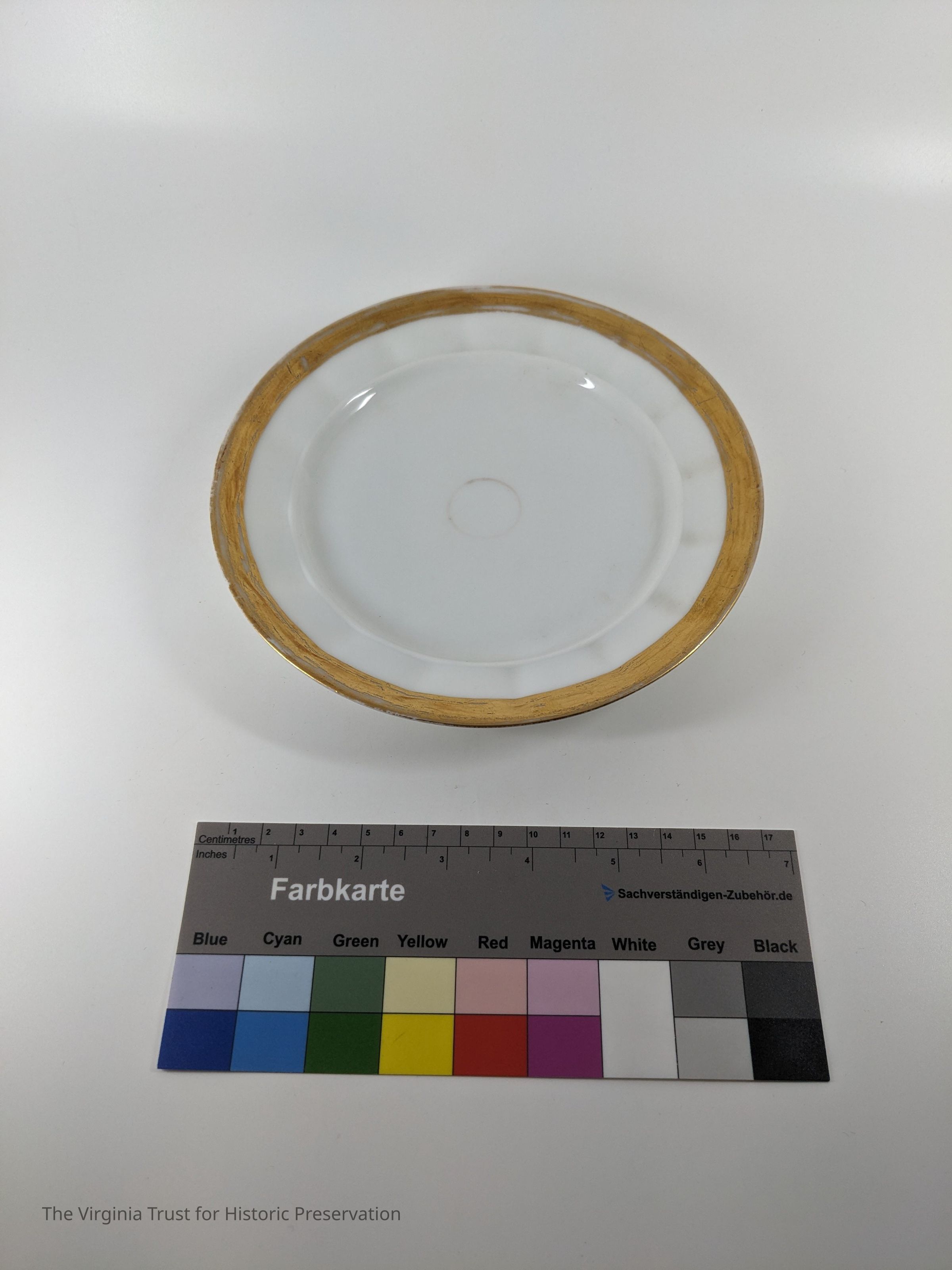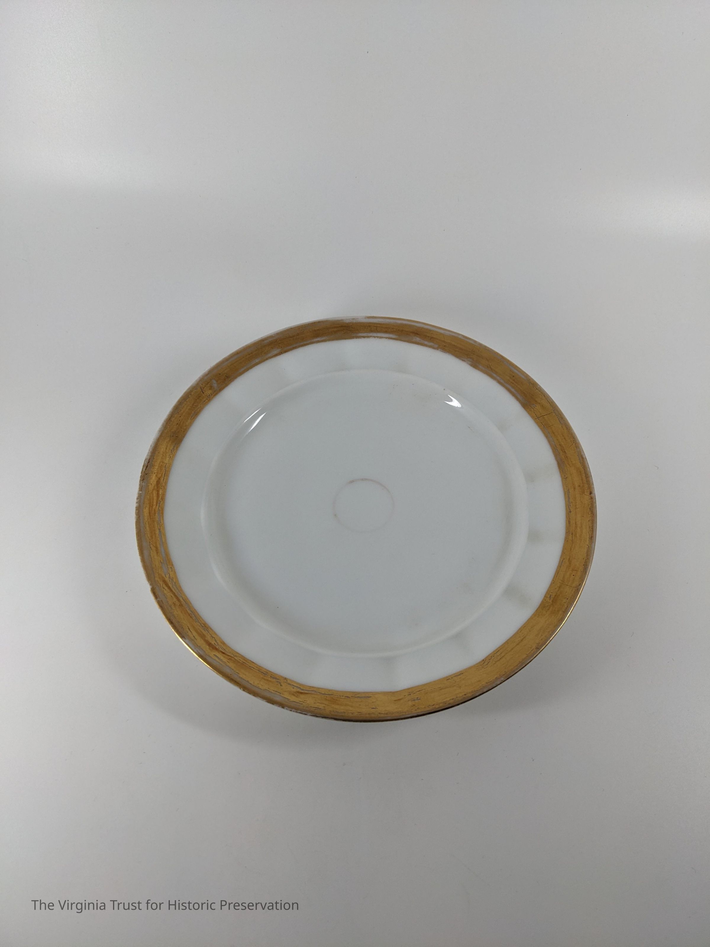 White plate with gold bands.