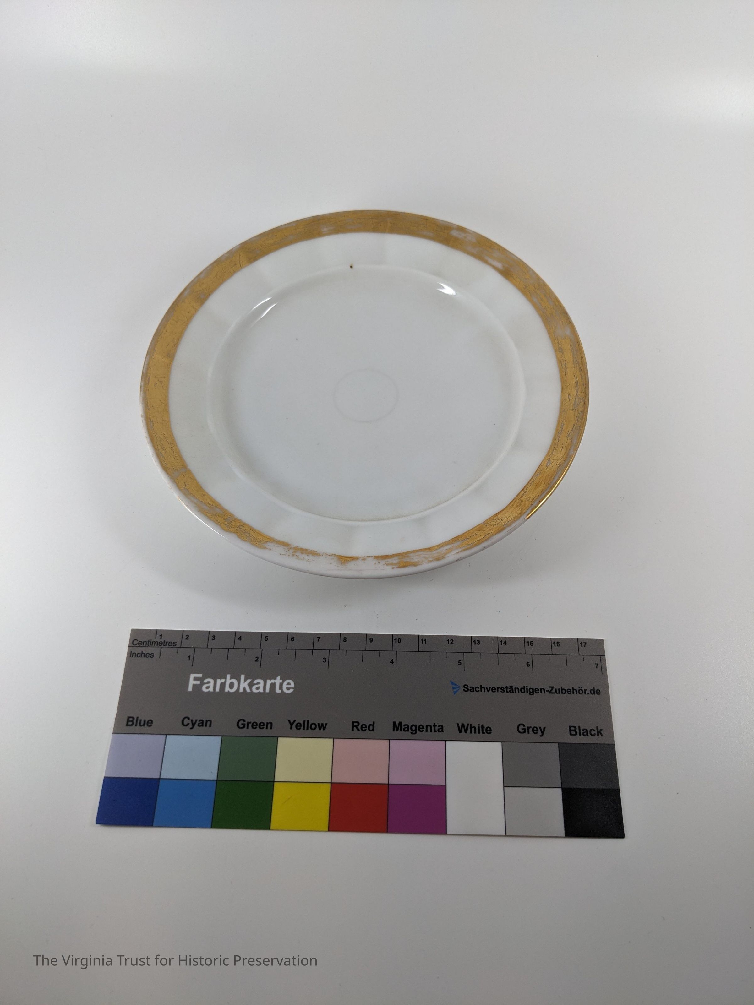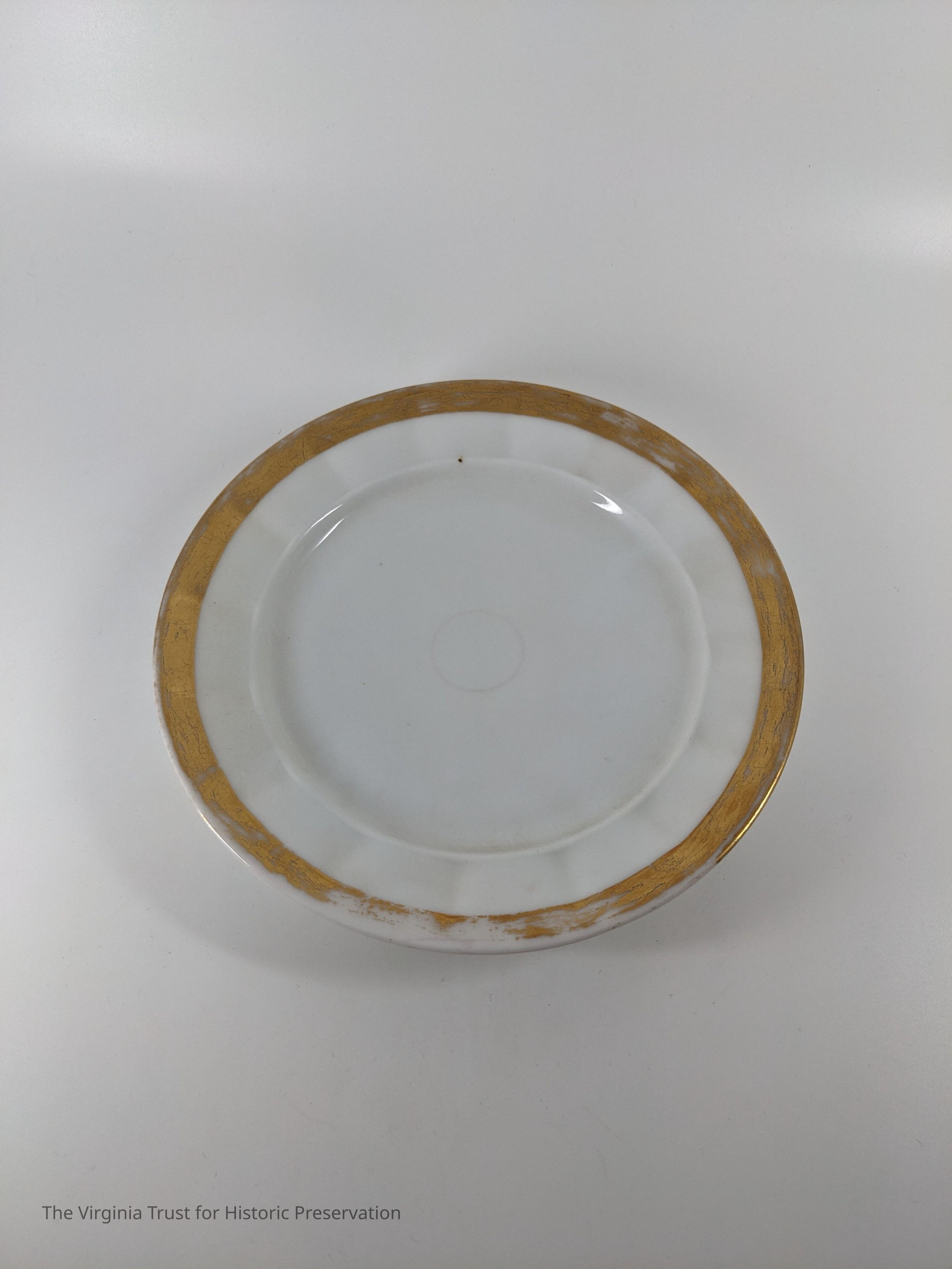 White plate with gold bands.