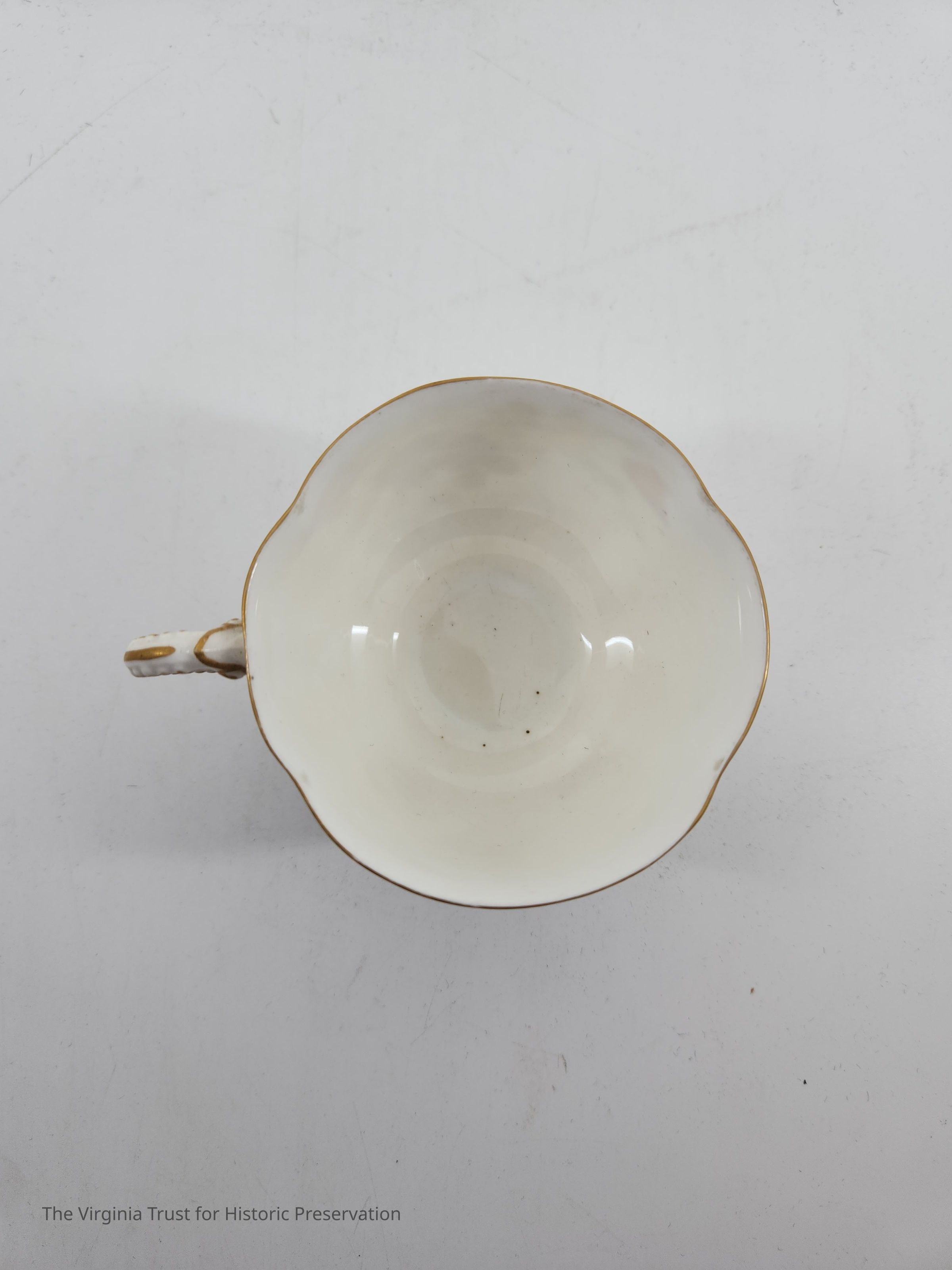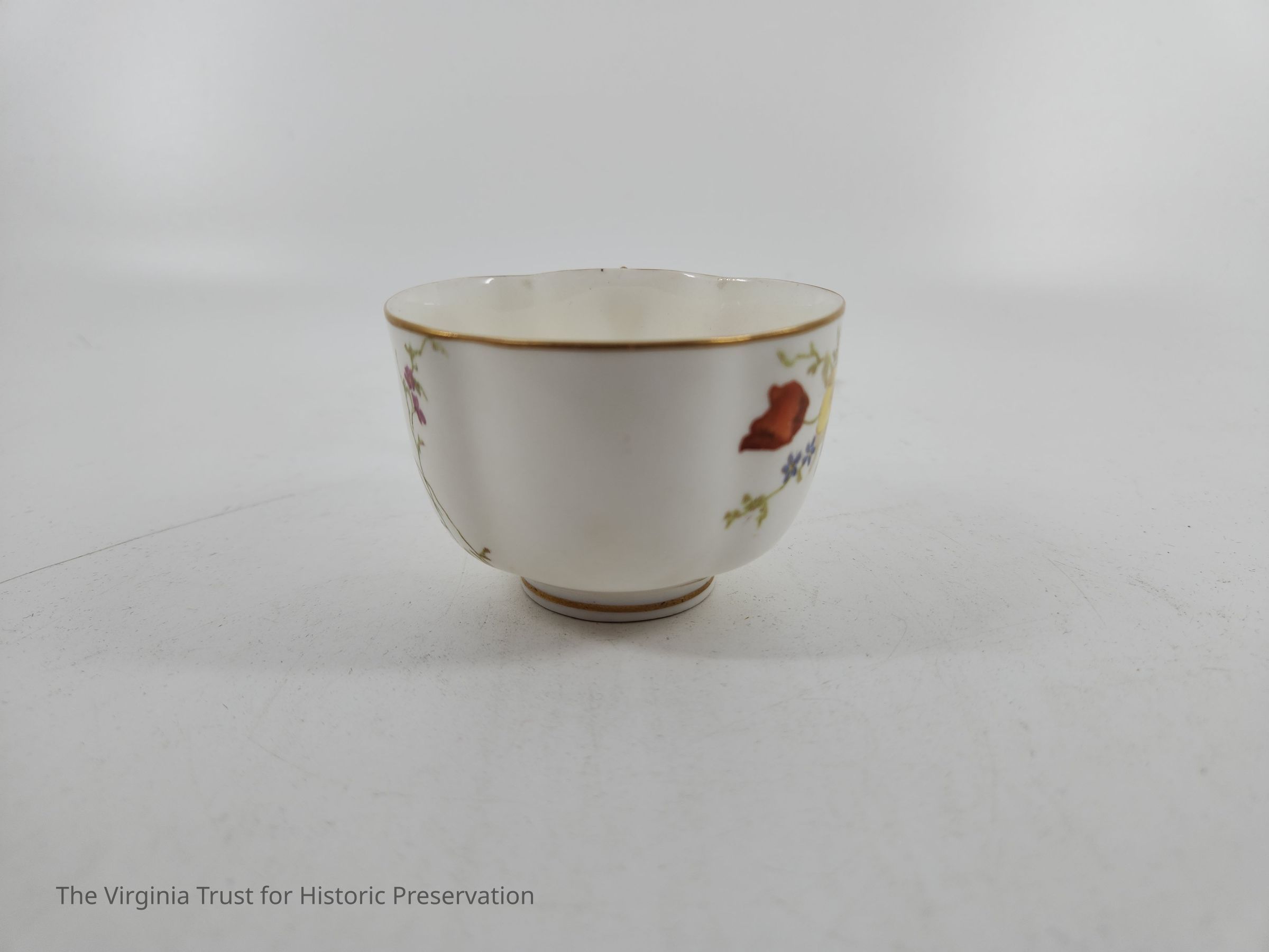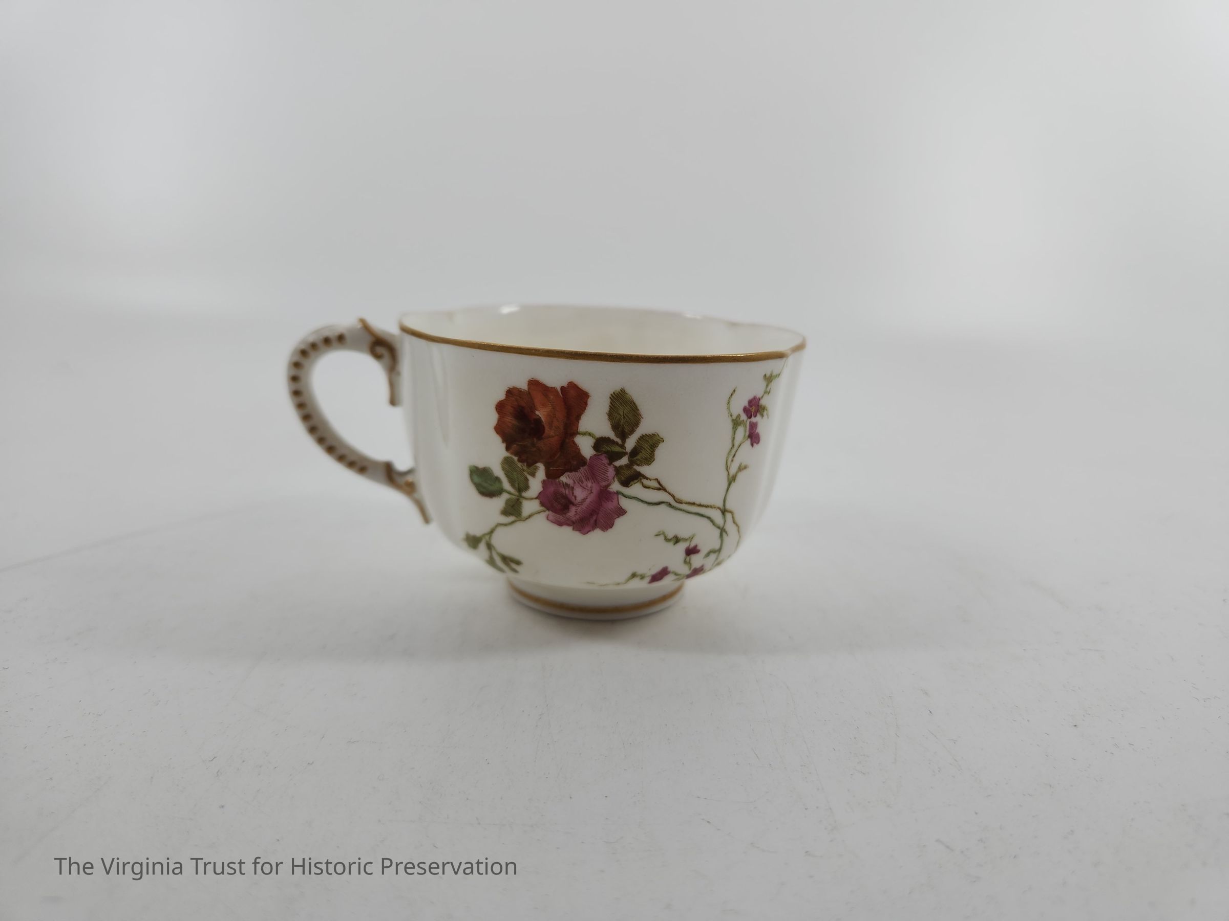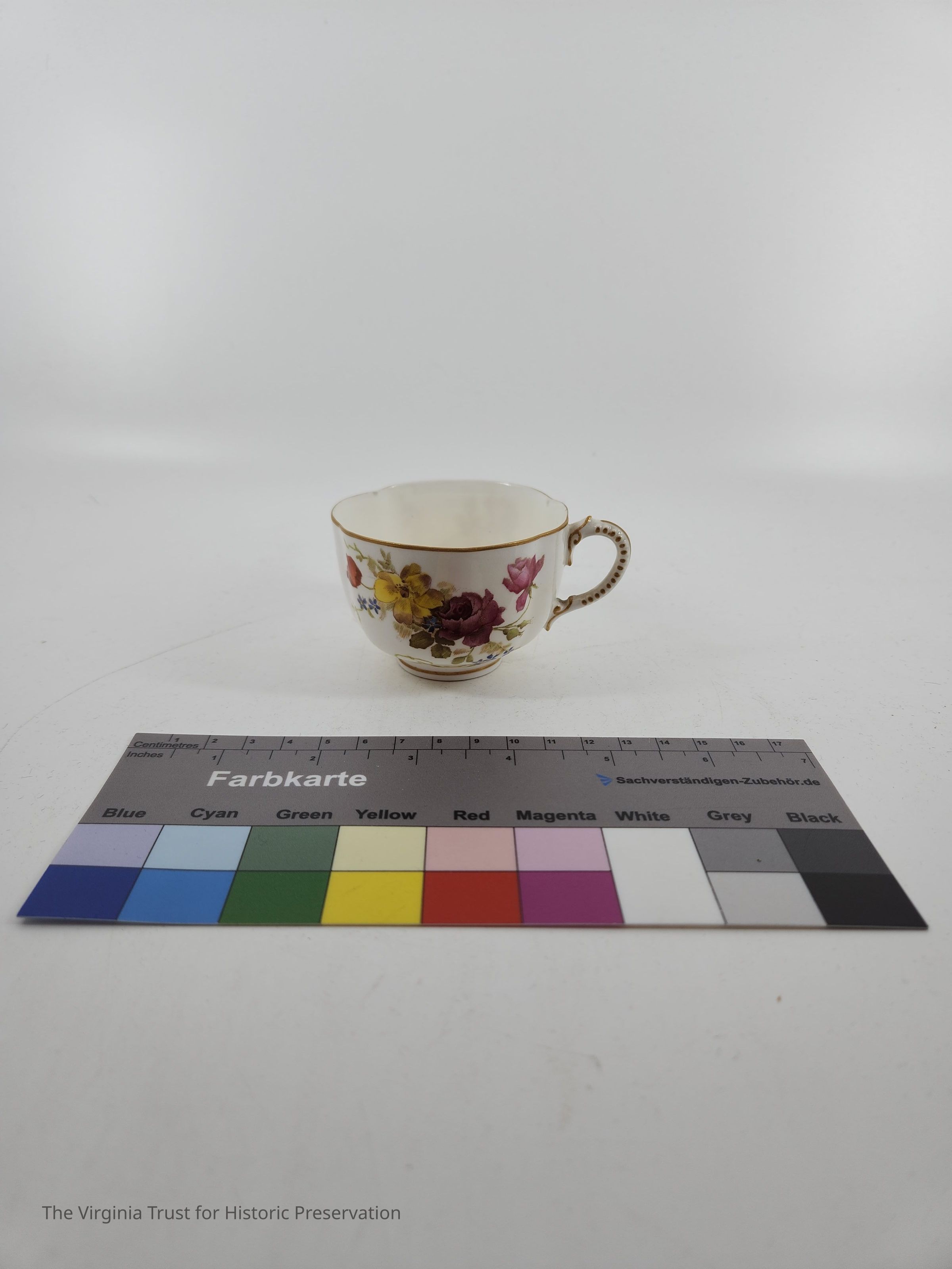 One of a set of 4 teacups. Marked "Royal Worcester-England." "Ditchley China." White with floral design.