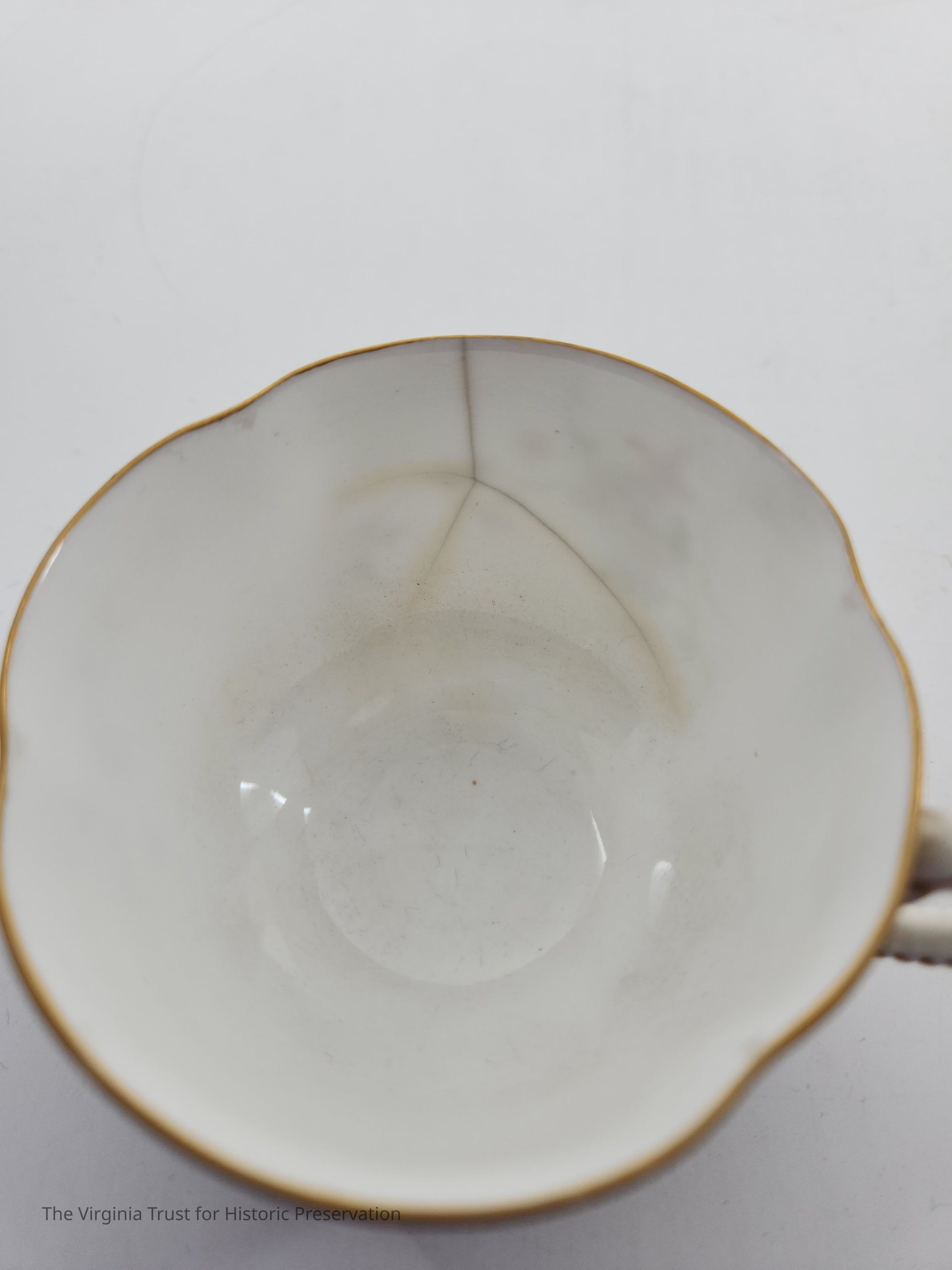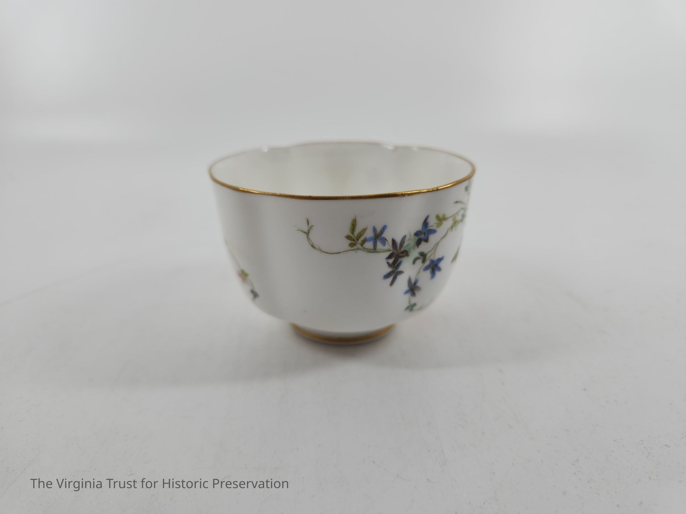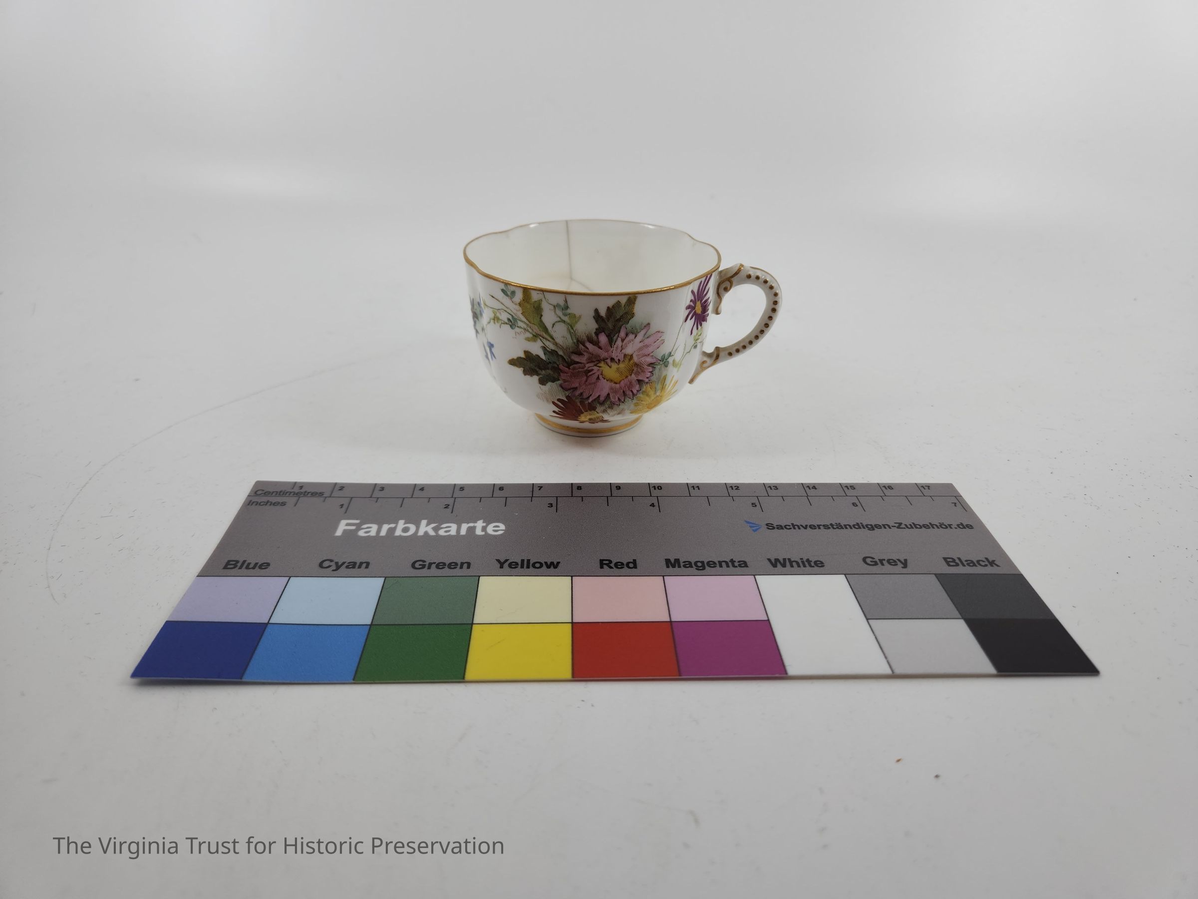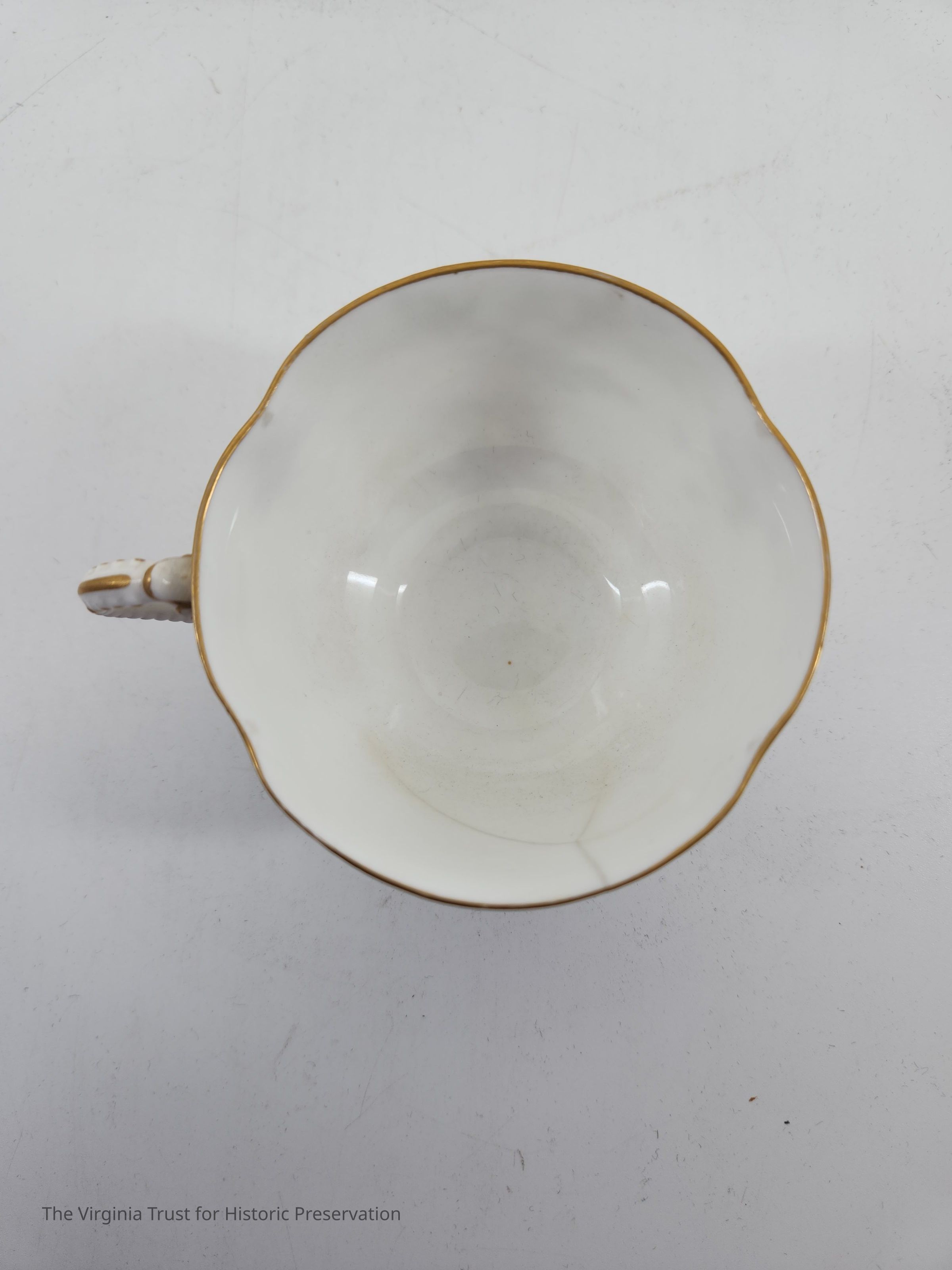 One of a set of 4 teacups. Marked "Royal Worcester-England." "Ditchley China." White with floral design.
