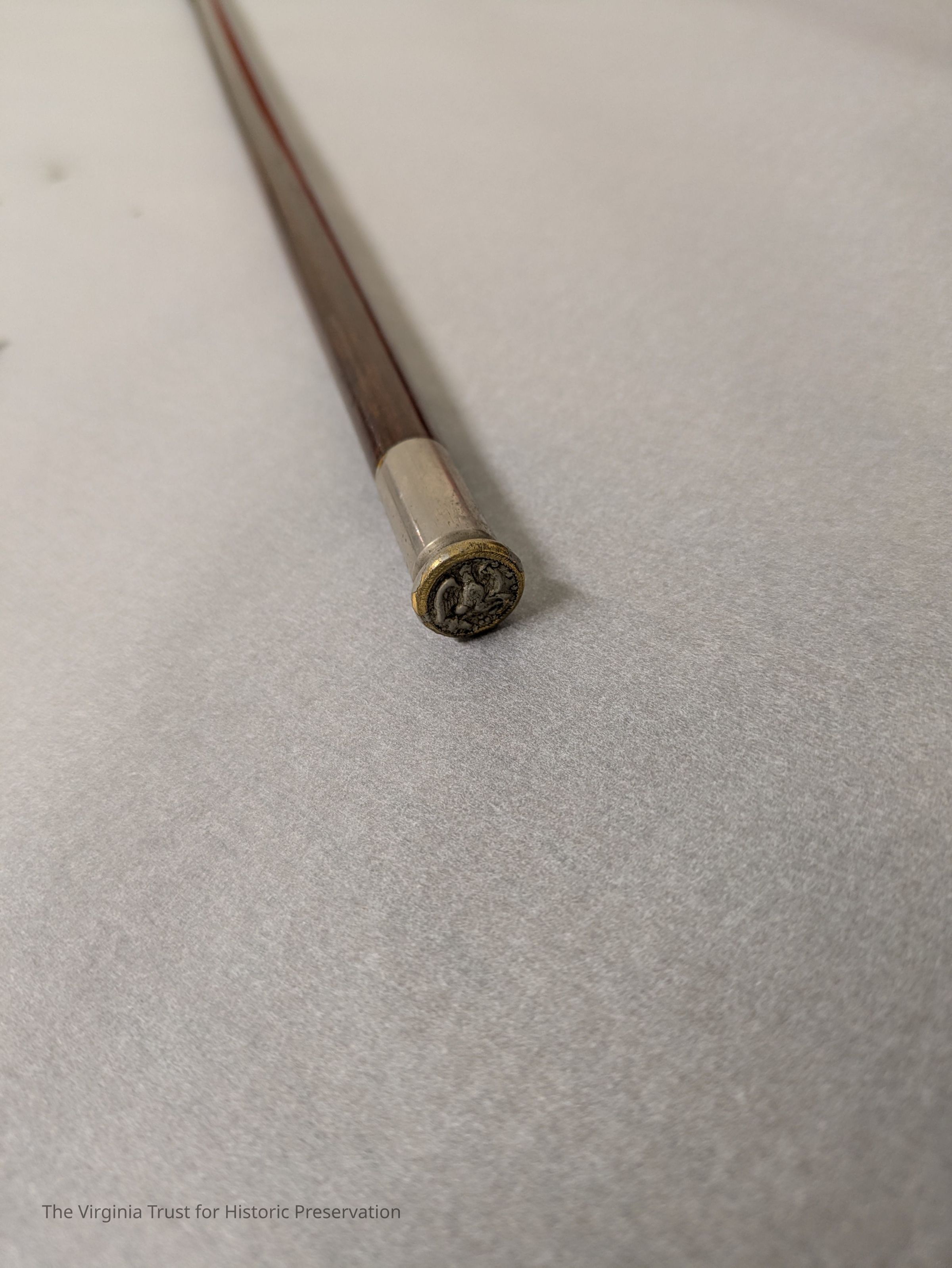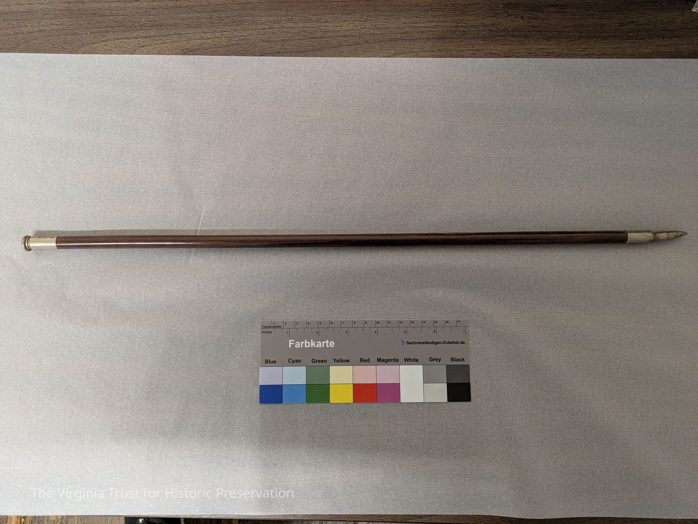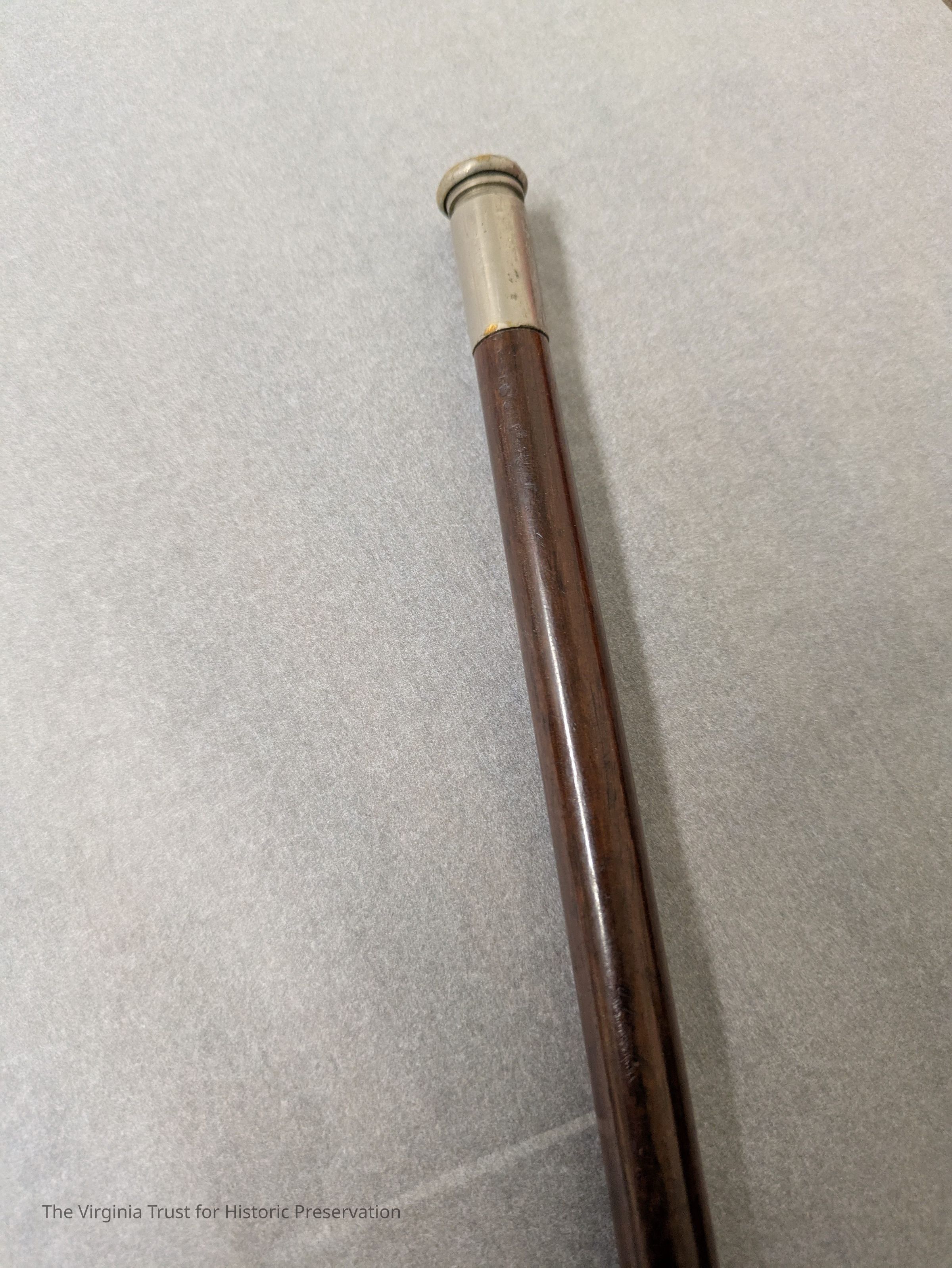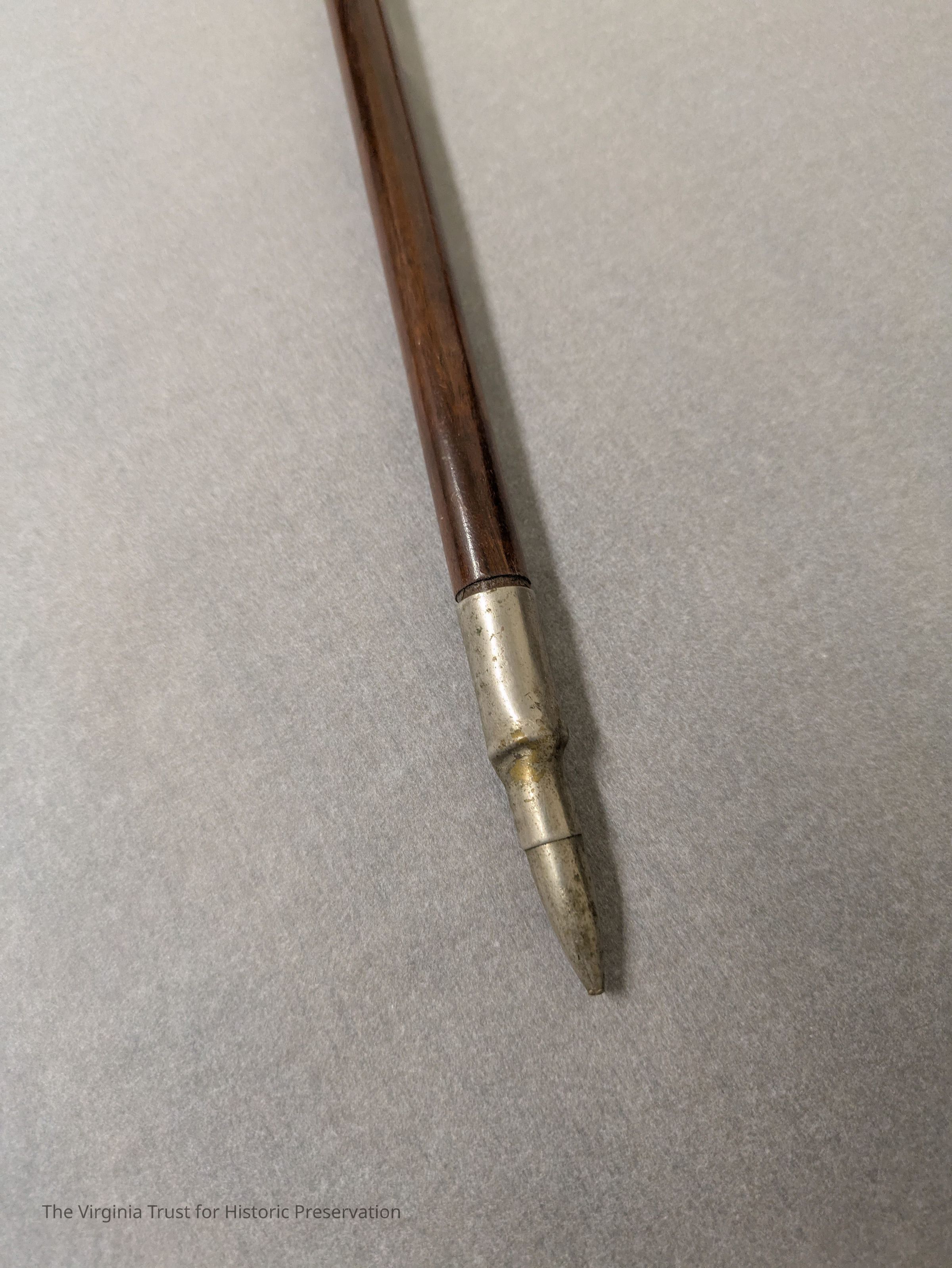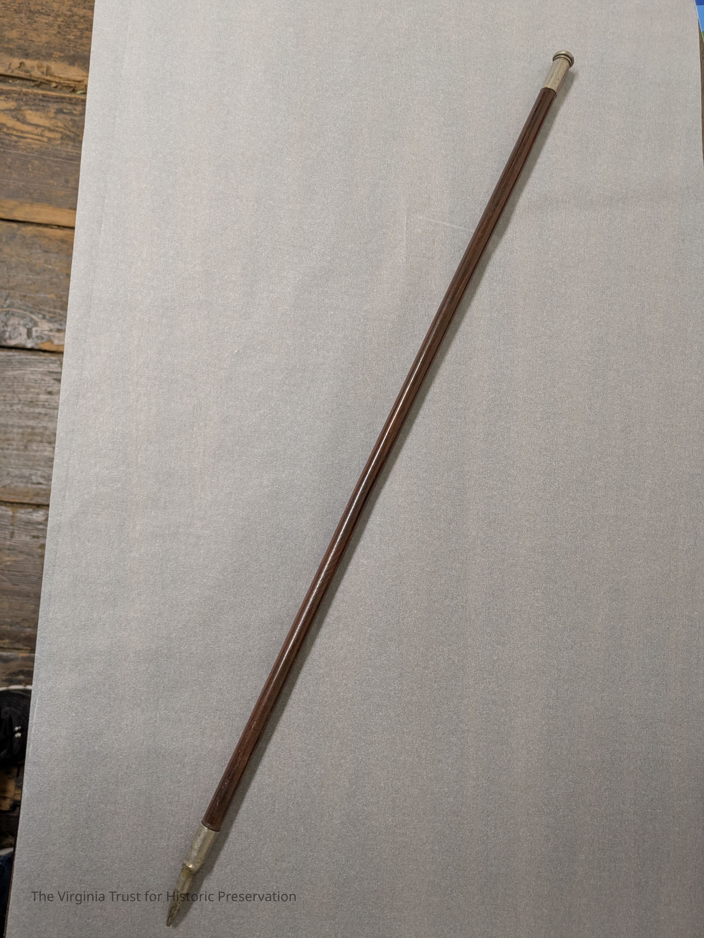 Swagger stick. Wooden with a metal top and point. Metal top has an embossed eagle.