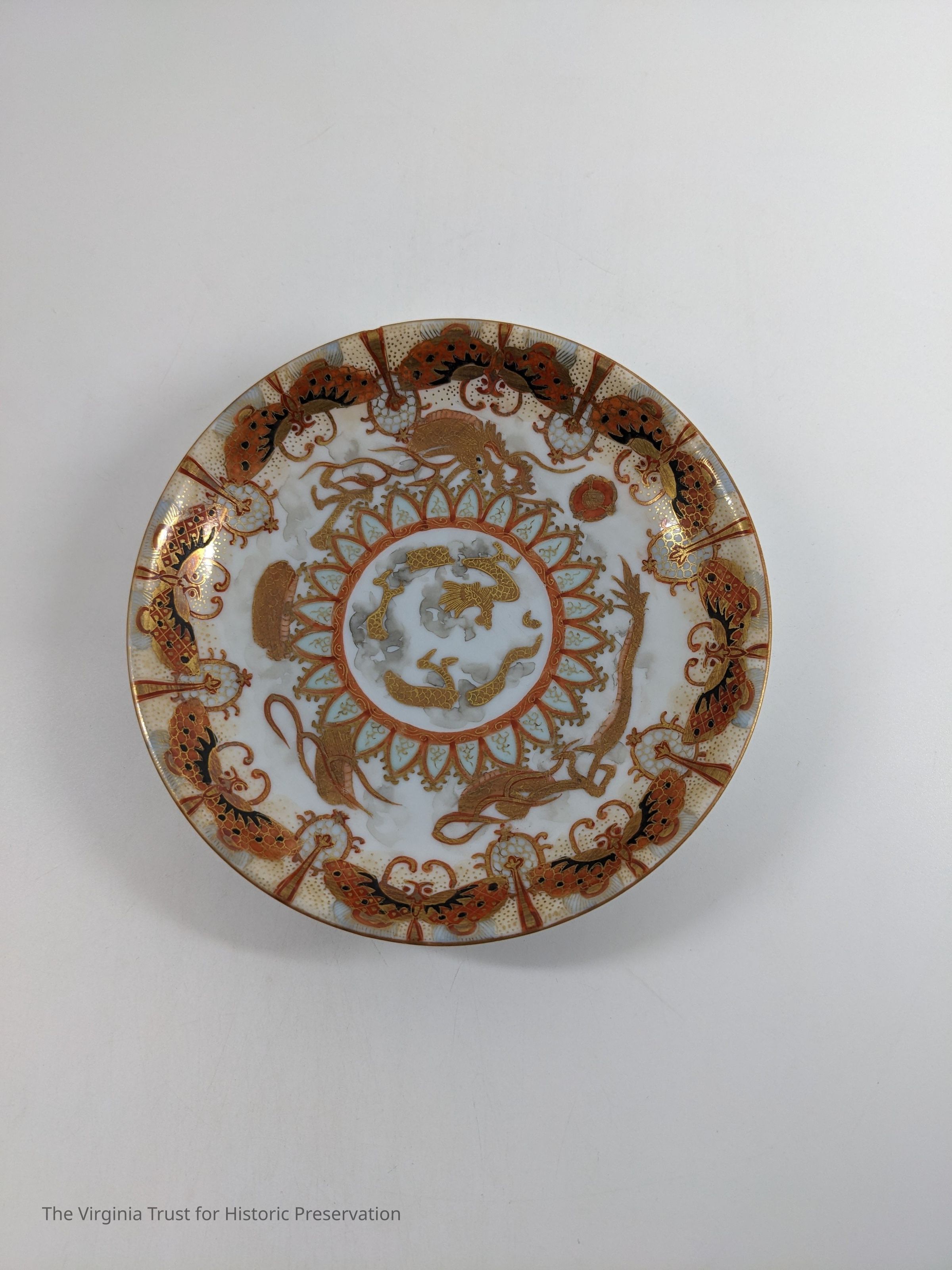 Pair of Japanese porcelain cups with saucers. Egg-shell thin, decorated with butterfly motifs.