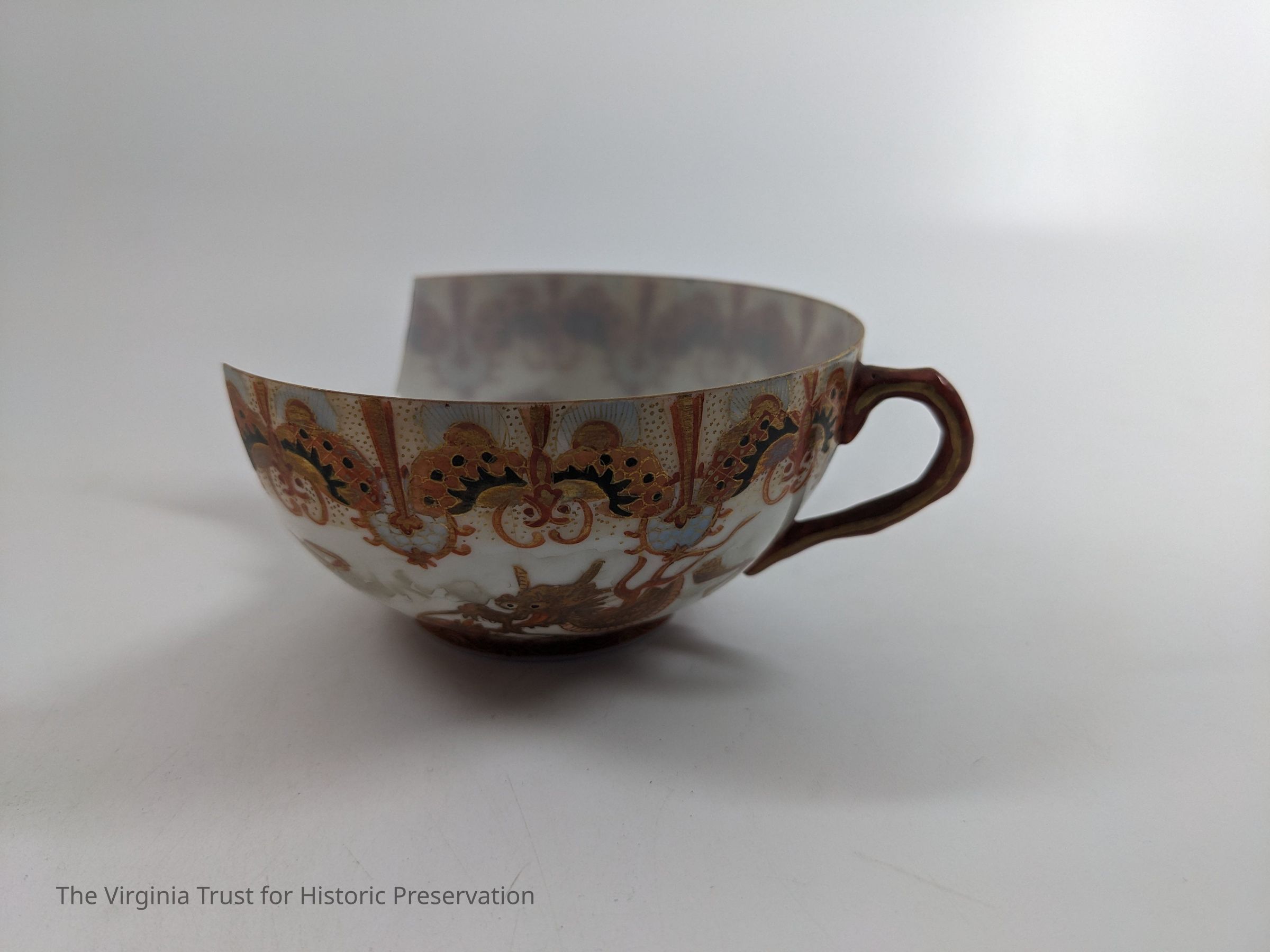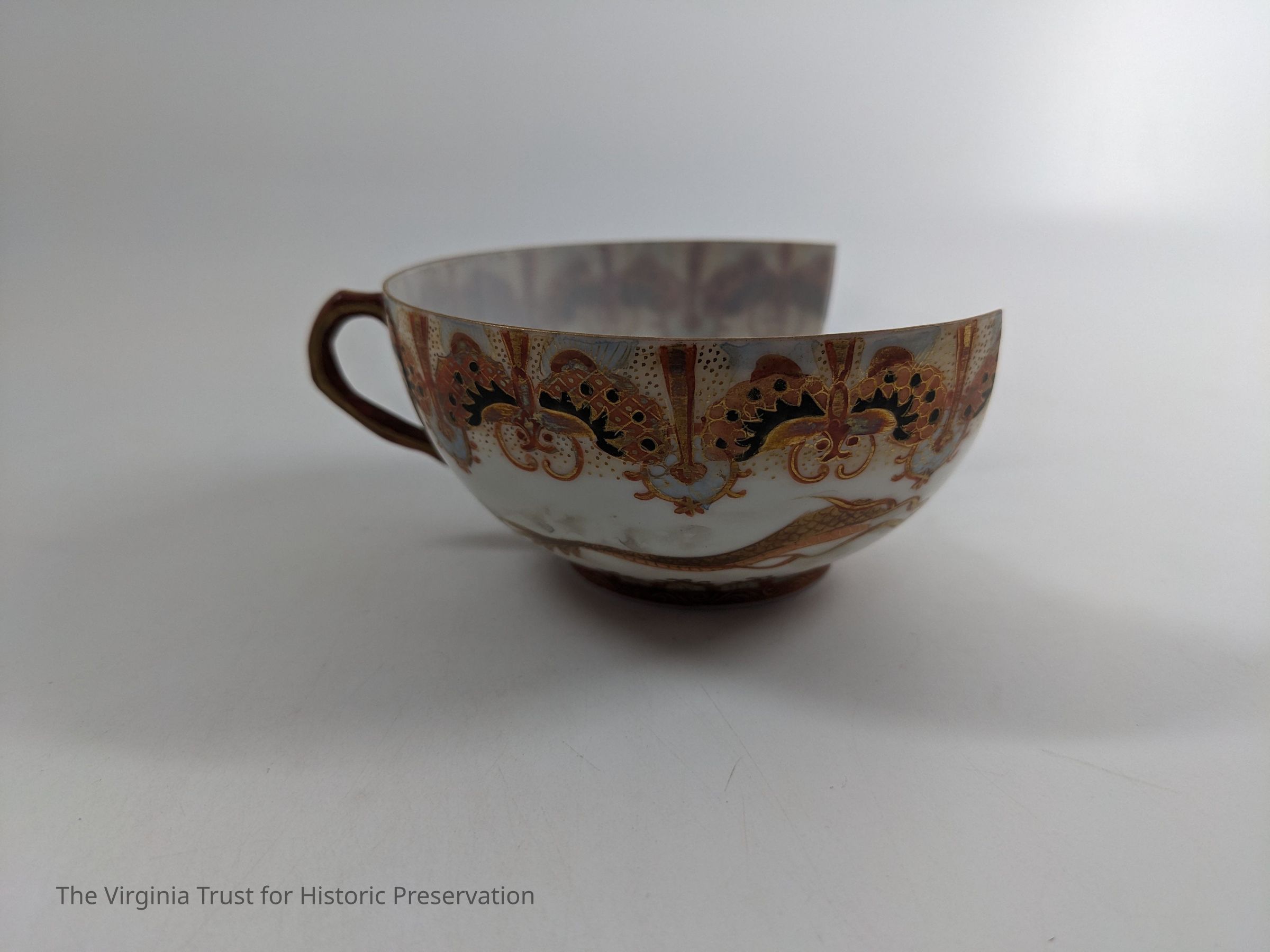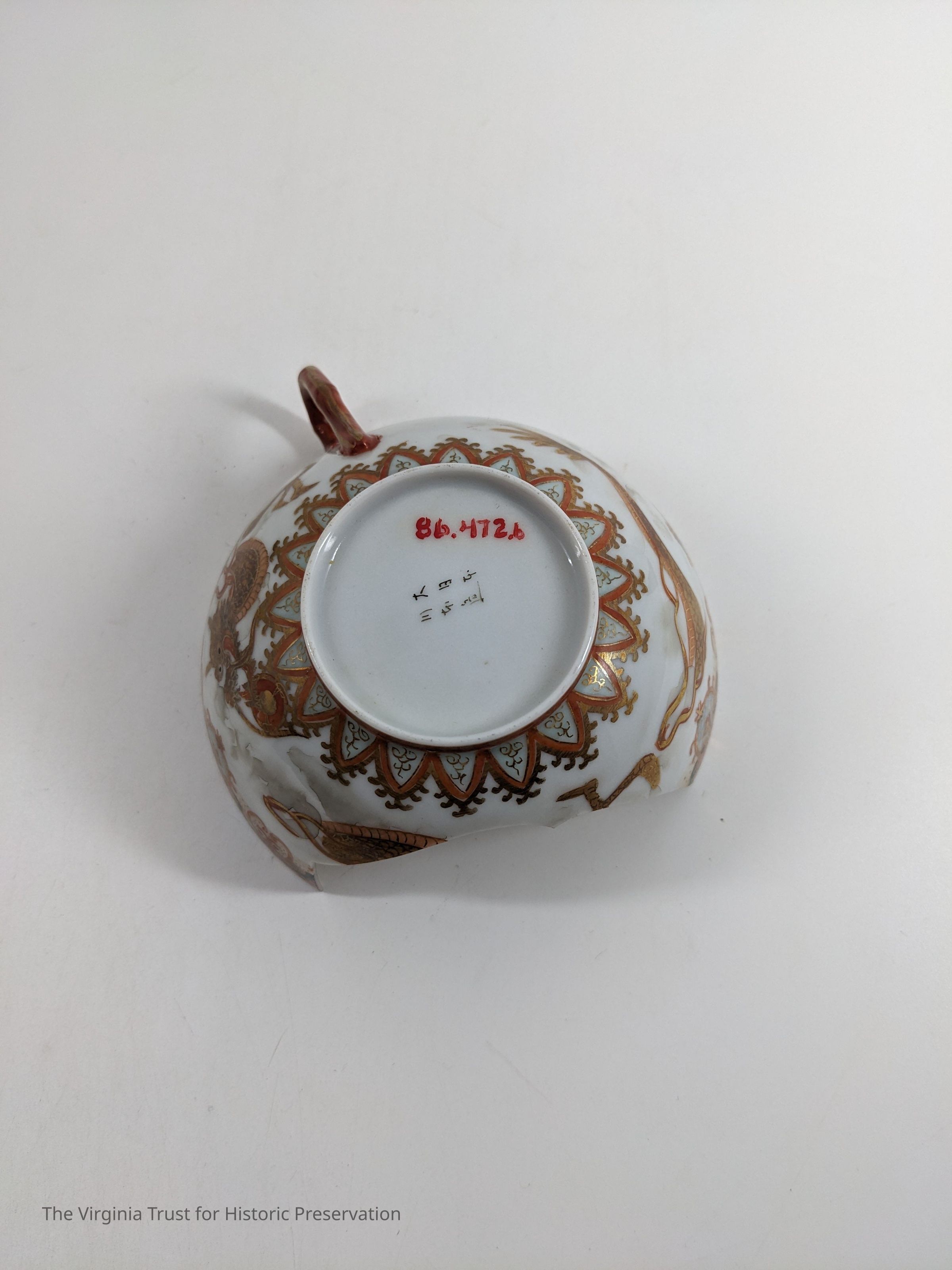 Pair of Japanese porcelain cups with saucers. Egg-shell thin, decorated with butterfly motifs.