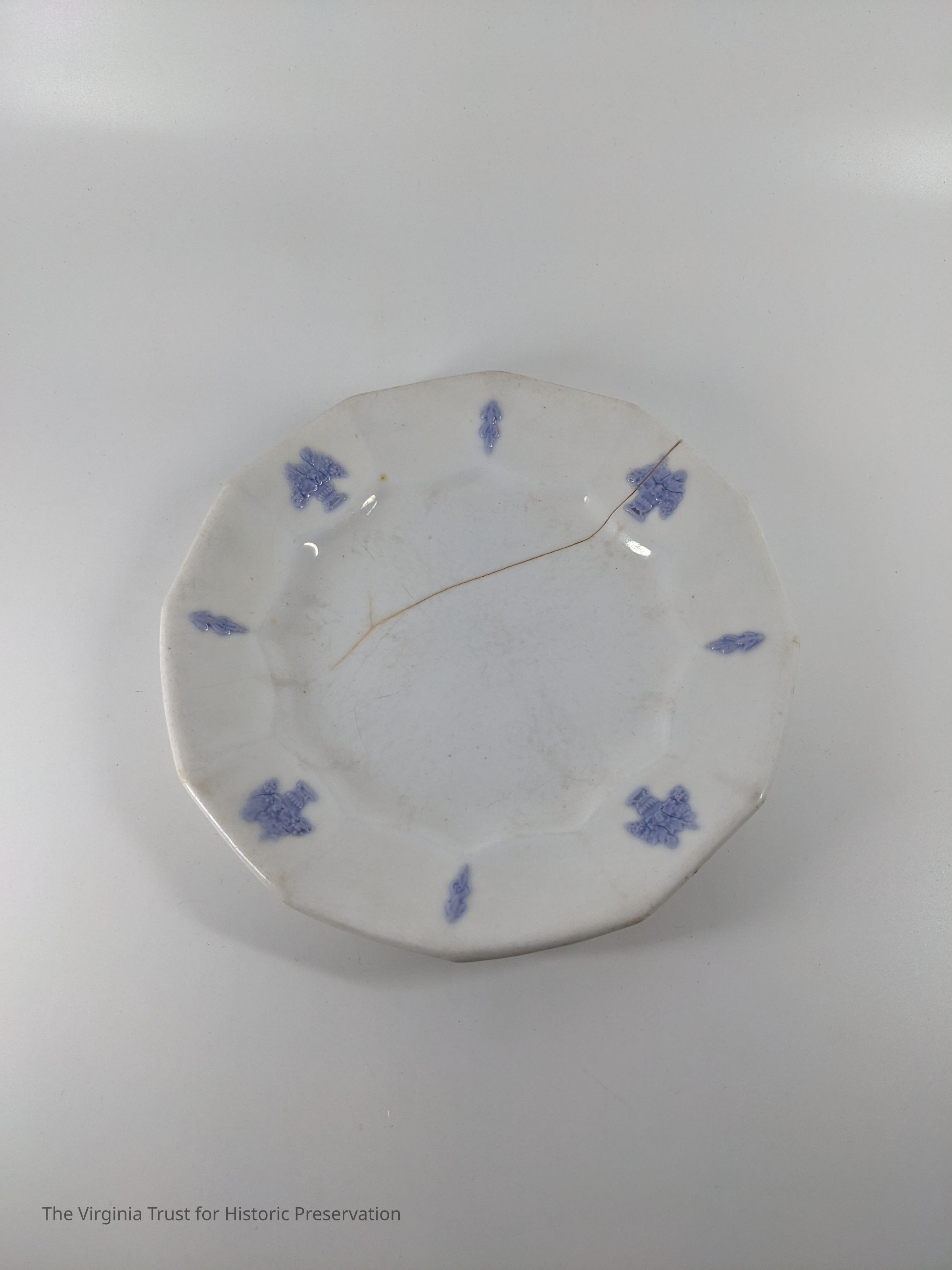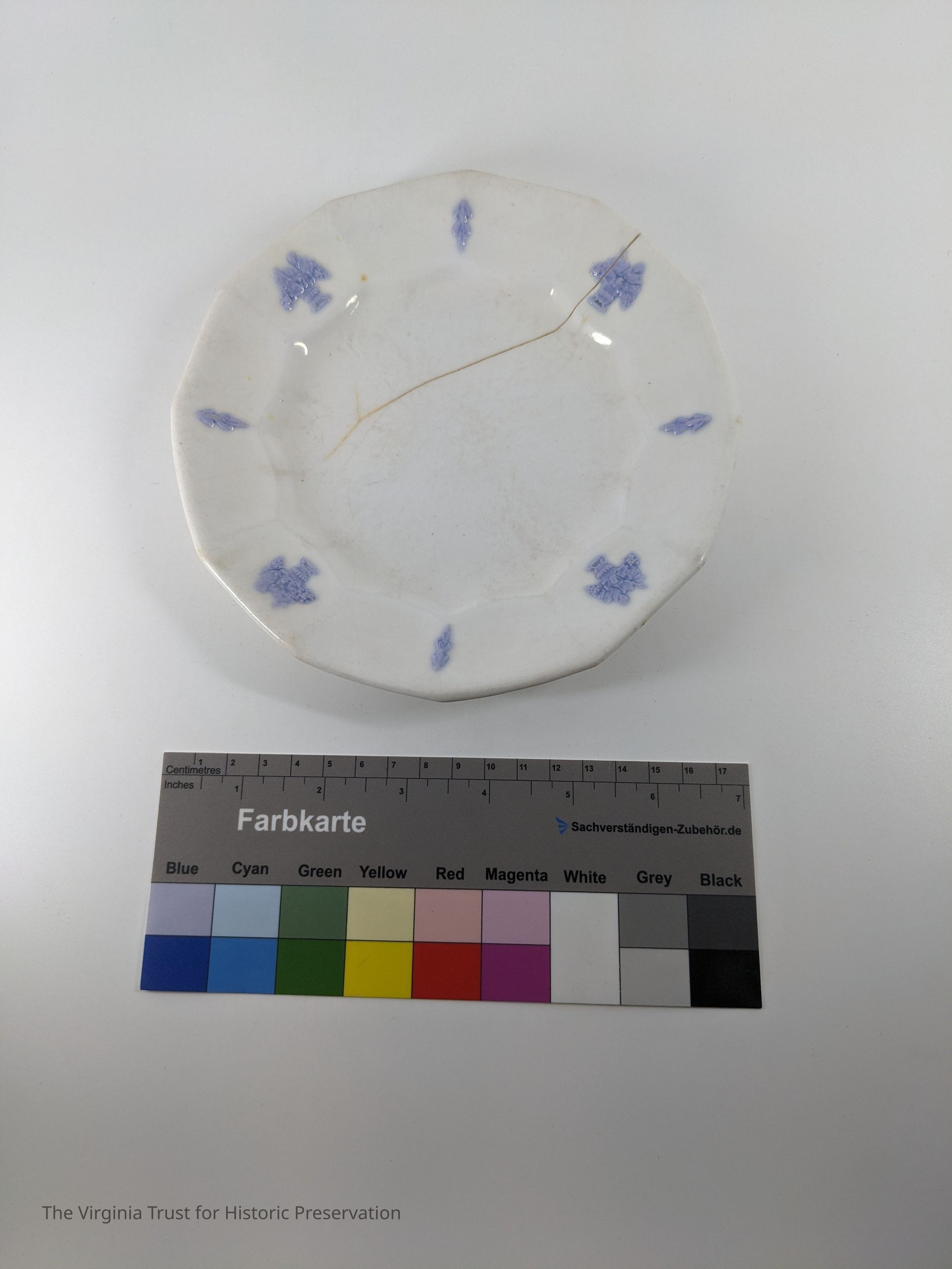 Partial set. White with raised, unpainted design and blue painted design.