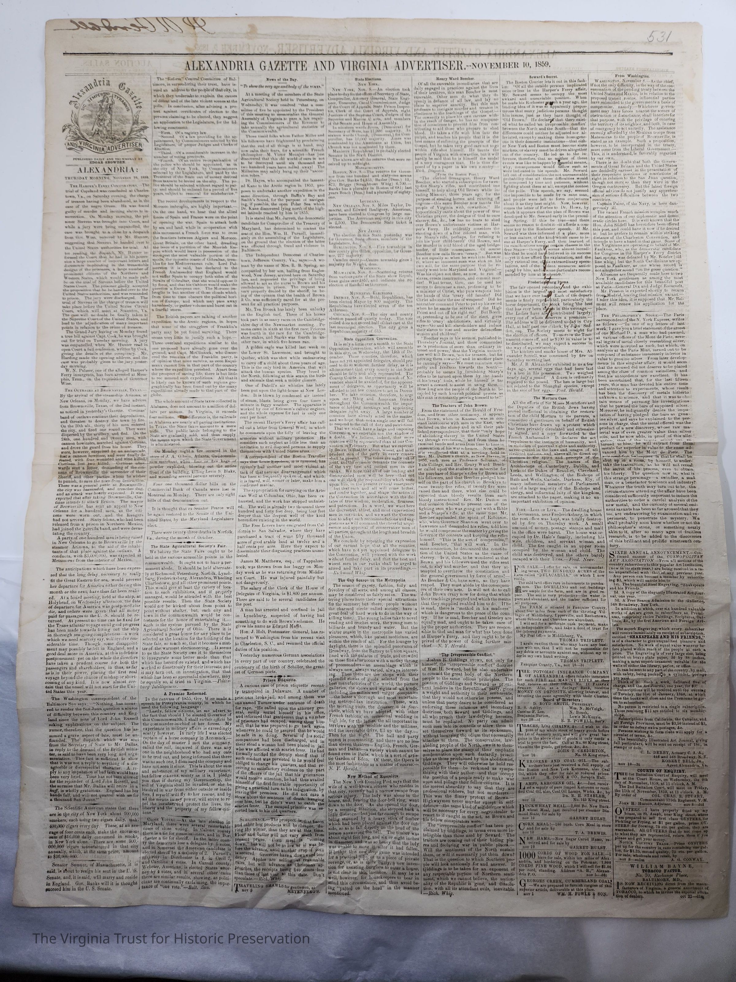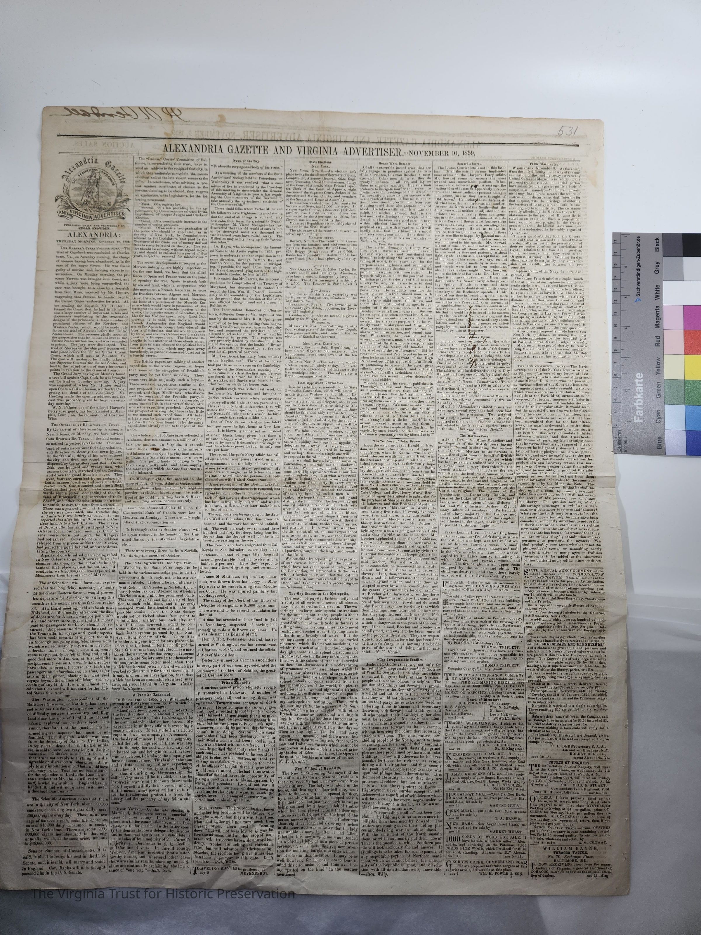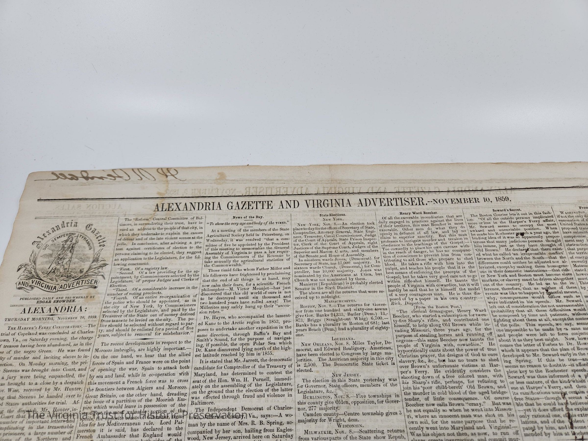 November 10, 1859 edition of The Alexandria Gazette and Virginia Adviser - on the reverse side of the November 9, 1859 edition