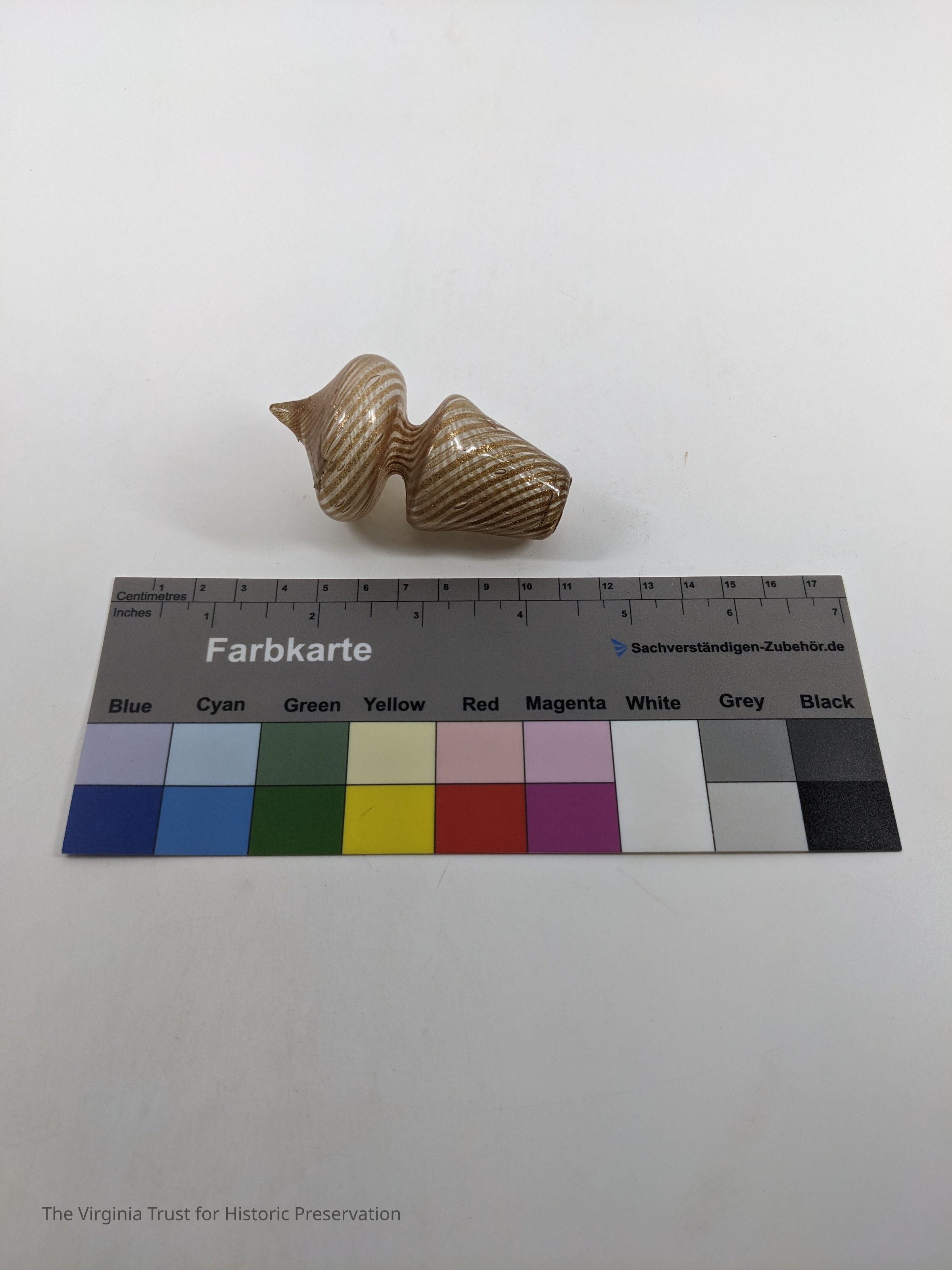 Hand blow Venetian glass stopper with matching decanter. Clear with gold flecks in a swirl pattern.