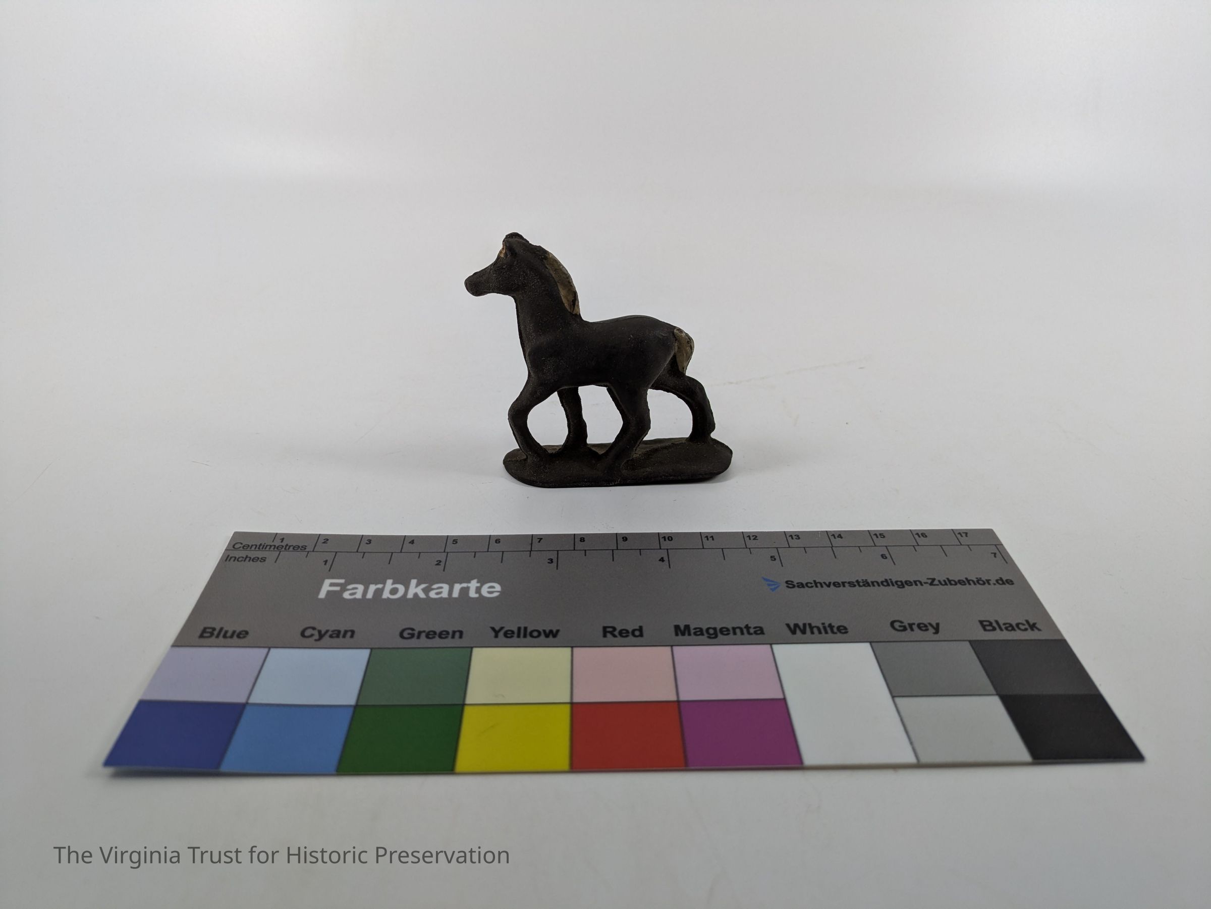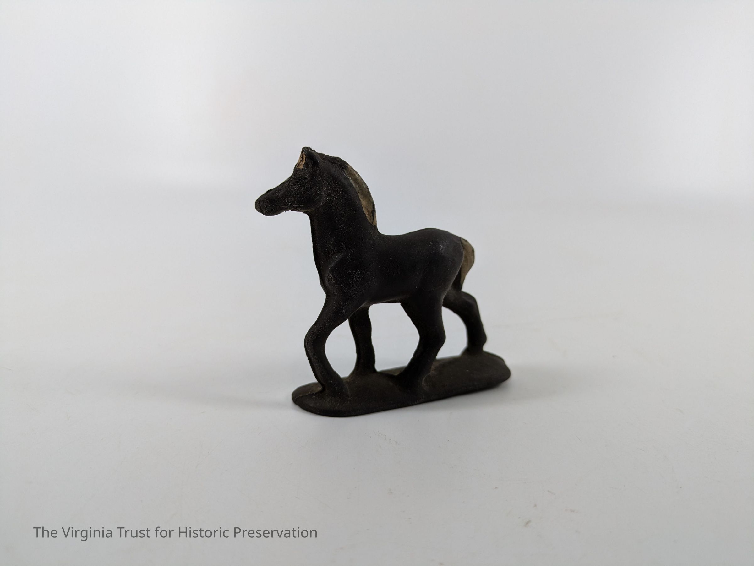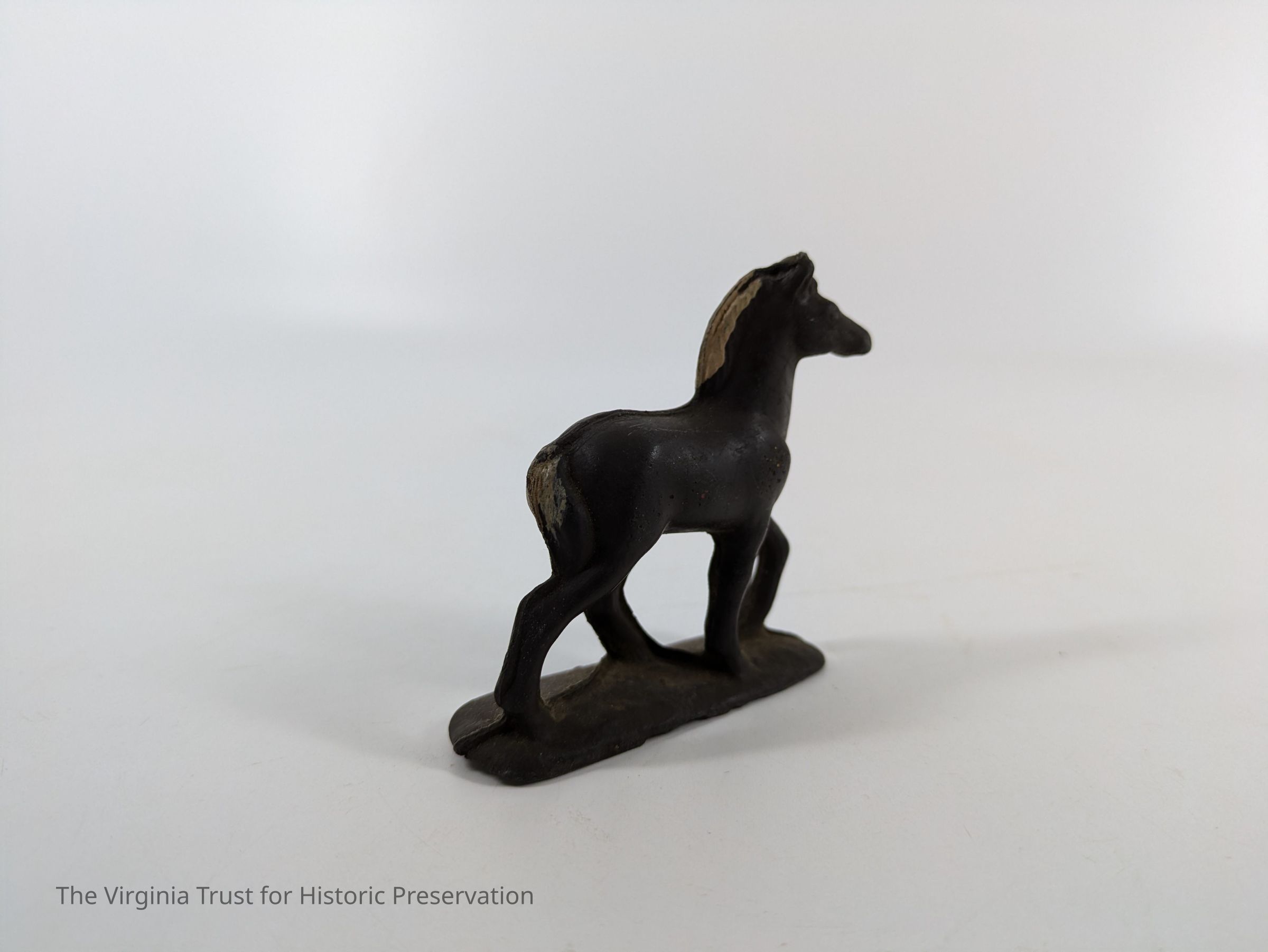 Horse with black with tan mane and tail. One of six molded rubber animal figurines.