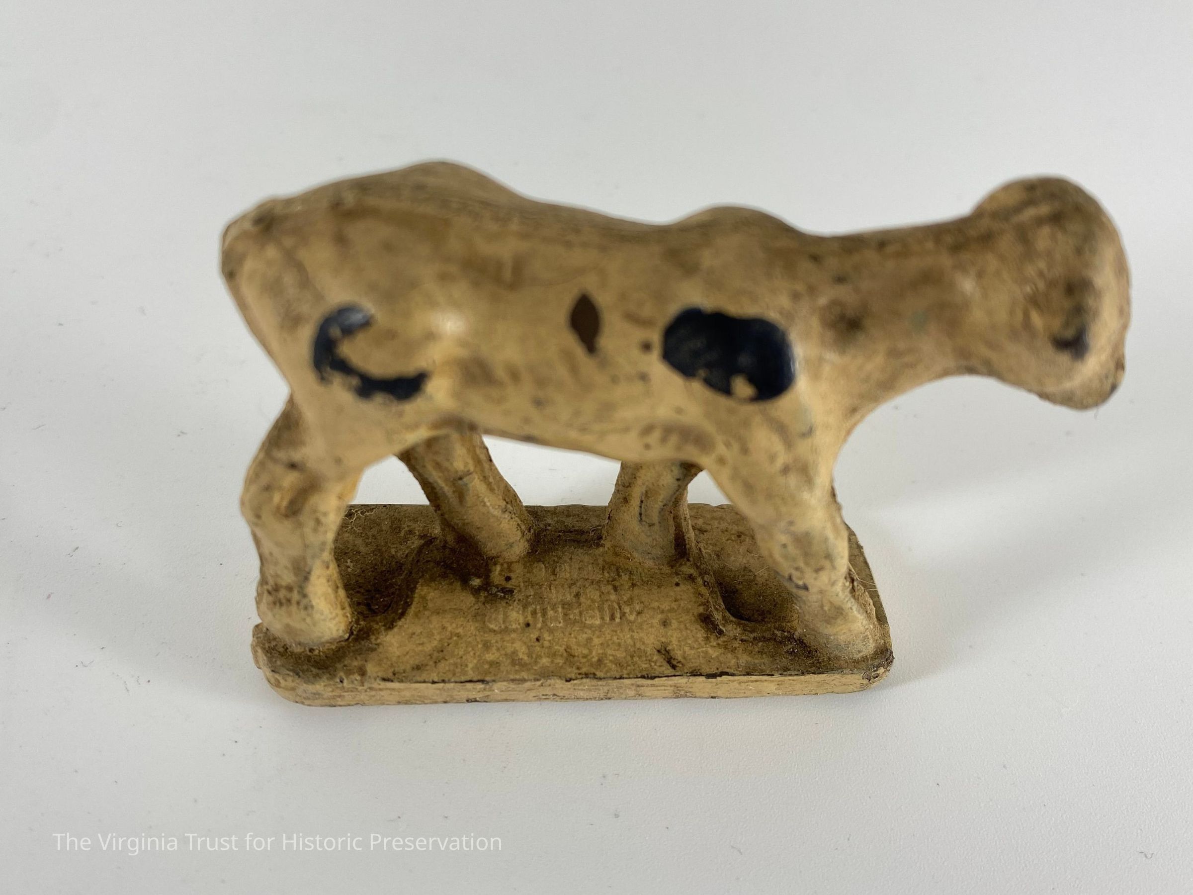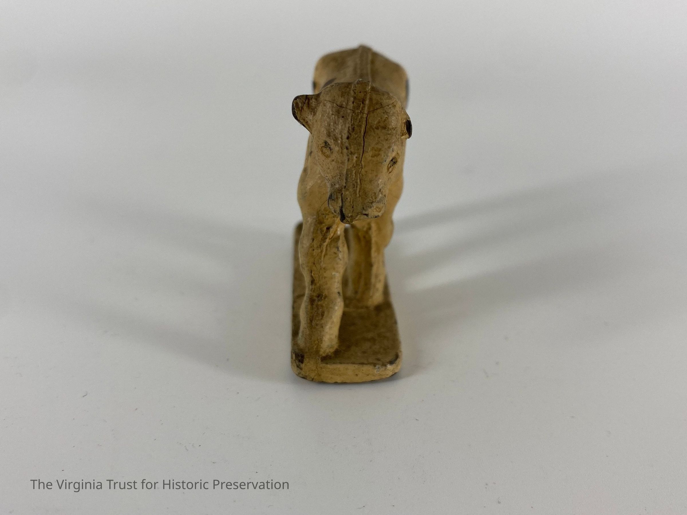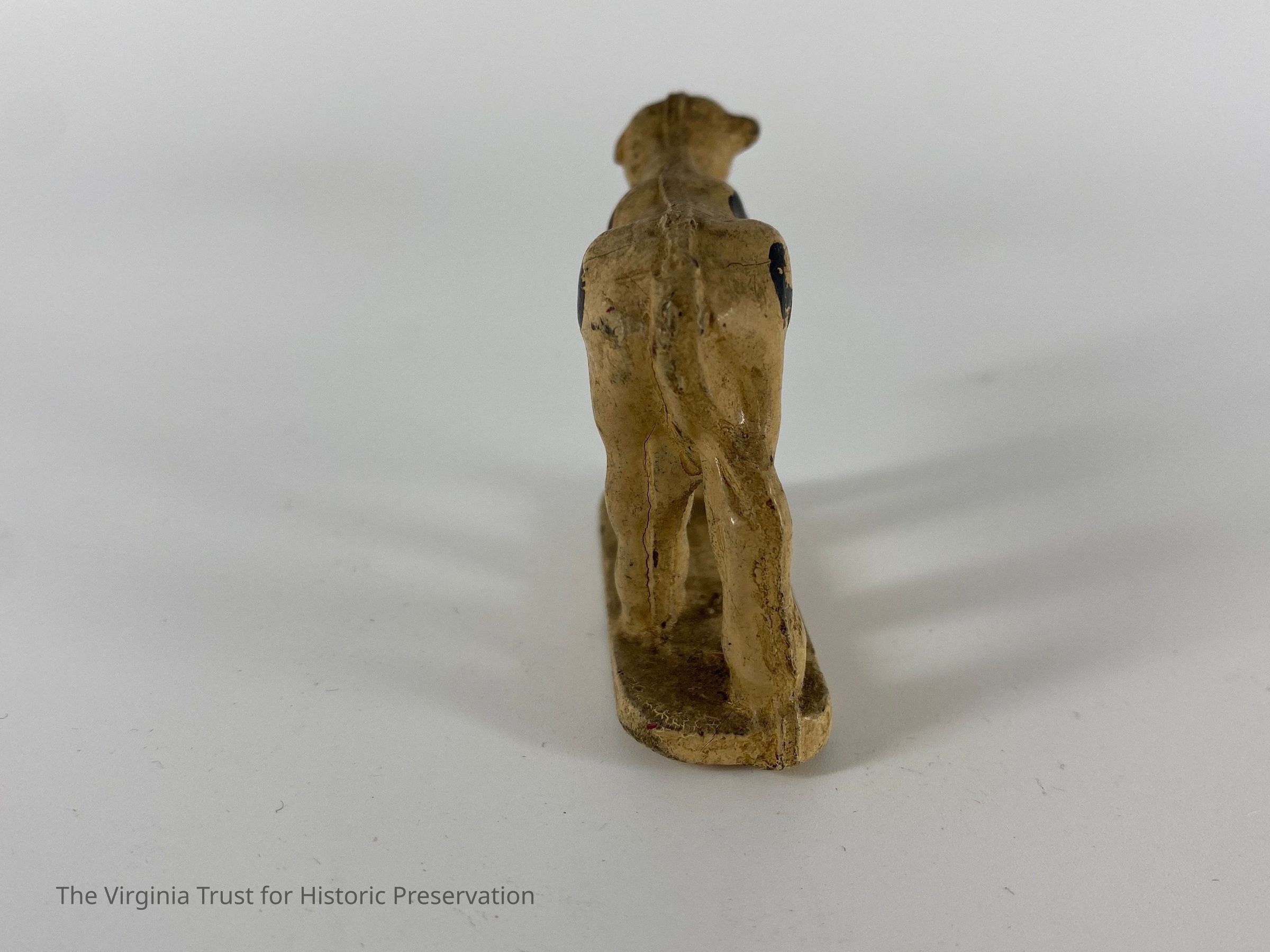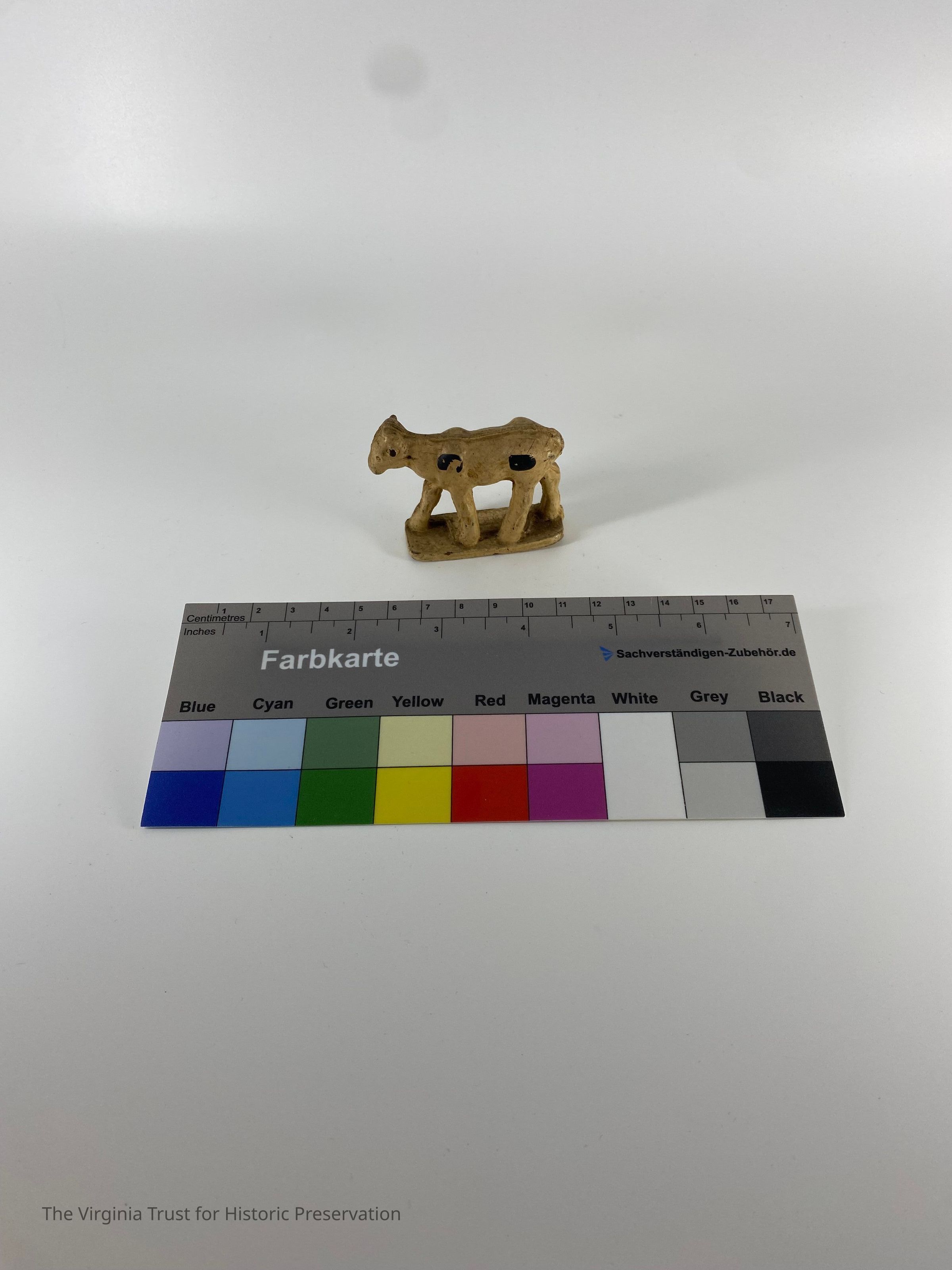 Calf: tan with black spots. Embossment worn, likely same as 1986.570 F. One of six molded rubber animal figurines.