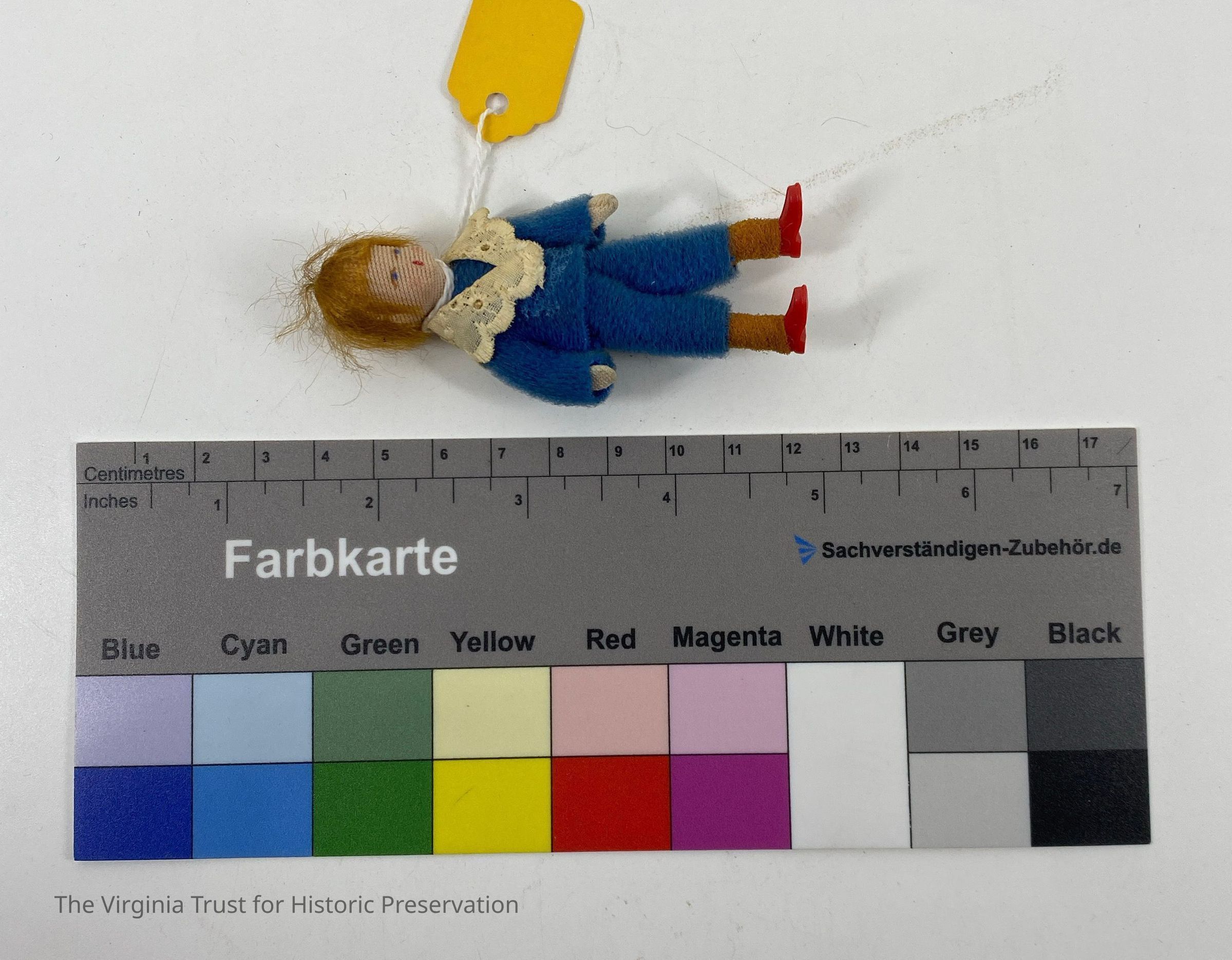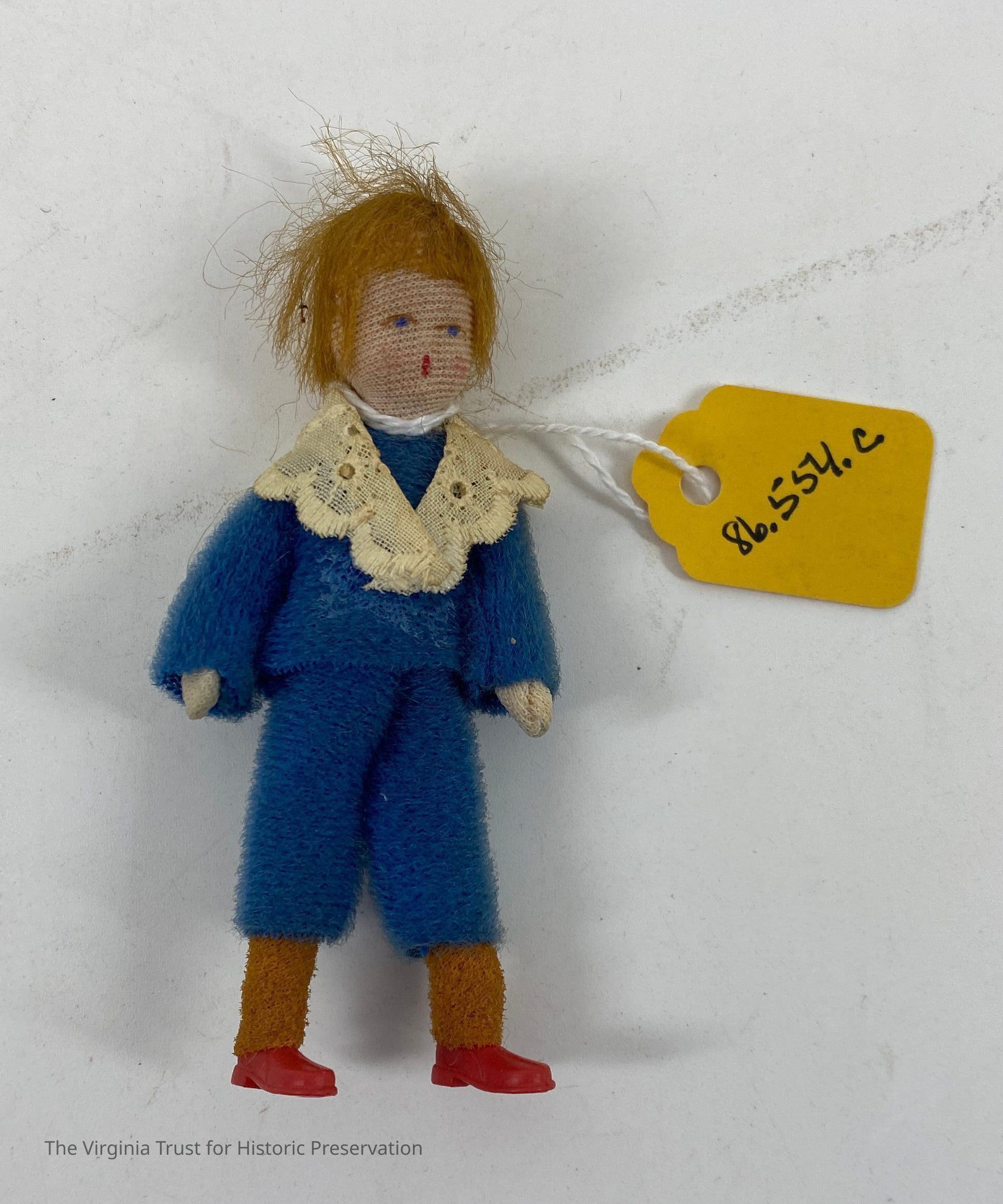 One in a set of 4. Boy dressed in blue with white lace collar.