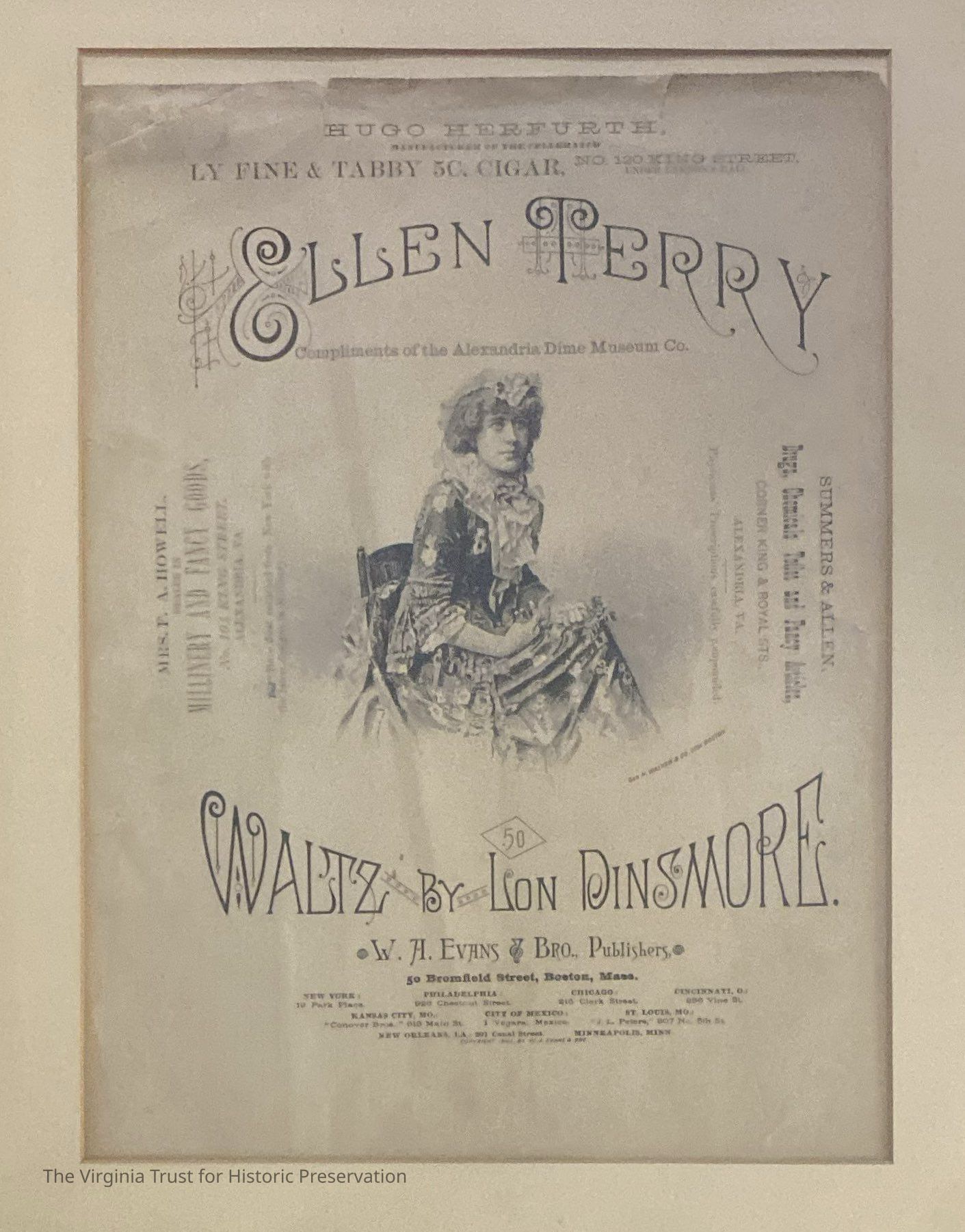 Framed print of “Waltz By Lon Dinsmore” featuring Ellen Terry. Play to take place in Boston.Dimensions