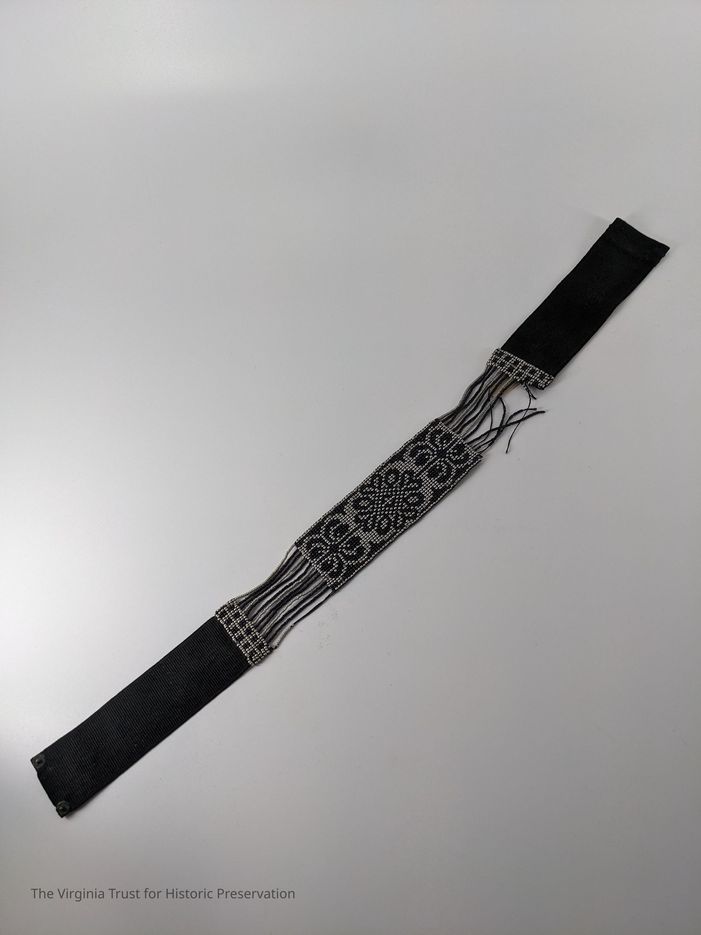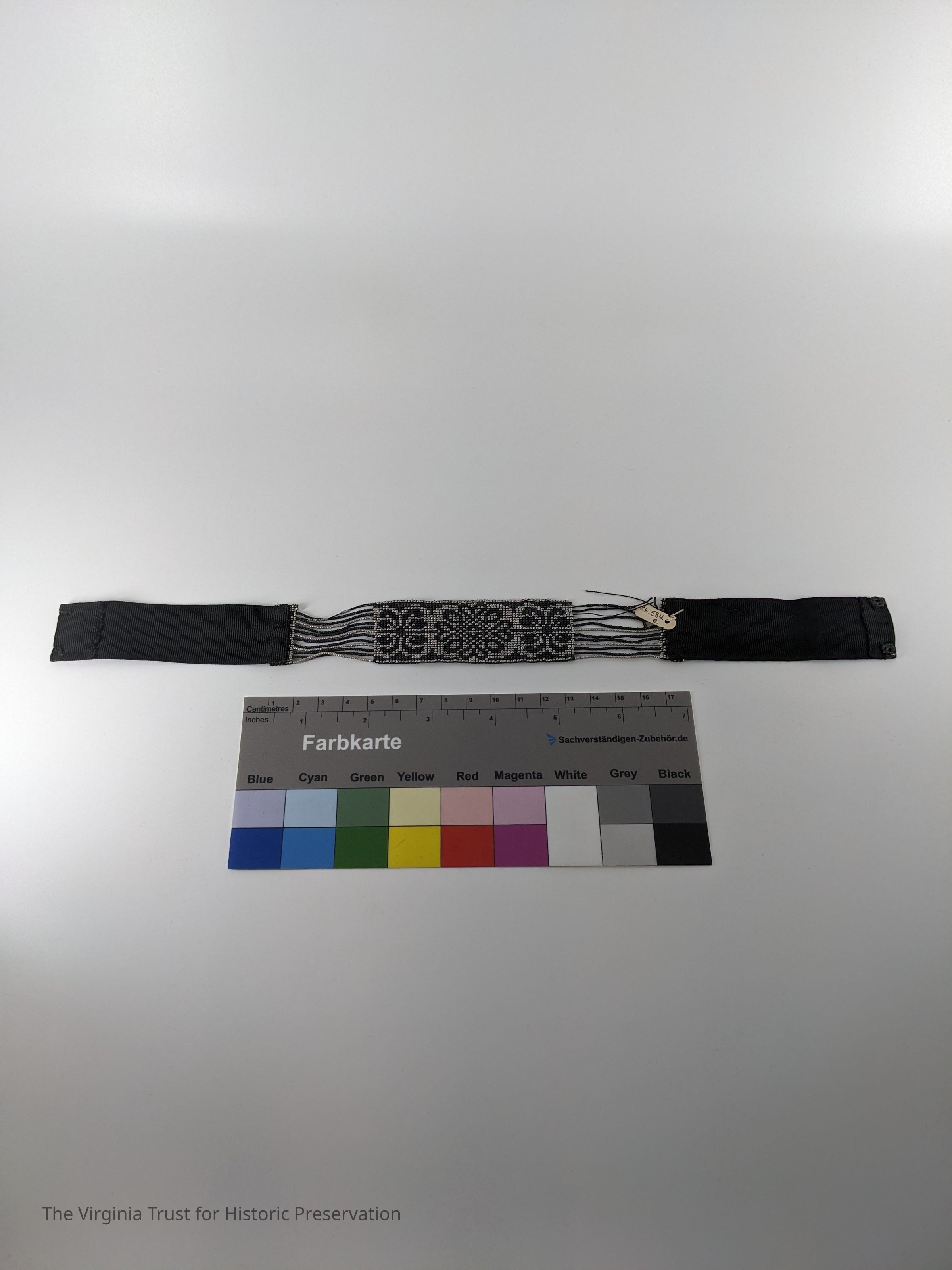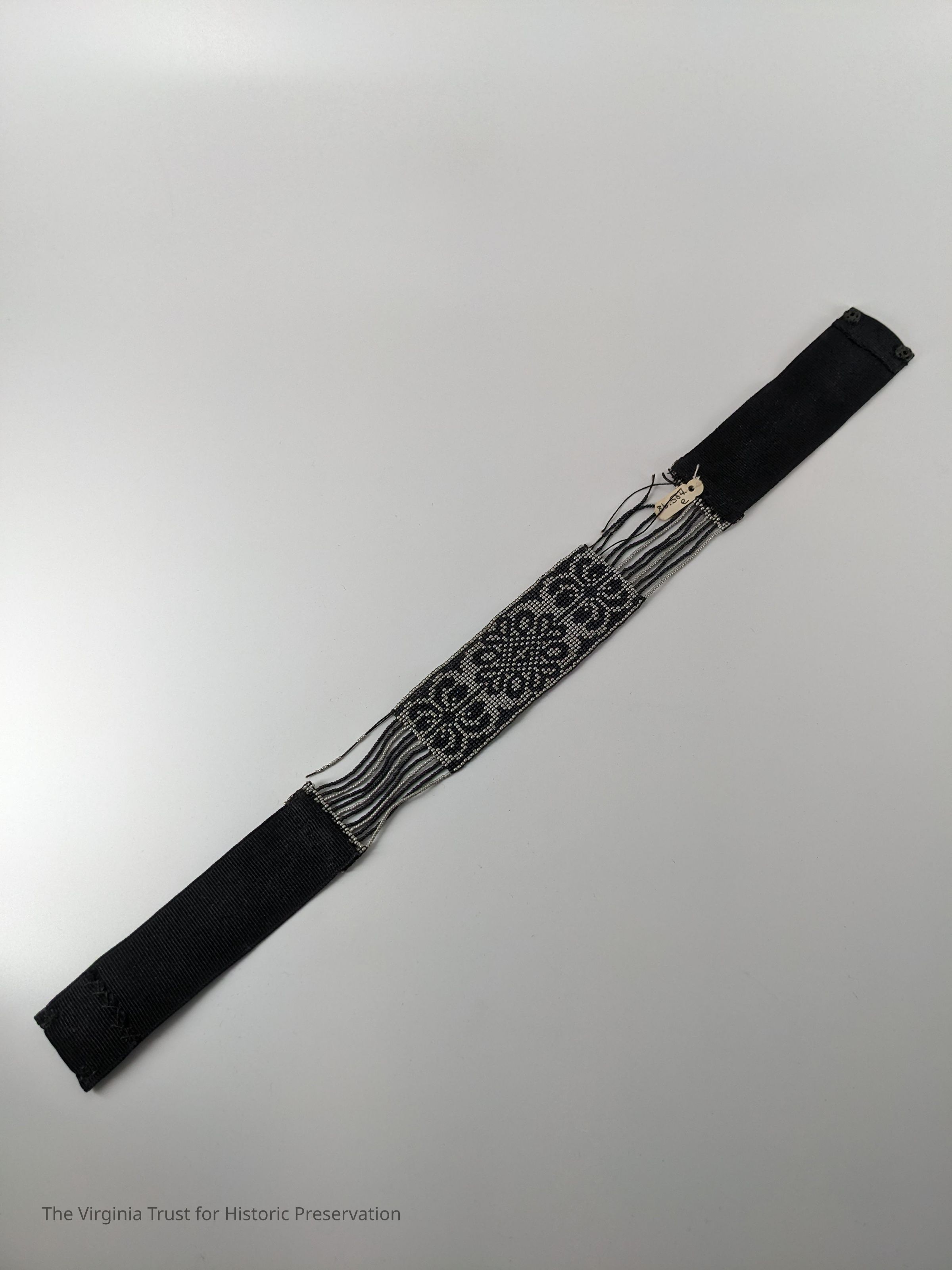 Five (5) ladies choker beaded necklaces. Black, silver, and white beads with black ribbon ends and snaps.