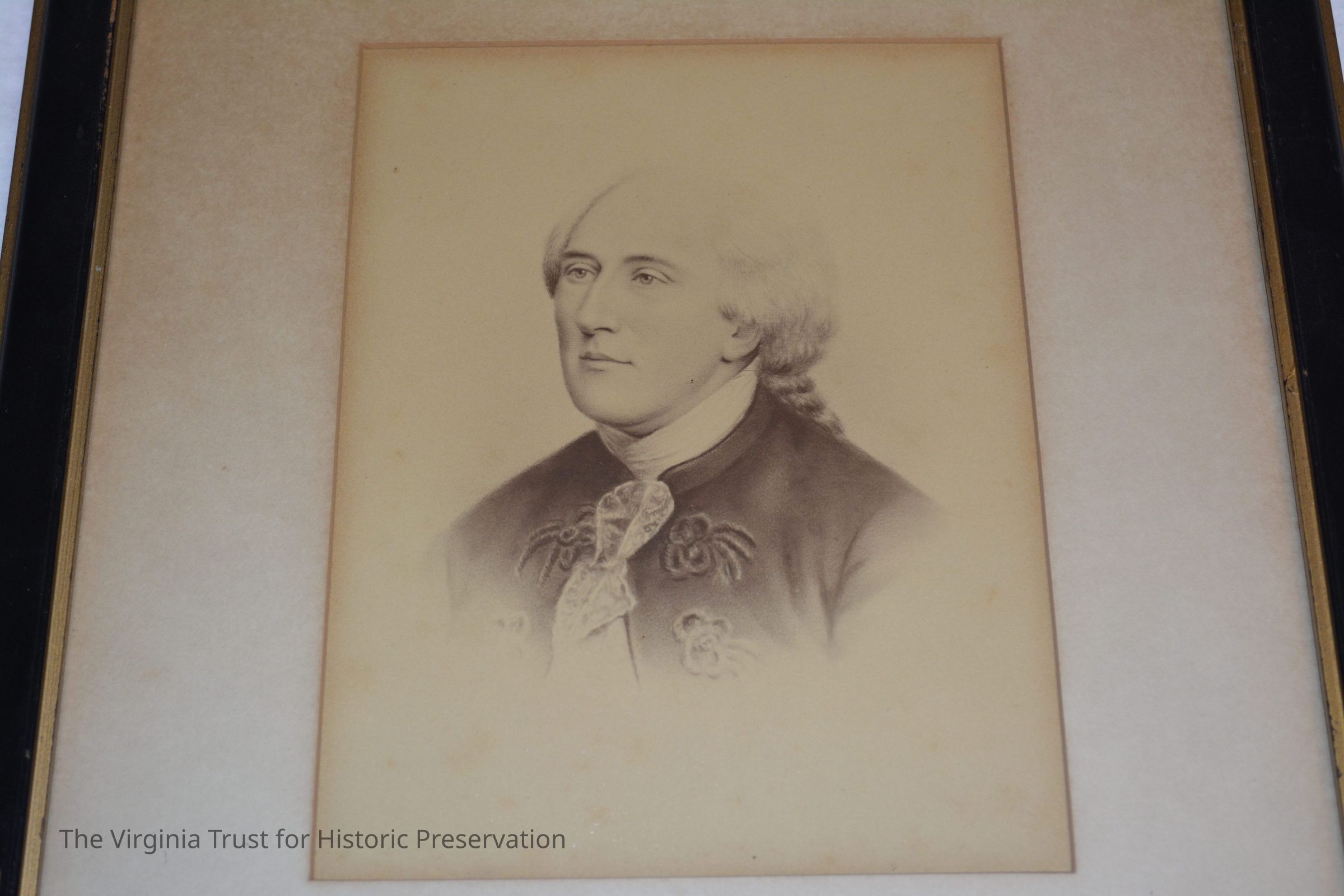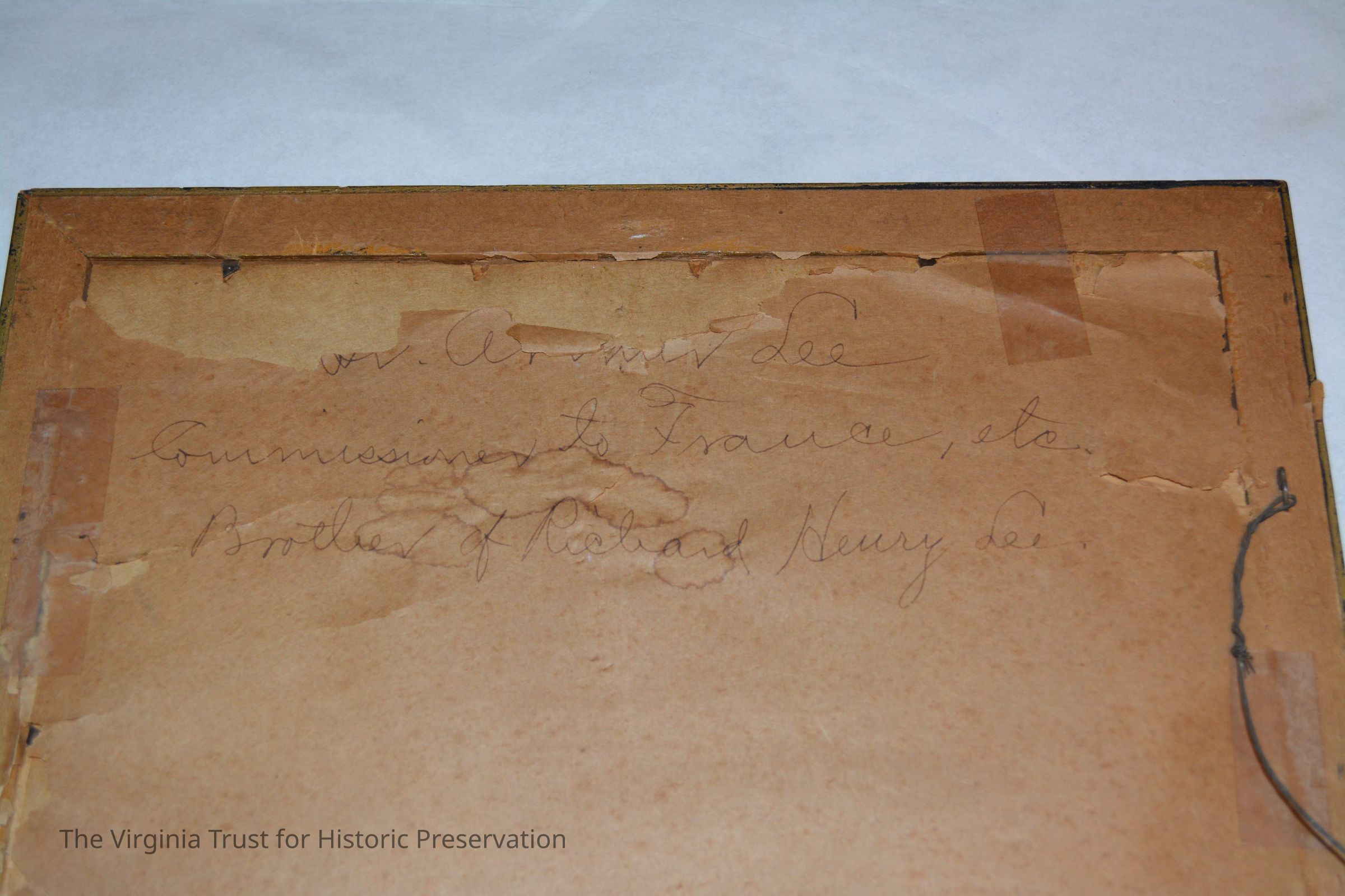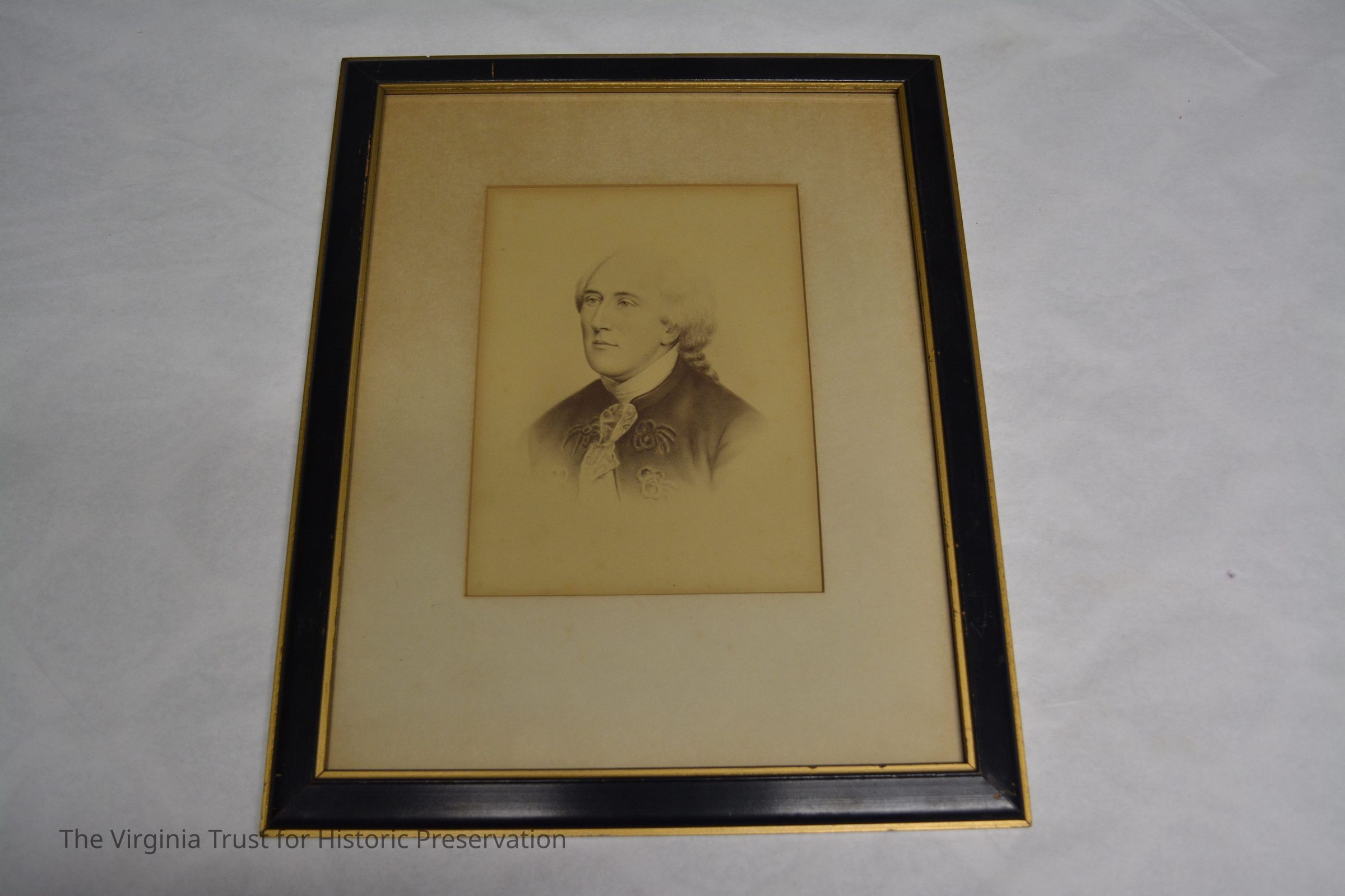 Framed and matted portrait of Arthur Lee. Marked on back: "Dr. Arthur Lee, Commissioned to France, etc. Brother of Richard Henry Lee."