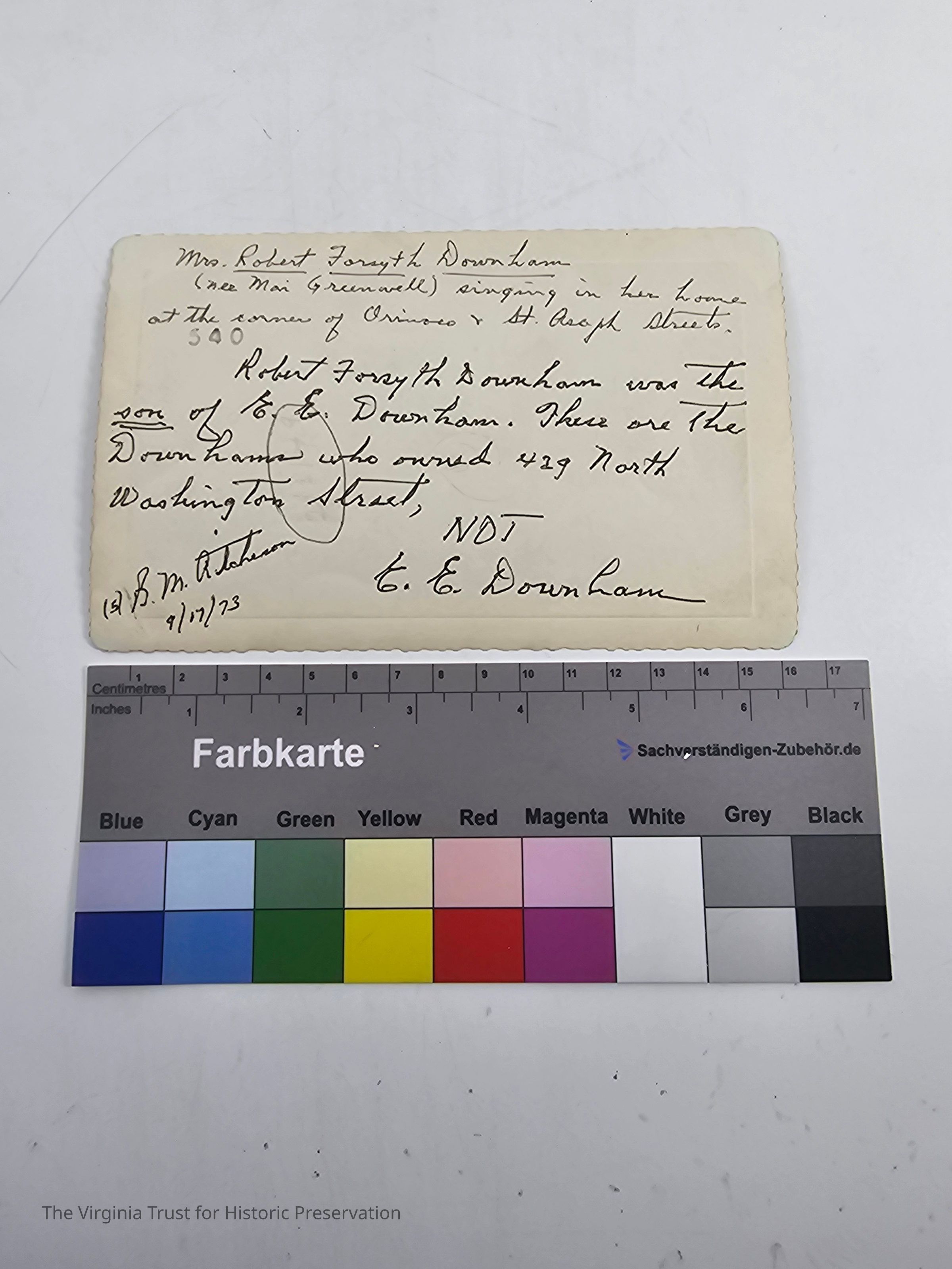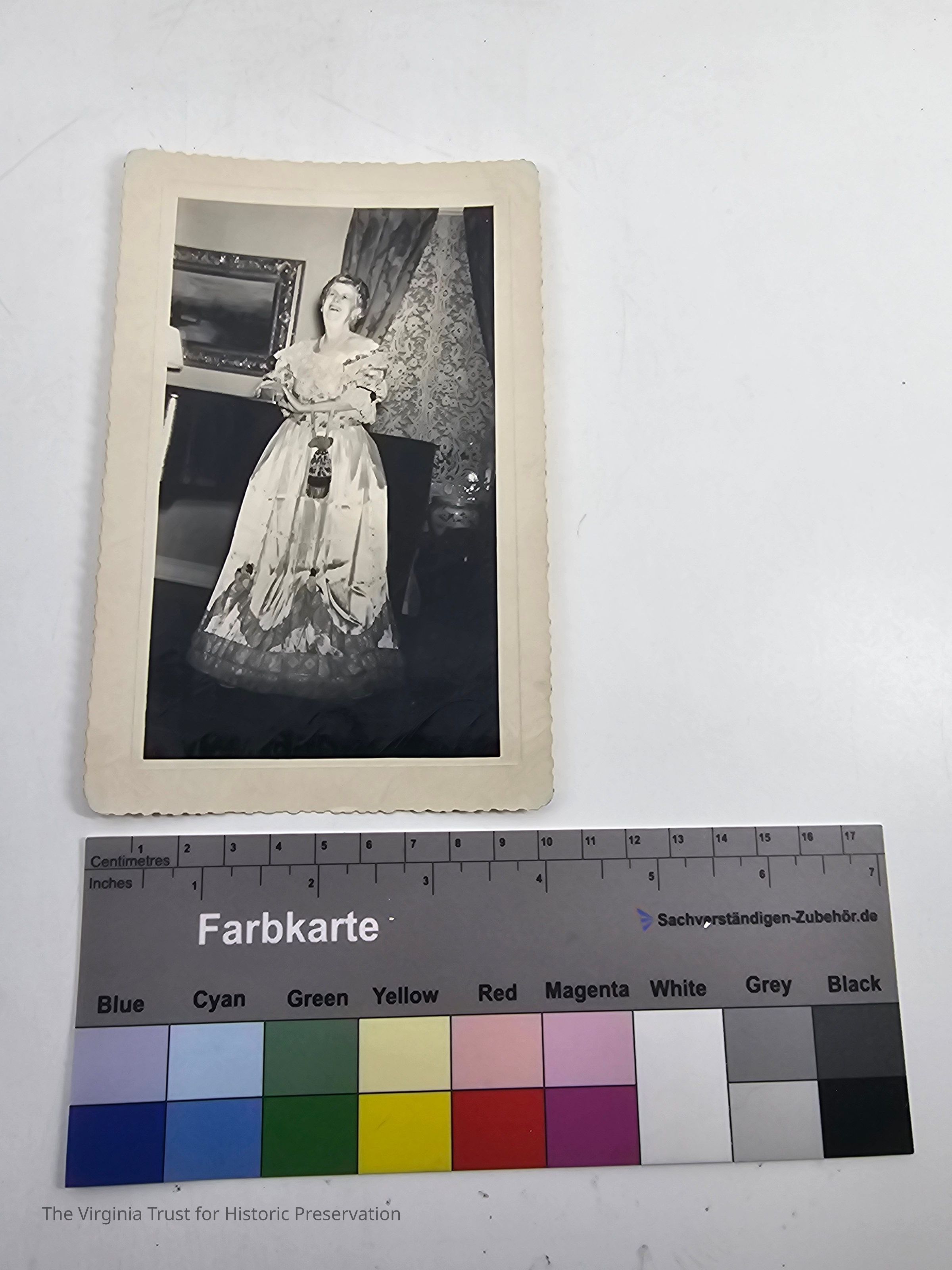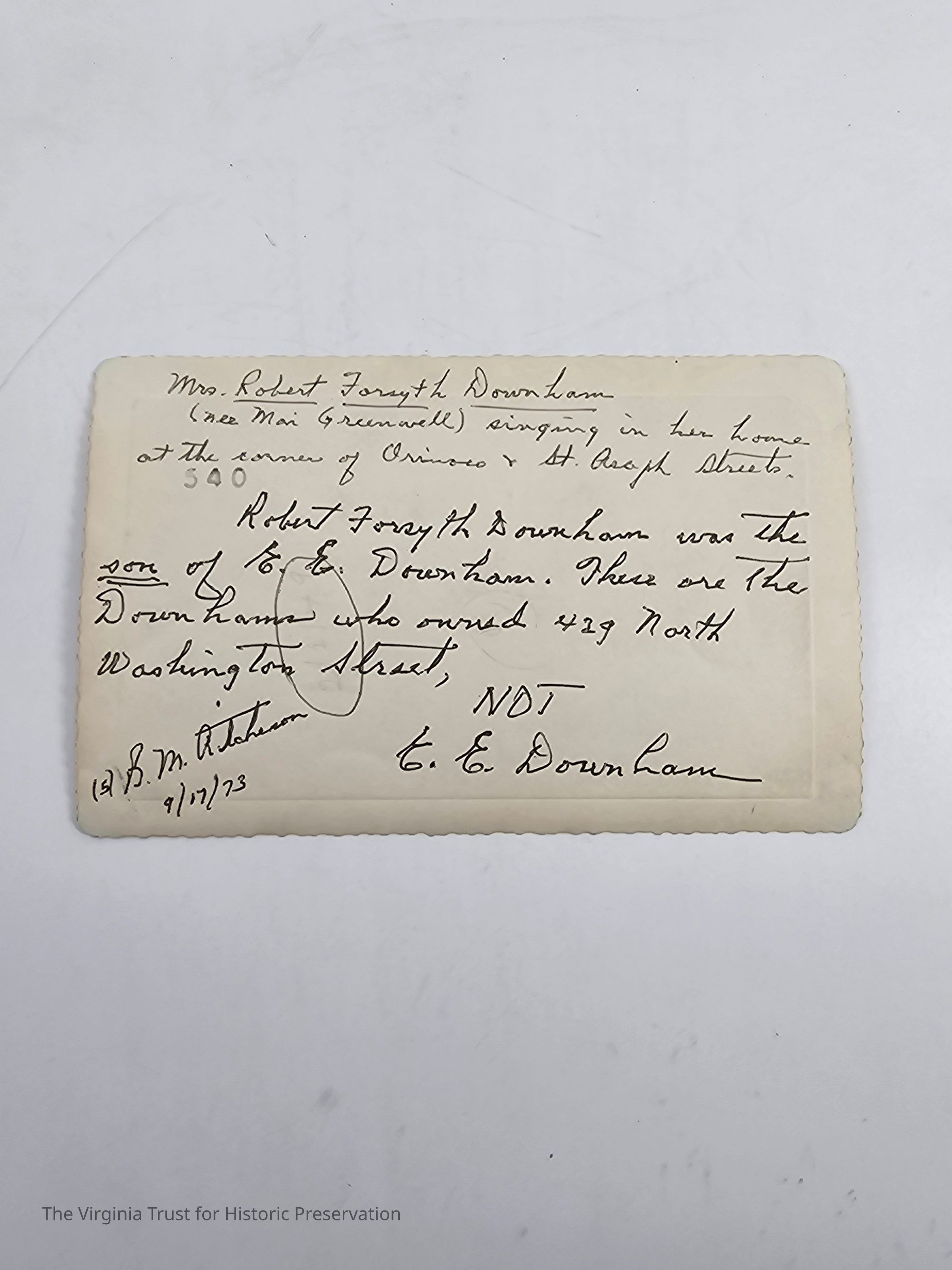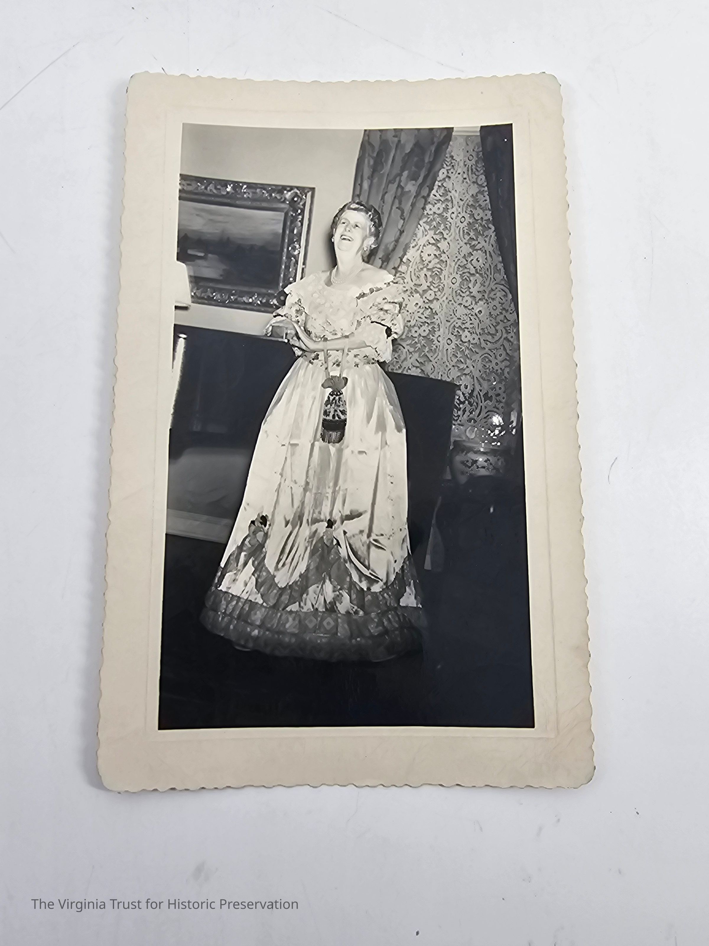 One of 24 theater programs, souvenirs, photos, and papers collected by Maude Downham. Mai Greenwell Downham in gown singing at house at corner of Oronoco and St. Asaph St.