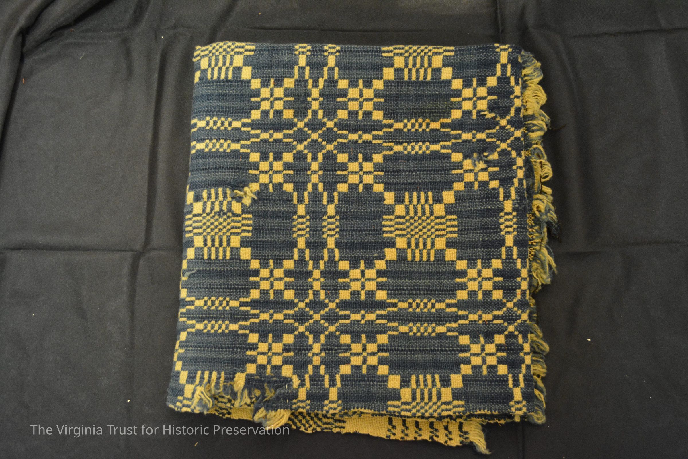 Blue and white bed coverlet - heavy. Handwoven wool. From home of Henry Smith & Frances Eleanor Foote Smith, son of Wm. Rowley and Lucy Steptoe Blackwell Smith (Hancock Lee descendants)
