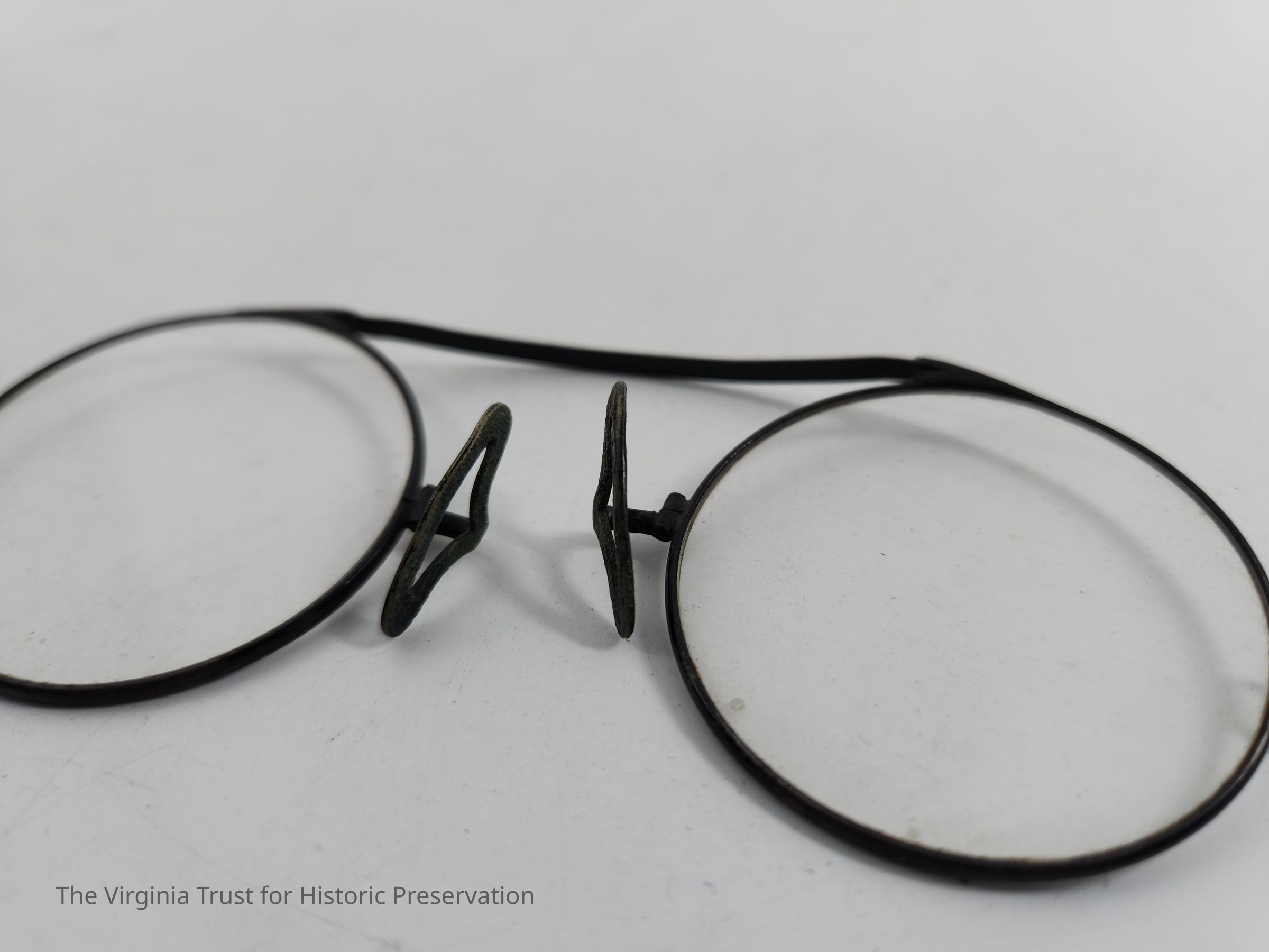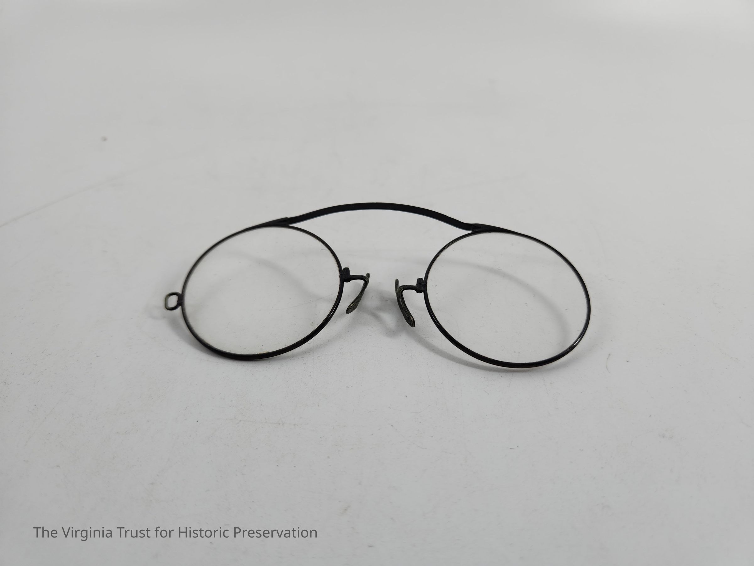Pinch Nez eye glasses; black rims, round lenses. Case included.